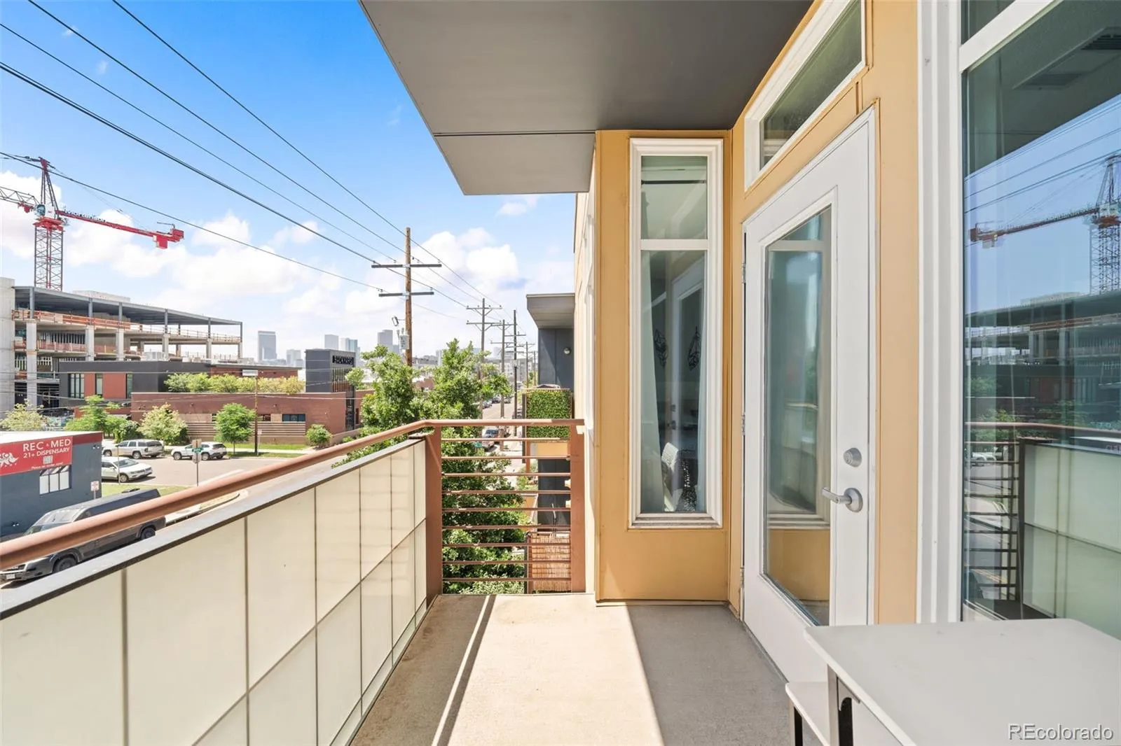 Incredible Open Floor Plan with High Ceilings| Balcony with Downtown Views | Gated Garage Parking Spot | Freshly Painted | New Luxury Vinyl Plank Flooring| Large Windows Overlooking Blake Street | Updated Kitchen w/ Granite Tile Countertops | White Quaker Cabinetry | Newer Stainless Steel Appliances | Large Bedroom w/ Oversized Walk-in Closet + NEW Full Sized Washer & Dryer | Large Dual Access Bathroom with Built-ins | 5x5x10 Storage Unit| Bike Storage | Oversized Water Heater | Smart Thermostat | Only One Shared Wall | Easy Elevator Access | Close Proximity to Improper City + Denver Central Market + Mister Oso + Other RiNo Shops & Restaurants