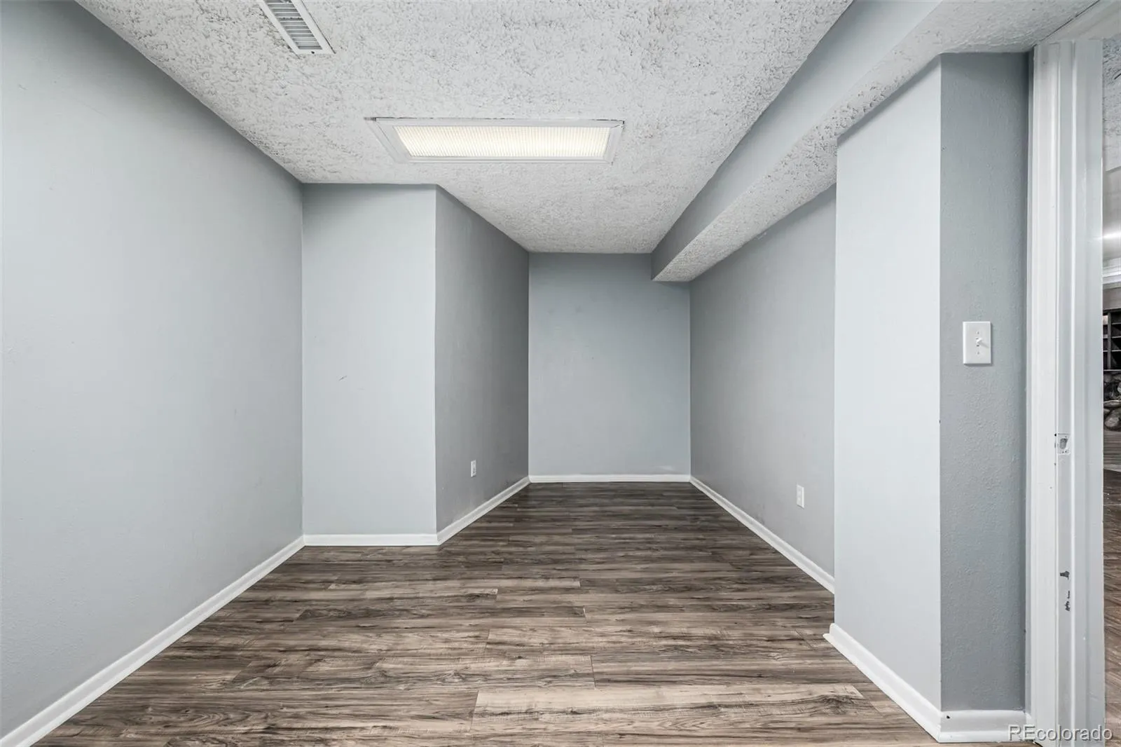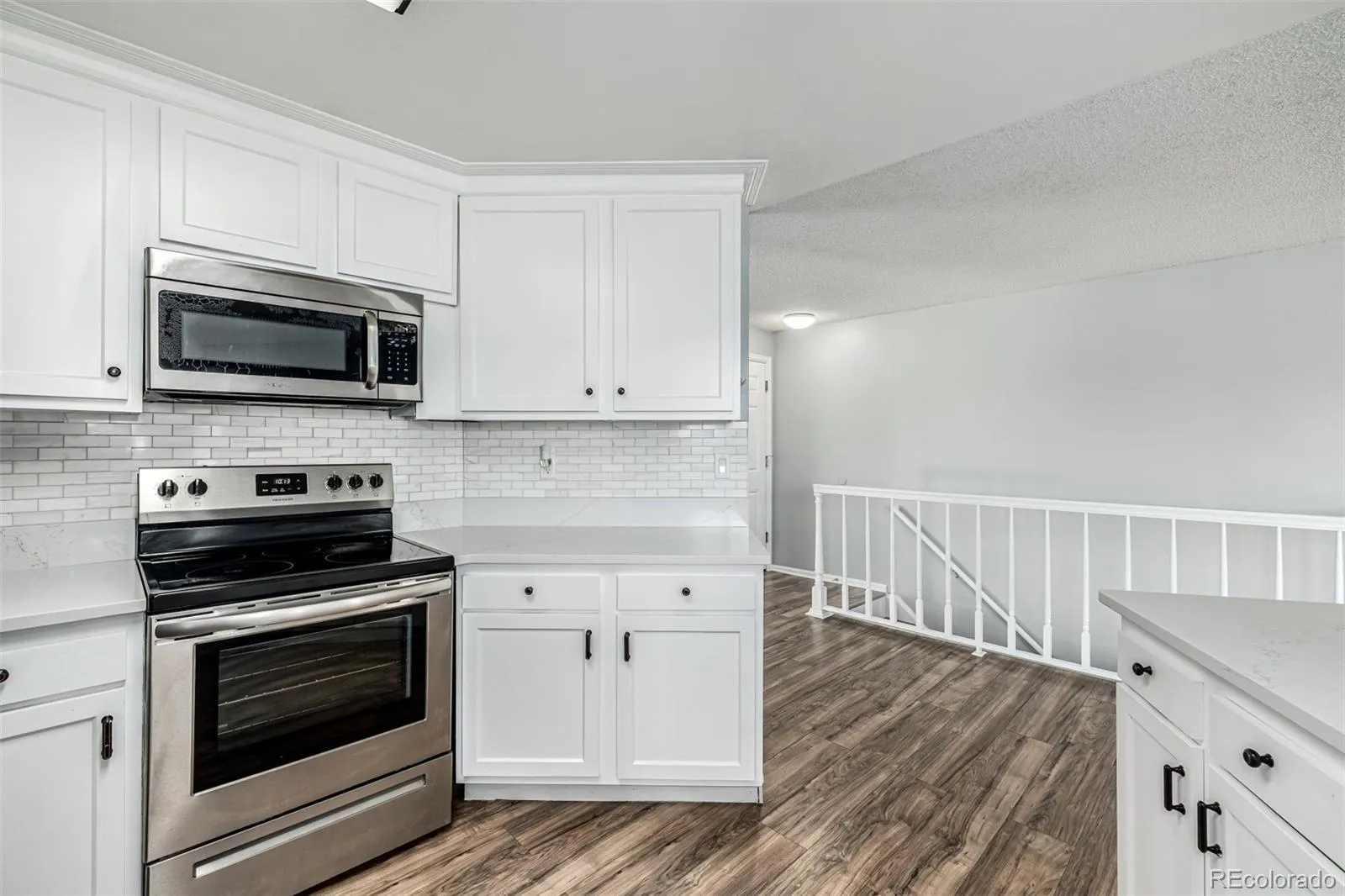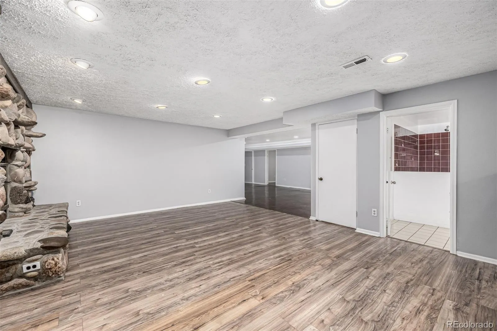 A refined home in the Cherry Creek School District offers an elegant blend of modern comfort and timeless simplicity. The exterior is approachable and classic, while inside, modern plank flooring introduces a sense of warm and seamless continuity as it leads through connected spaces. The living room centers around an oversized picture window that frames the quiet neighborhood and draws natural light in. Just beyond, the dining room enjoys a view of the backyard, creating the sense of indoor and outdoor spaces in conversation. The kitchen feels iconic in both character and function. Chic white cabinets, a subway tile backdrop, and stainless appliances form a composition both stylish and enduring. A breakfast bar peninsula provides an intuitive connection between kitchen + family room, creating an open environment ideal for gatherings. The family room features an expressive white brick fireplace flanked by windows, adding depth, light, and a subtle note of sophistication. The primary bedroom feels calm and well proportioned with generous natural light, an ensuite bath with dual sinks, and a walk in closet. Two additional main level bedrooms enjoy the same thoughtful design, with excellent closet space and functional layouts. The finished basement expands the living potential significantly. A secondary living room with a stone-faced fireplace, built-in wet bar, and integrated shelving adds dimension, making this level perfect for recreation, film nights, or future vision. Additional rooms and storage create flexibility for evolving needs. Outdoors, a substantial wood deck overlooks the yard, while a paver patio below introduces a second outdoor zone. With no neighboring homes directly behind the property, the space feels open and usable, perfect for quiet mornings, evening conversations, or entertaining. A rare opportunity in the Cherry Creek School District, this residence offers modern updates, intuitive flow, and spaces that support connection, comfort, and ease.