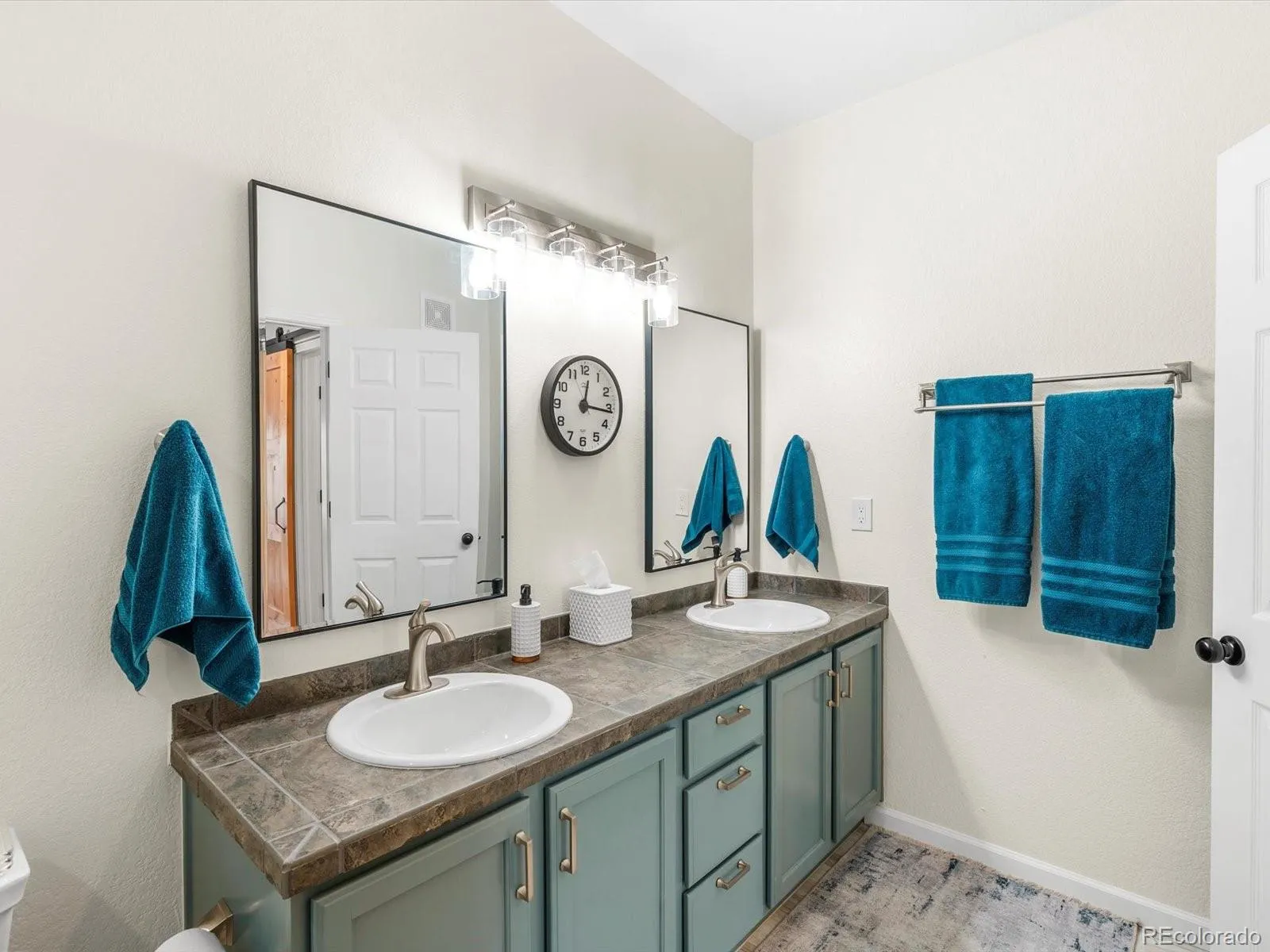 The primary suite offers a peaceful retreat with vaulted ceilings, a custom walk-in closet, and a luxuriously remodeled en-suite bath showcasing a brand-new walk-in shower, dual-sink vanity, and new sinks, toilets, and fixtures. The secondary bedroom provides versatility—ideal for guests, a home office, or gym—and the updated hall bath mirrors the same upscale finishes with a new sink, toilet, and fixtures, plus extra storage.