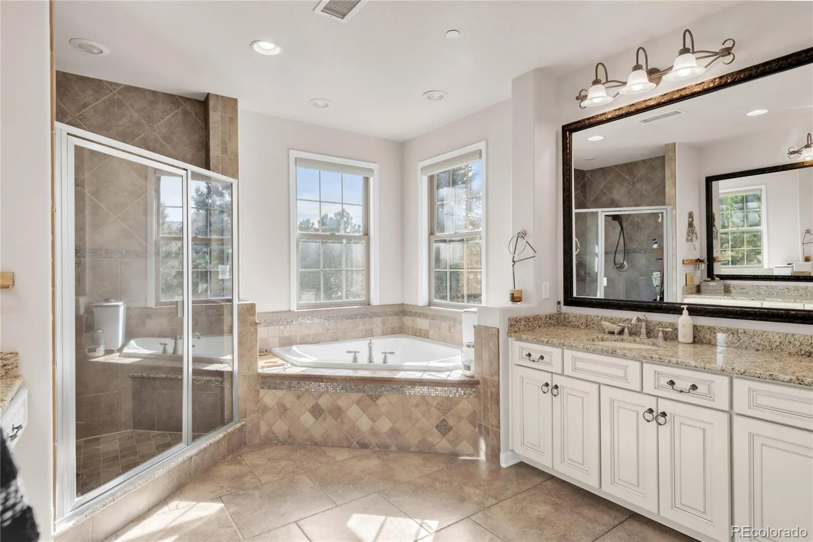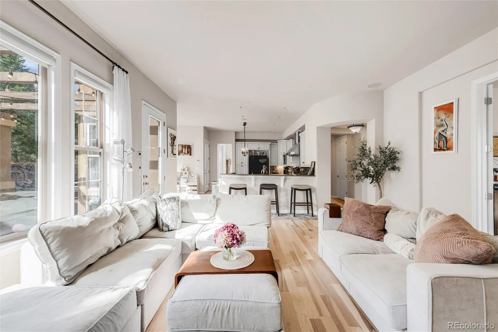 Stunning Mediterranean-inspired home in exclusive gated Castle Pines Village! This 4-bed, 4-bath residence blends timeless stucco and stone architecture with modern mountain-contemporary interiors. Bright, open floor plan features high ceilings, large picture windows, and a gourmet kitchen with granite counters, high-end appliances, and expansive island. Luxurious primary suite with spa-like bath and walk-in closet. All Bathrooms have bidet’s. There are so many more features, there are too many to list…Alexa enabled shades, brand new hickory floors, Aquasana whole-home water filtration system, electric dog fence, humidifiers on both furnaces, and epoxy floors in the garage. Outdoor living includes pergola covered patio and beautifully landscaped yard. Huge unfinished daylight basement offers endless possibilities. Three-car garage, quiet cul-de-sac location, and access to premier community amenities—pools, fitness, tennis, and trails. Experience refined Colorado living with elegance and comfort at 6293 Ellingwood Point Way.