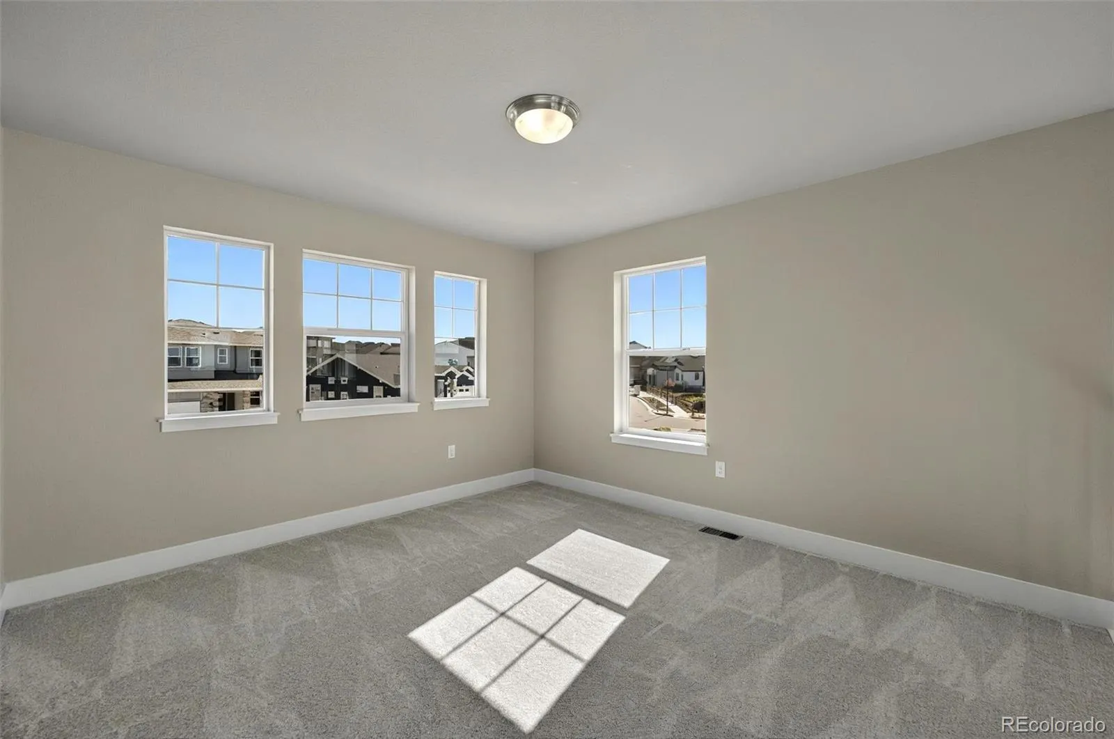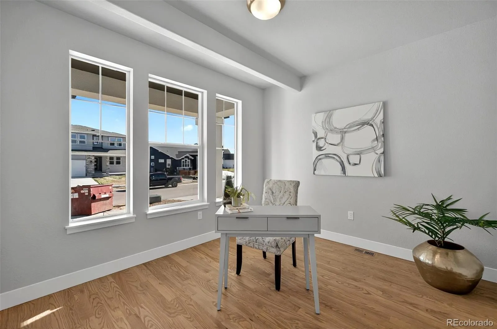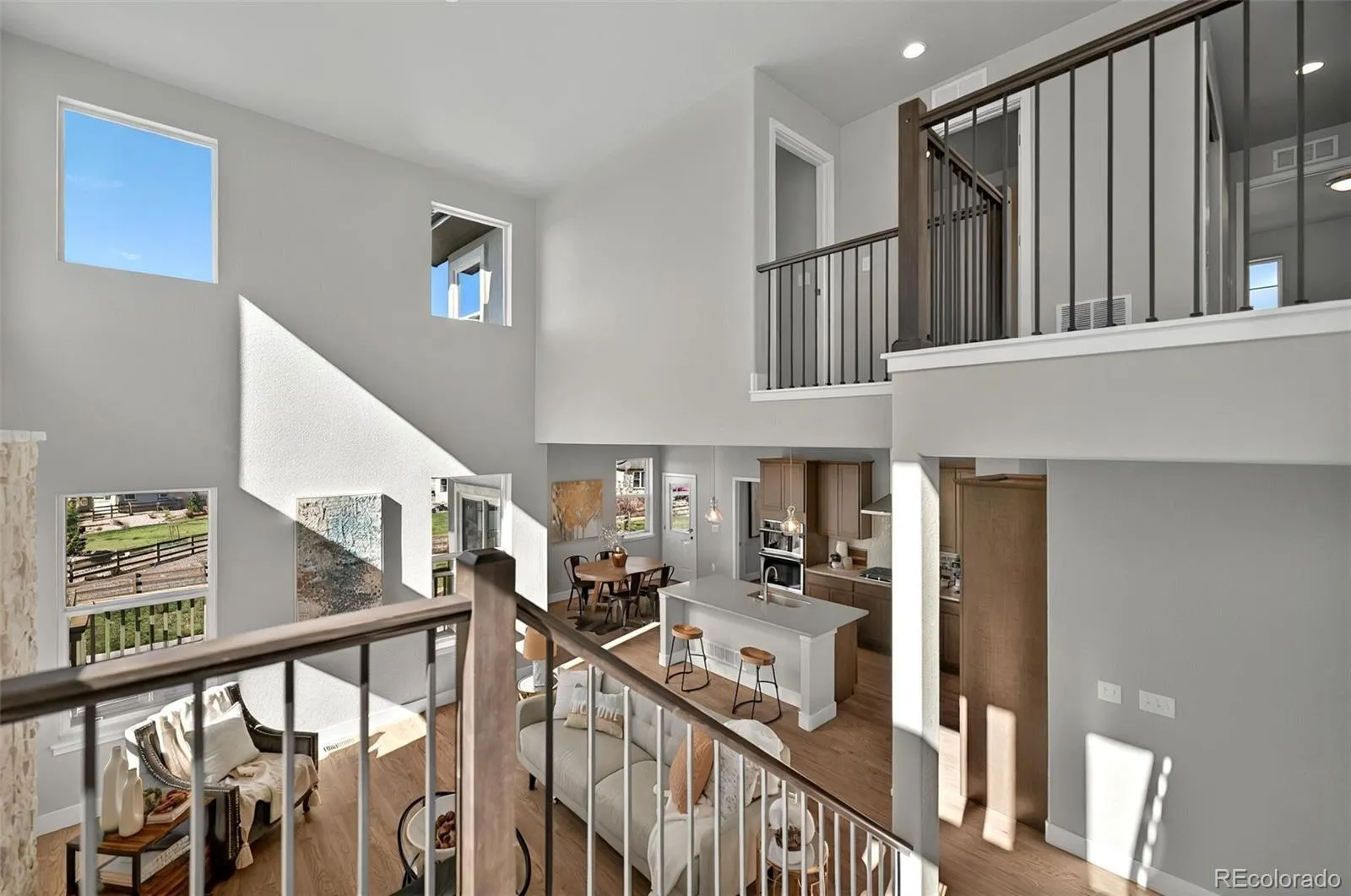 Gorgeous stucco home in Wolf Ranch with amazing views! Front and back landscaping currently being installed! You are welcomed to this incredible home be a charming front porch! Enter the interior to enjoy blonde real wood floors through the main level and a two story family room with full width fireplace! Cozy up to a book or step outside onto the covered deck and stunning views of Pikes Peak and the front range! The kitchen has a walk in pantry and 42″ cabinets as well as an island for gathering with quartz counters! The eating area has two doors to two decks! Each one has a stunning view! The main level also has an office with real wood flooring, a half bath and a mud area with closet! The garage is a dream – it is an oversized 3 car garage with space for a workshop! The stairs boast wrought iron rails and a large loft, three bedrooms and a huge private master retreat with spa like five piece master bath and free standing tub! Two more bedrooms and a full bath upstairs! Upstairs laundry for easy living! Backs to open space and offers extra privacy as well as views for miles! You are going to love living here! Walk to the new community center from your new home!