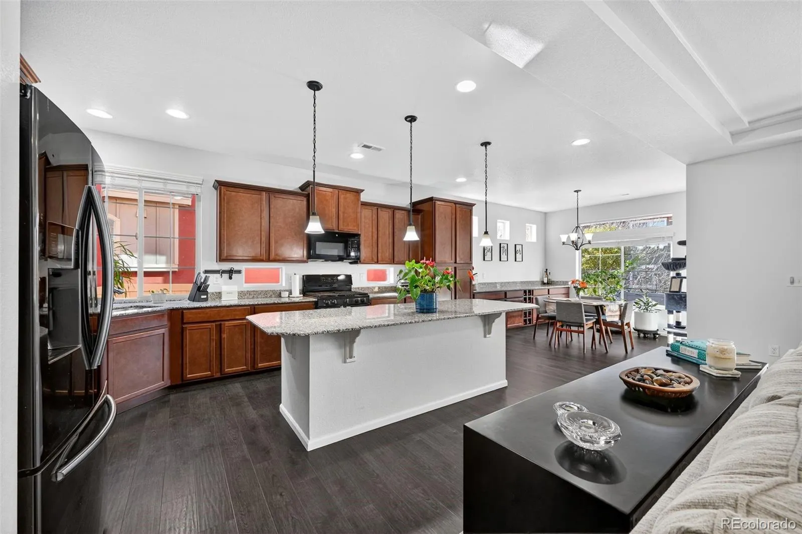 Welcome to 174 Pipit Lake Way, a beautifully updated 3-bedroom, 3-bath home with a dedicated office, ideally located in one of Erie’s most desirable neighborhoods. Designed for comfort, quality, and effortless living, this home feels bright, open, and spacious from the moment you walk in. The main-level primary suite offers the ease of single-floor living — perfect for those who value accessibility and flexibility. The chef-inspired kitchen features a large island, stainless-steel appliances, and generous prep space, flowing seamlessly into the dining and living areas for easy entertaining or quiet evenings at home. Recent upgrades include a fully renovated primary bath, new luxury vinyl plank flooring, and fresh landscaping. The oversized two-car garage provides excellent storage, and the home is just steps from community amenities including a pool, recreation area, parks, and scenic trails. Enjoy direct access to the Coal Creek Trail, leading to downtown Erie’s shops, dining, and local events. Whether you’re ready to simplify your lifestyle, relocate to Colorado, or simply enjoy elegant main-level living, 174 Pipit Lake Way delivers a rare blend of sophistication, convenience, and warmth.