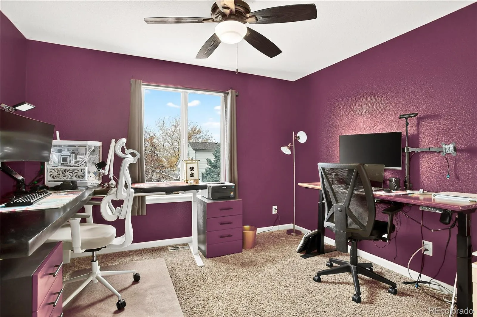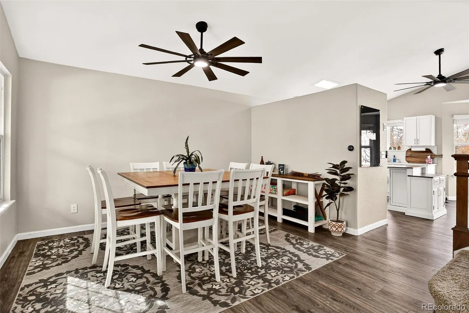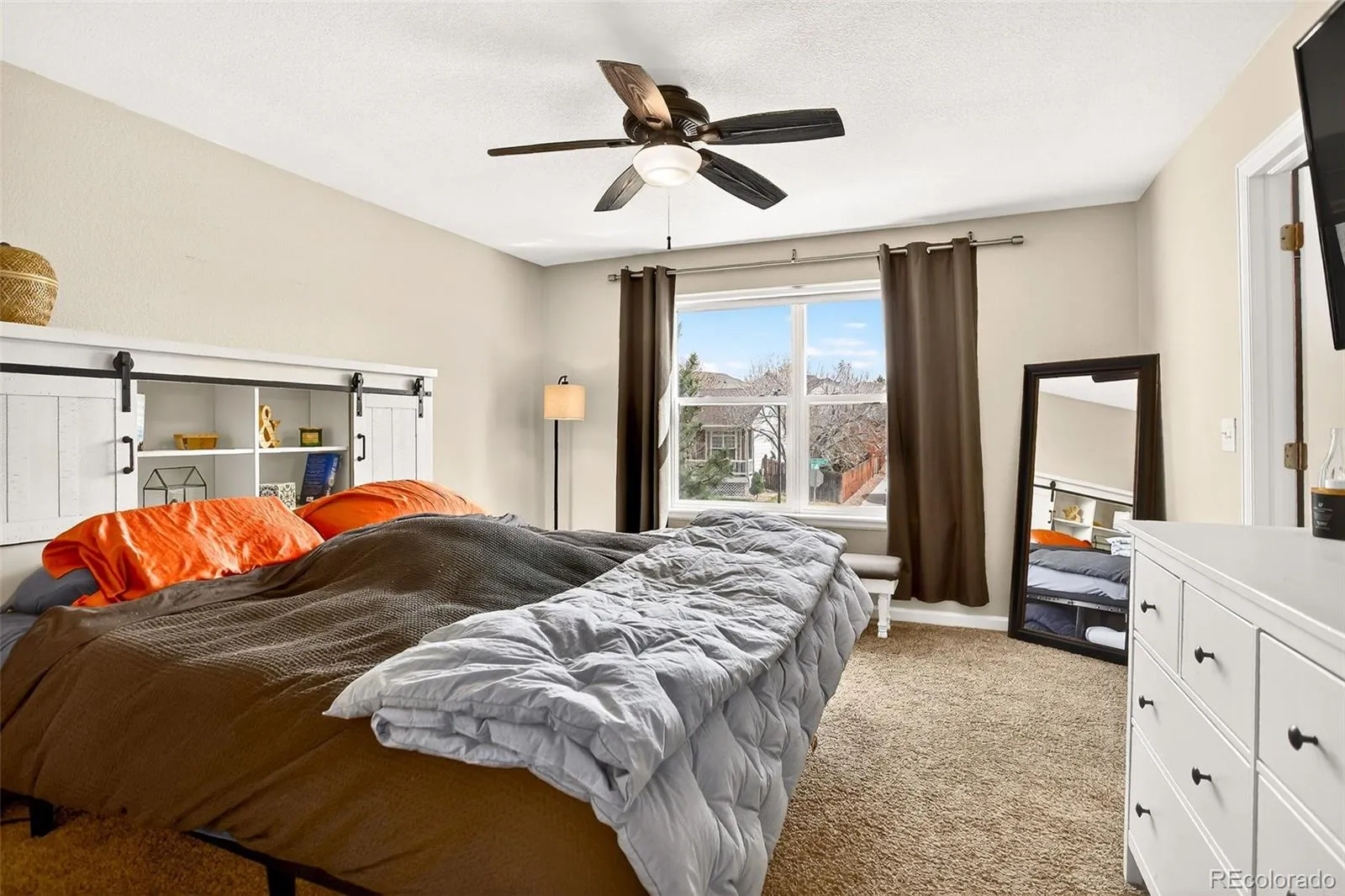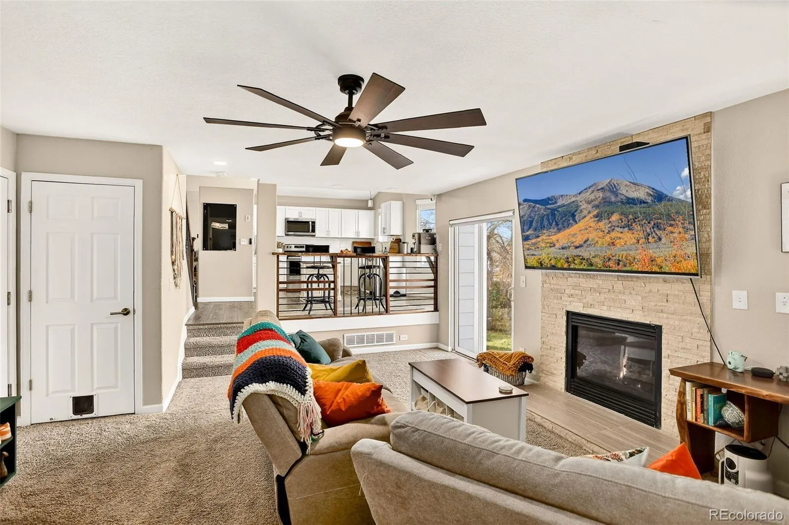 VA ASSUMPTION AVAILABLE (VETERANS ONLY!) Rare opportunity to own a beautifully updated home in the heart of Saddle Rock with a hard-to-find three-car garage at this price point! Perfectly positioned across from a park and playground—and just steps from the neighborhood elementary school—this home combines everyday convenience with modern comfort and thoughtful upgrades throughout. The exterior shines with fresh paint and great curb appeal, while the interior welcomes you with stylish luxury vinyl floors, a bright dining area, and an upgraded kitchen featuring quartz countertops, white cabinetry, stainless steel appliances, a live-edge built-in table, and a movable island that stays with the home. The cozy living room offers plush carpet, a gas fireplace framed by custom stonework and backsplash accents, built-in shelving, and a show-stopping live-edge wood feature wall with a built-in desk. The main-level bedroom with a walk-in closet and oversized window–perfect for guests or a home office– is located next to a remodeled three-quarter bath featuring elegant tile and built-in shelving. Upstairs, retreat to your spacious primary suite with dual sinks, a soaking tub, separate shower, and generous walk-in closet. Two additional bedrooms with ceiling fans and mounted TVs (included!) and share a stylish dual-sink bathroom with tile-surround shower. Don’t forget to check out the large backyard. Enjoy enjoy your rare 3-car garage with extra storage space. The unfinished basement has a radon mitigation system and is just waiting for your finishes or keep the current built-ins for your home projects. Roof was replaced in 2019 for added peace of mind. Ideally located minutes from E-470, Southlands Mall, and local favorites like The Rock restaurant, this move-in-ready gem offers the perfect blend of location, lifestyle, and value—WELCOME HOME!