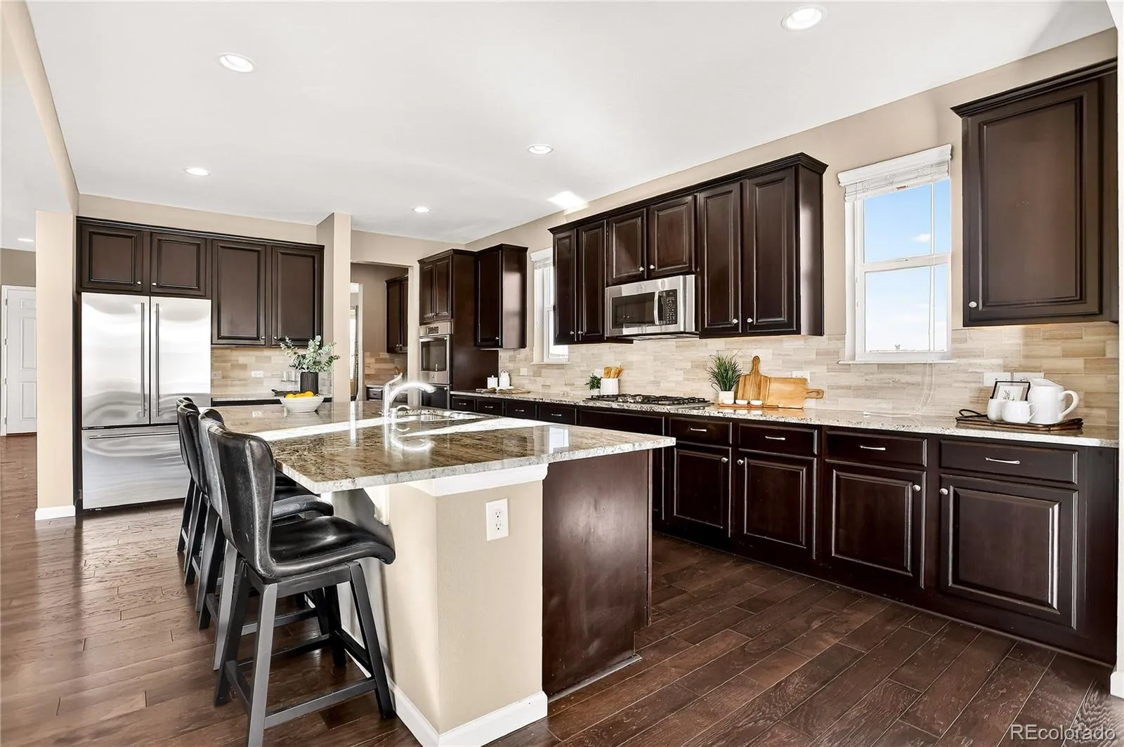 Open House Saturday Nov 8, 11am – 2pm and Sunday Nov 9, 11am – 2pm. Superb location in Parker’s Anthology neighborhood. Perfectly situated on a premium corner lot backing to a greenbelt. This immaculate residence combines elegance, comfort, and Colorado living at its best. The professionally designed yard, extended patio and water feature create an ideal outdoor retreat. This residence is one of the largest floor plans in the community offering 4,000 finished square feet with 4 bedrooms and 4 baths. Step into an inviting open floor plan filled with natural light. The spacious great room features soaring ceilings and a cozy gas fireplace, creating a perfect setting for everyday living. The gourmet kitchen is a chef’s delight, with a huge island, granite countertops, gas range, and a sunny breakfast nook that opens directly to the back patio. A butler’s pantry connects the kitchen to the formal dining room. The main floor also includes a private den with French doors, a powder bath, and laundry room complete with washer, dryer, utility sink, and a mud room with built-in seating and storage off the 3-car garage. Upstairs, the primary suite overlooks the greenbelt and offers a luxurious 5-piece bath and large walk-in closet. Three additional bedrooms complete the upper level—two share a full bath, while the third enjoys its own en-suite. The lower level features a finished 550-square-foot flex space, perfect for a home theater, gym, or hobby area, plus 1,350 square feet of unfinished space ready for your future expansion. Located in one of South Denver Metro’s most desirable communities, you’ll love the proximity to Parker’s charming downtown, the library and arts center, top-rated Douglas County schools, and miles of scenic hiking and biking trails, along with endless shopping and dining options.