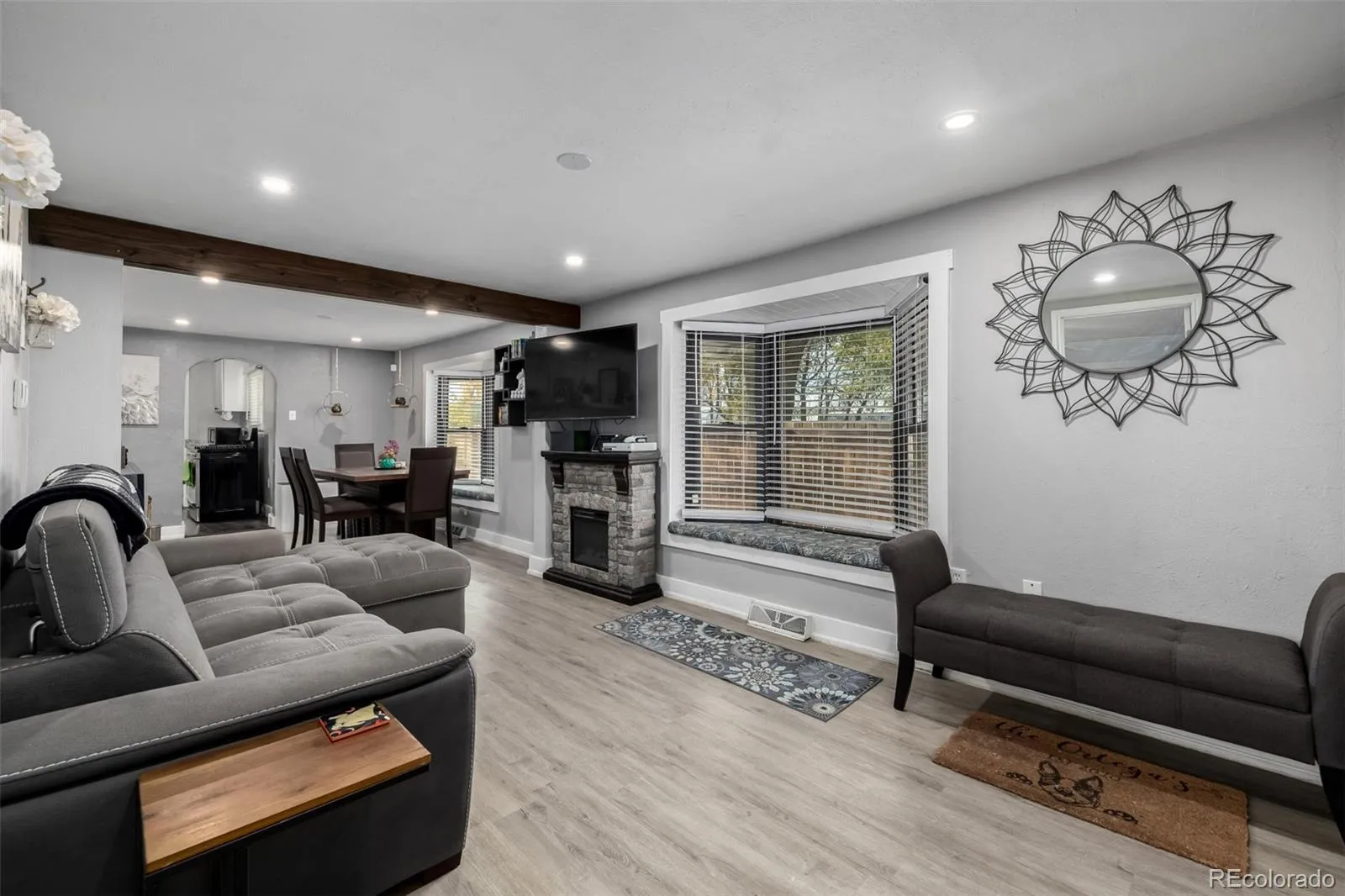 What a charming home on a fully fenced corner lot! You will love the excellent curb appeal and welcoming front porch for enjoying your morning coffee. This home features a brand new furnace and ac, exterior paint, new windows thourghout, nad more! Inside, open common areas feature bay windows that fill the space with natural light, complemented by wood-style floors, recessed lighting, neutral paint, and thick baseboards for a polished look. The kitchen boasts stainless steel appliances, white cabinetry, ample counter space, and a modern backsplash. The main bedroom offers comfort and privacy with a barn sliding door leading to a closet. Additional highlights include a convenient stacked washer and dryer! Serene backyard is designed for enjoyment—with a paved patio, storage shed, plenty of play space, and a sided RV gate. Don’t let this fabulous home slip by!