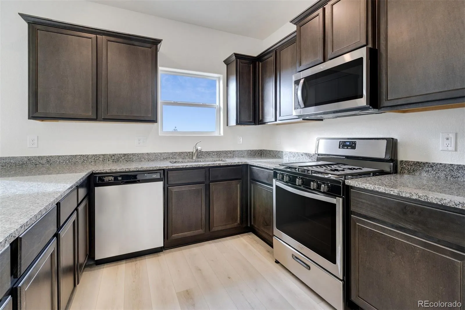 Welcome Home! Completed new construction homes that are move in ready. Nothing compares to the comfort and convenience of a gorgeous community that is conveniently located and features 3 bedrooms, 2.5 baths, and 2 car attached garage with an open floor plan. Our beautiful Laramie model plan has the privacy and space you need a thoughtful layout built for easy living including a large primary bedroom with a private bath, and large walk-in closets, upstairs laundry room, spacious kitchen with an island, A/C, covered porch and balcony. Discover the LGI Homes’ CompleteHome package, this home has incredible upgrades at no additional cost including a gas range/oven, refrigerator, microwave and dishwasher, gorgeous granite countertops, wood blinds on all windows, designer wood cabinets, and a Wi-Fi-enabled garage door opener are just a few of the fabulous upgrades that make this house the place you want to call home. Located just minutes from I-25 and the new Silverstone Marketplace, this home provides easy access to a variety of shopping, dining, and entertainment options.