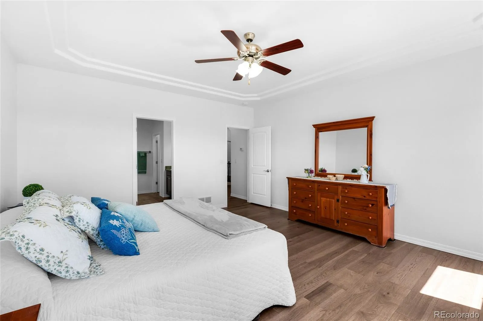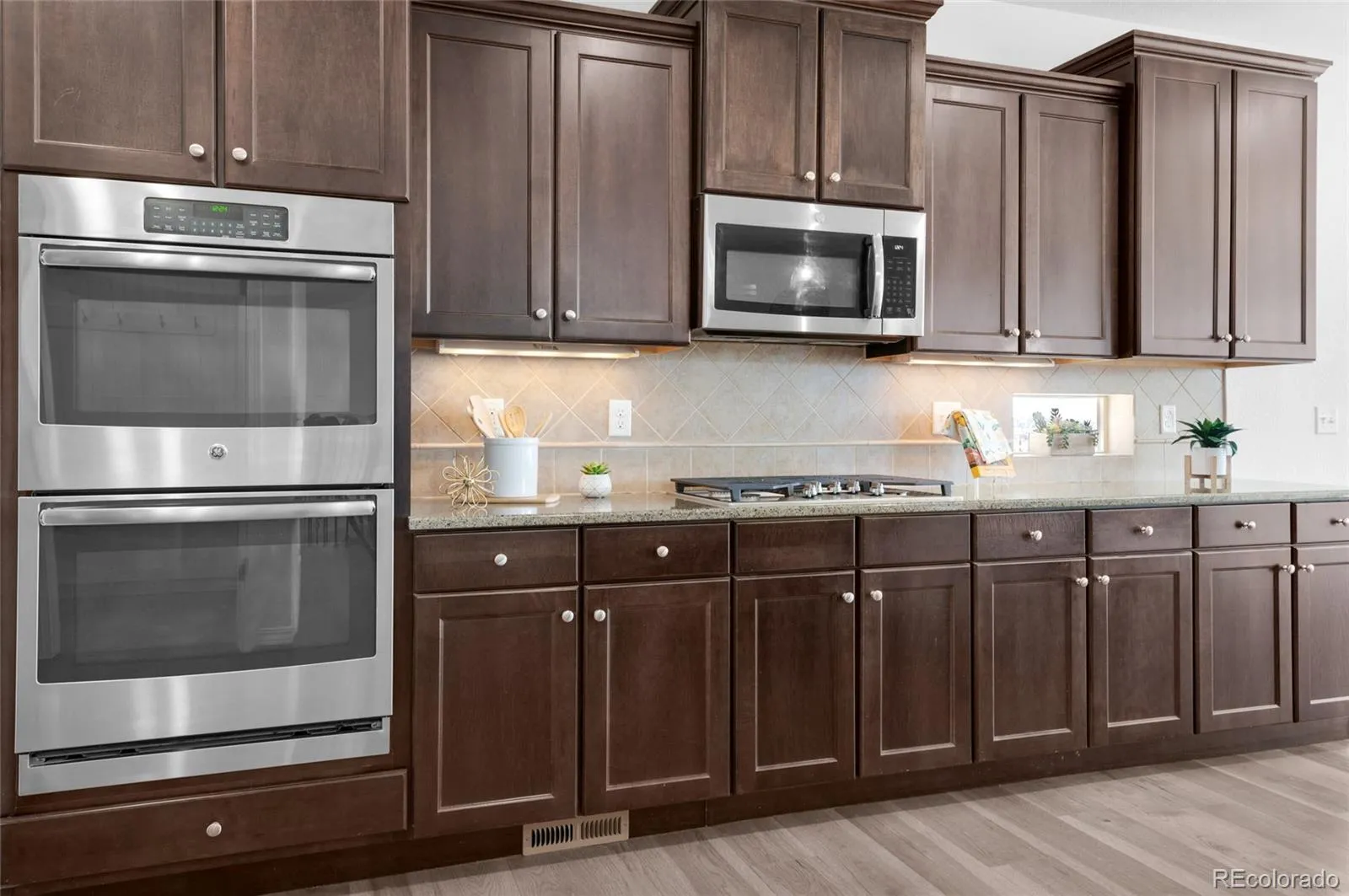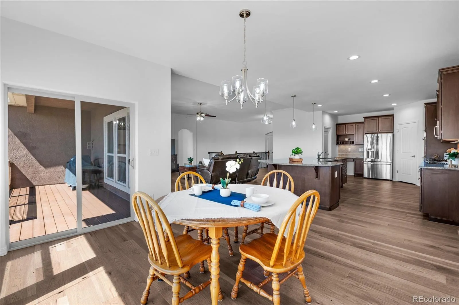 AMAZING VIEWS and PRICE! *Brand new flooring throughout most of main level- more than doubled hardwood square footage!* This striking stucco ranch in the desirable Northgate Estates community offers breathtaking, unobstructed views of Pikes Peak, the Air Force Academy, and the entire Front Range; from Cheyenne Mtn to Northgate. This prime location, near I-25, provides easy access to shopping, trendy new restaurants and go-to entertainment like Top Golf and Overdrive Raceway, and the new Polaris hotel. A soothing water feature in the front yard cordially invites you to the freshly painted entry door. Inside, beautiful new natural Pecan hardwood floors span most of the main level, which features high ceilings, a stone-accented gas fireplace, and desirable open floor plan. The gourmet kitchen boasts granite slab countertops, a spacious dining area, new gas 5 burner cooktop, double oven, large island with seating space, spacious pantry, built-in desk, and plenty of cabinetry. The luxurious master suite includes new hardwood floors, a five-piece bath, spacious walk-in closet with fresh new carpet, and more stunning views to enjoy! Two additional bedrooms and a full bath on the main level opposite the primary room for optimal privacy. The walkout basement, with 9ft ceilings, offers ample storage, a large rec room, two additional bedrooms with a Jack & Jill full bath, wet bar, powder room, and a pre-wired for media bonus flex room, ideal for any crafts/hobbies or use as a non-conforming 6th bedroom (plenty of space to add that closet!) The covered outdoor space includes a composite deck with metal railings, perfect for relaxing and enjoying the spectacular views. Additional features: plantation shutters, central A/C, a humidifier, an oversized three-car garage, and custom blinds. Other recent updates in summer 2024 include new paint throughout interior, including trim & doors, exterior front door, upgraded light fixtures & bath accessories. New water heater Sept 2025.