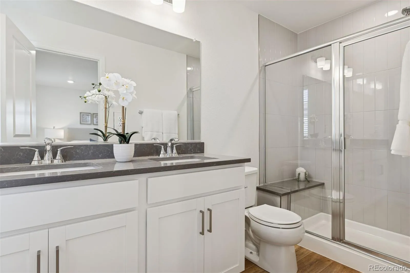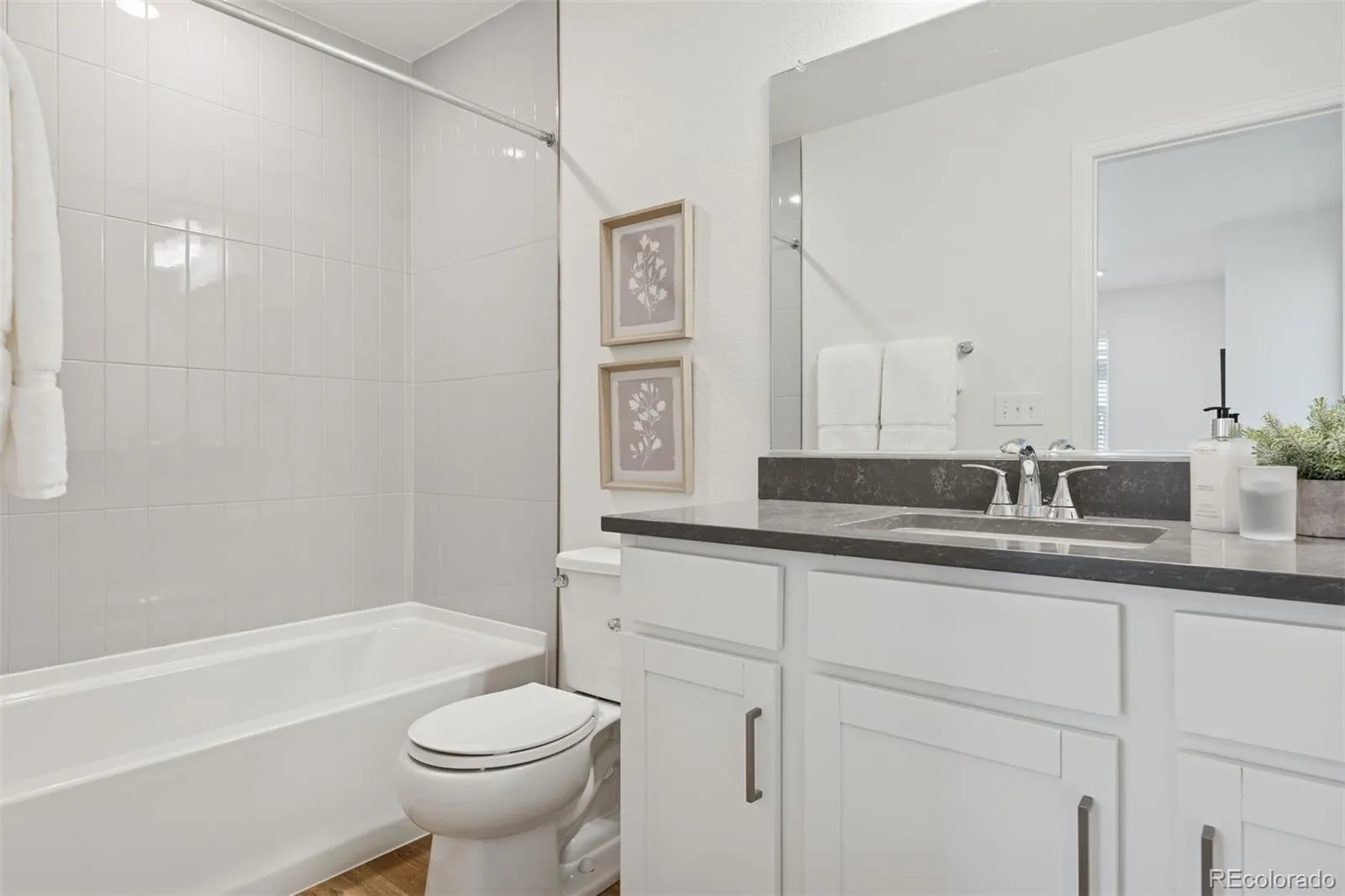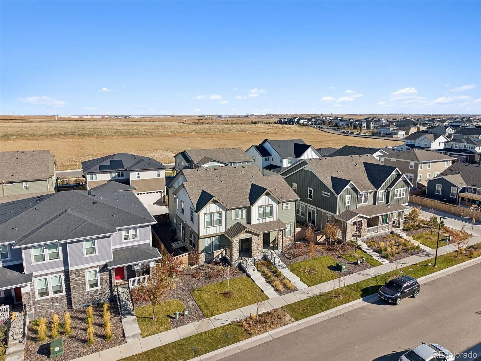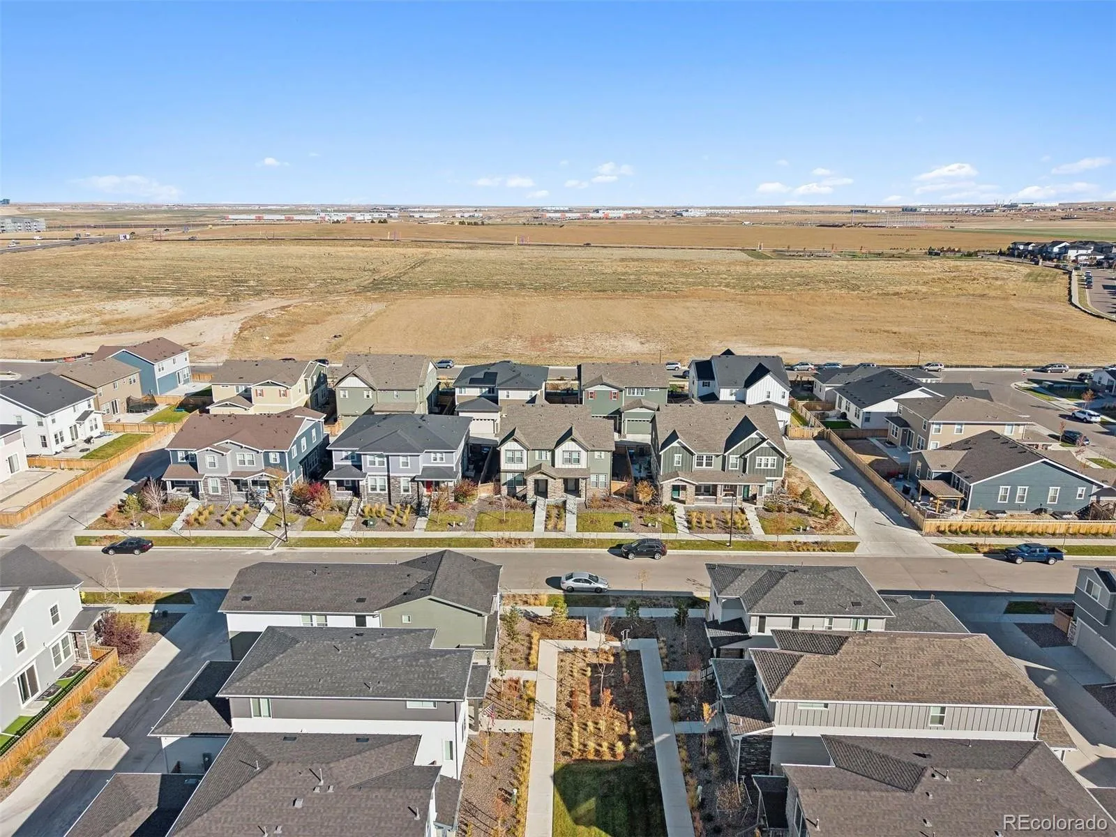 This stunning turn-key property with over $76,000 in builder upgrades represents a remarkable value. Built in 2023 and refreshed with new carpet and interior paint, the upscale residence looks and feels brand new, making it perfect for an owner-occupant seeking modern comforts, or an investor desiring rental income of ~$3,000/mo. Both sides of the paired home, 6220 and 6218 N. Nepal Ct., are for sale, offering flexibility for a multi-generational family wishing to live next door in a beautiful master-planned community, or an investor seeking to rent one side while living in the other, or leasing both units for maximum income of ~$6,000/month. Nestled on a quiet tree-lined street, facing a publicly accessible pocket park, this home offers an open-concept main level featuring luxury vinyl plank flooring, upgraded cabinetry, quartz countertops, a stylish hexagon backsplash, and fingerprint-resistant stainless-steel Whirlpool appliances. The living room’s contemporary gas fireplace, with ceramic tile surround and inlaid wood mantle, and upgraded lighting package add warmth and sophistication, while large double-pane windows provide abundant natural light. Upstairs, a spacious loft-based family room connects to three bedrooms, two full bathrooms, and a conveniently located top-floor laundry room. The impressive primary suite boasts a 19’x14’ bedroom, 6’x6’ walk-in closet, and spa-style bath with dual vanities and a glass-enclosed shower. The unfinished basement, with rough-in plumbing, offers 600+sq ft of expansion potential for two additional bedrooms, a bath, and or recreation space. Complete with an attached two-car garage, ample side yard, transferable builder warranty, and minutes from the A-Line Light Rail, Gaylord Rockies Resort, E-470 Tollway, the Rocky Mountain Arsenal National Wildlife Refuge, and Denver International Airport, this is a rare blend of quality, flexibility, and long-term value. Floor plans, video tour, and upgrade list available upon request.