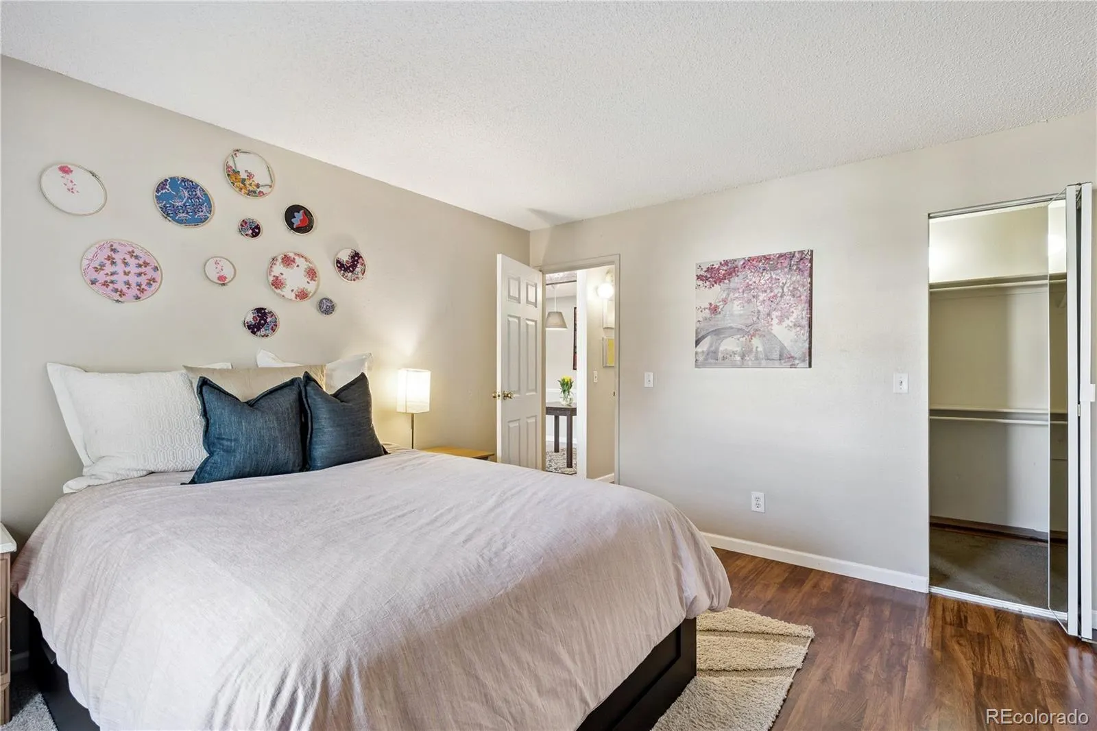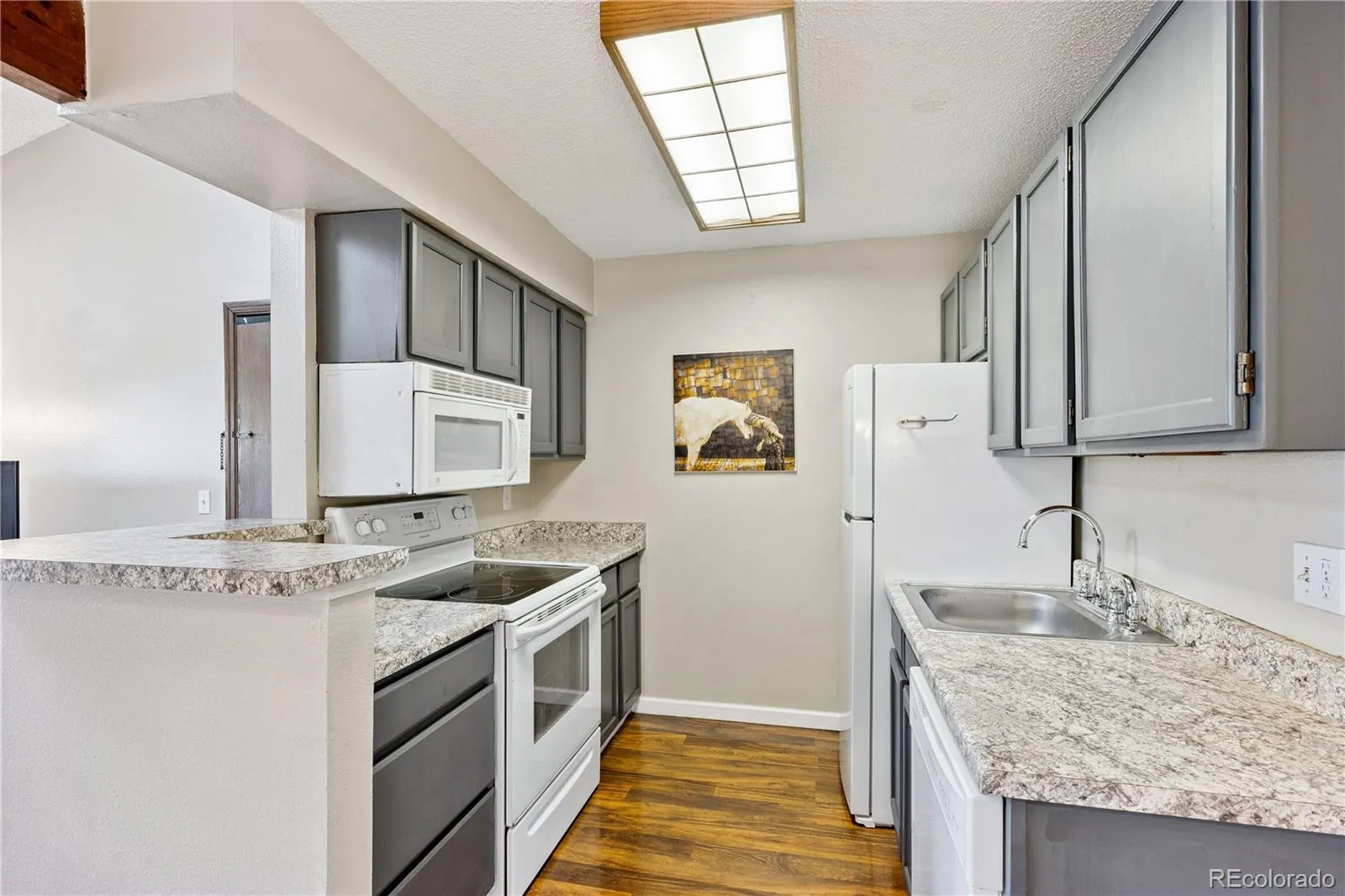Welcome to this adorable condo in the Oak Park gated community, perfectly situated in a quiet spot by the park. This second-floor home includes a reserved parking space (#193) just steps from the entrance. The open living room feels bright and spacious with its vaulted ceiling and skylight and features a wood-burning fireplace and room air conditioners. Step out onto the balcony to enjoy peaceful views of the community park, and gated access to Ben Bezoff Park. The primary bedroom offers a walk-in closet and easy access to the hall bath. A stackable washer and dryer are included. Community amenities include pool, volleyball court, clubhouse, picnic pavilion, and playground area. The HOA fees include exterior and grounds maintenance, sewer, trash, water and other amenities. Centrally located near the Lowry neighborhood restaurants and shops, Anchutz Medical Campus, Children’s Hospital in Aurora, the light rail, High Line Canal, and more! *Seller is offering a $4,000 concession to help buyers with closing costs or a rate buy-down*