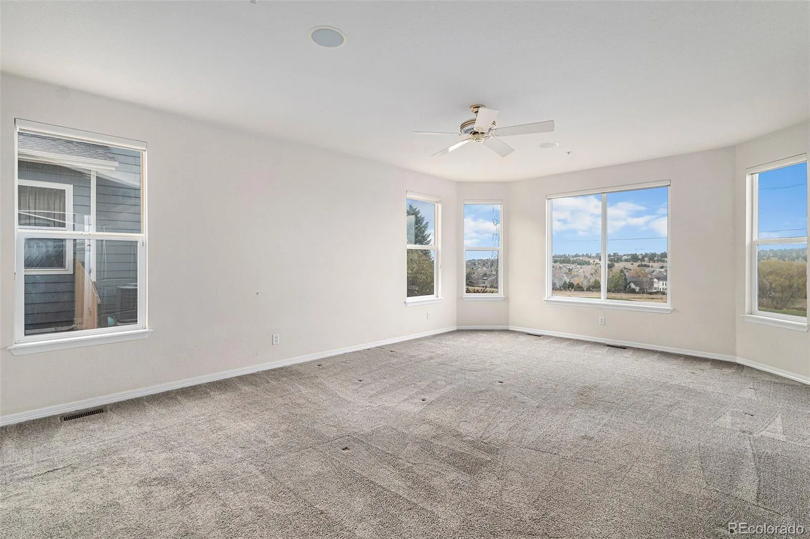 Welcome to 11449 Canterberry Lane, Parker, CO 80138 — a rare opportunity to own one of the largest homes in the gated section of Canterberry Crossing! Offering a total of 4,829 square feet, with 3,444 square feet above grade, this impressive residence features five bedrooms all above grade and sits directly on the 1st hole of Black Bear Golf Club, providing expansive views of the fairway and green. The exterior has just been freshly painted, giving the home outstanding curb appeal. Inside, the main floor primary suite offers a luxurious 5-piece bathroom and a spacious walk-in closet with built-in shelving. The open-concept main level showcases a bright family room with vaulted ceilings, floor-to-ceiling windows, a gas fireplace, and sweeping golf course views, flowing seamlessly into the kitchen and dining area—ideal for entertaining. Upstairs, you’ll find four additional bedrooms, including one with an ensuite bath and walk-in closet, two that share a Jack-and-Jill bathroom, and a fifth versatile bedroom perfect for guests or a home office. Enjoy Colorado’s sunshine from the large back deck overlooking the course. Additional highlights include a 3-car attached garage and a full unfinished basement ready for your custom design. Ideally located just minutes from downtown Parker’s shops, restaurants, and local events, with easy access to E-470, I-25, and major commuter routes. Experience the perfect blend of golf course living, space, and convenience in one of Parker’s most desirable gated communities.