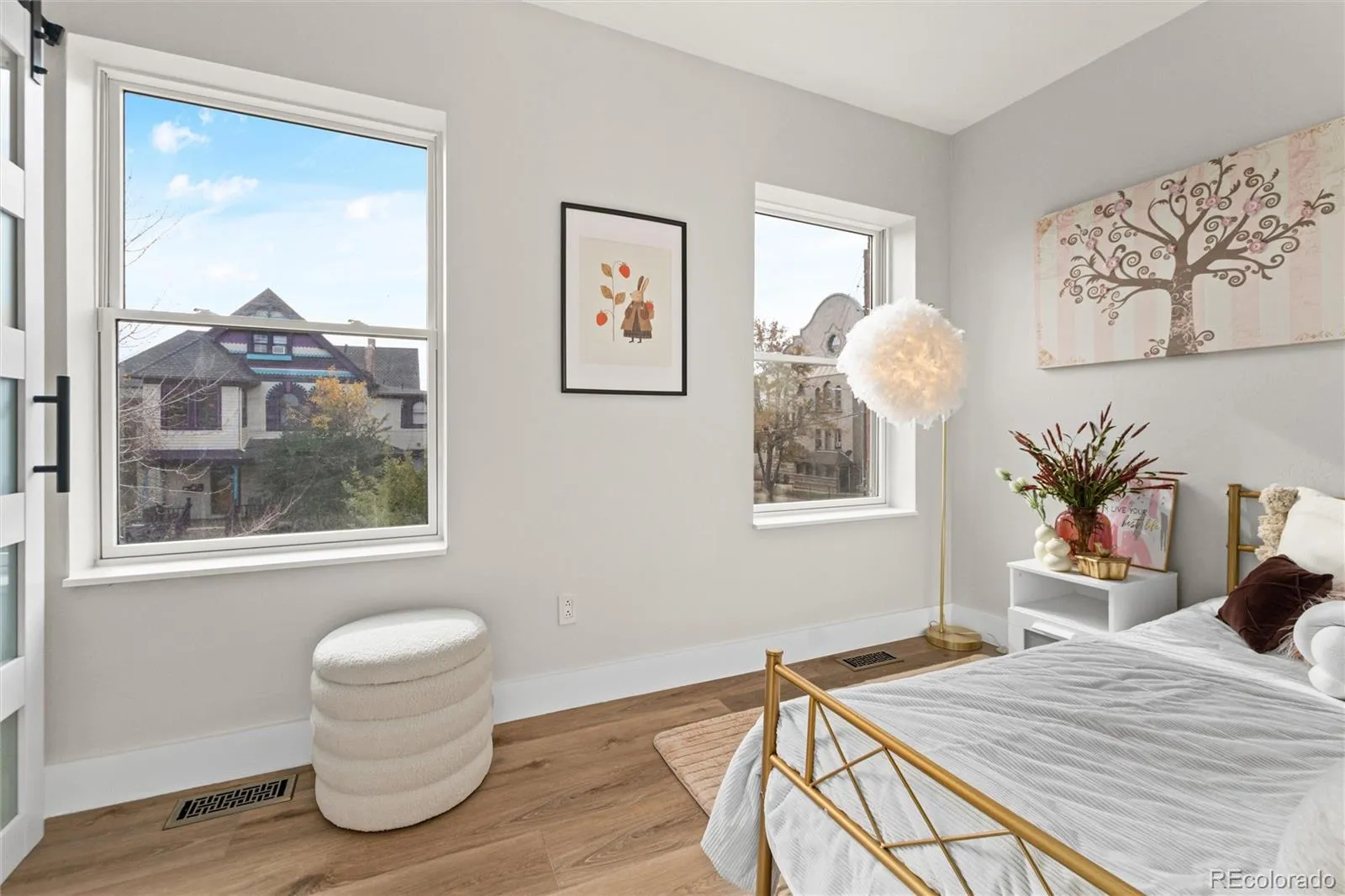 Built in 1896 and steeped in historical significance, 95 W Byers Place was once a family-owned grocery store serving Denver in the early 1900’s! For the first time in it’s 130 year history, it has been completely reimagined and transformed into a luxurious single family home on a rare double lot. The home’s exterior natural character has been preserved, which allows for an abundance of natural light that illuminates the interior of the home. Featuring 13 foot ceilings, the home opens to an open concept main floor perfect for entertaining where friends and family can easily mingle throughout the entire space! Bathed in natural light, the comfortable living room and kitchen are smartly designed with every modern convenience including quartz countertops, large center island, sleek black and gold appliances and plenty of cabinets for storage. The dine in kitchen can easily accommodate a large dinner party if needed. The main floor offers a dramatic 3/4 bath with frameless glass shower. Off the stairwell, the back of the home offers a charming butlers pantry with wine fridge tucked into the stairwell as well as a secondary entrance to the home and additional exit to the rare fully fenced yard with private parking on the large double lot. The lot offers additional opportunity for a detached garage as well as ADU should one desire. Upstairs features three bedrooms, including the Primary Suite with an updated, private ensuite bath and walk in closet. Two secondary bedrooms share a completely renovated secondary bath with dual sinks, quartz countertops and shower/tub combo. A bright reading nook with built in seating, original shelving with glass doors and included original pictures of the home from the early 1920’s showcase more of the historical charm of the home. The laundry room is smartly hidden behind one of multiple barn doors upstairs for added convenience. Located within steps of restaurants, bars and shopping this historical home is now ready to become yours!
