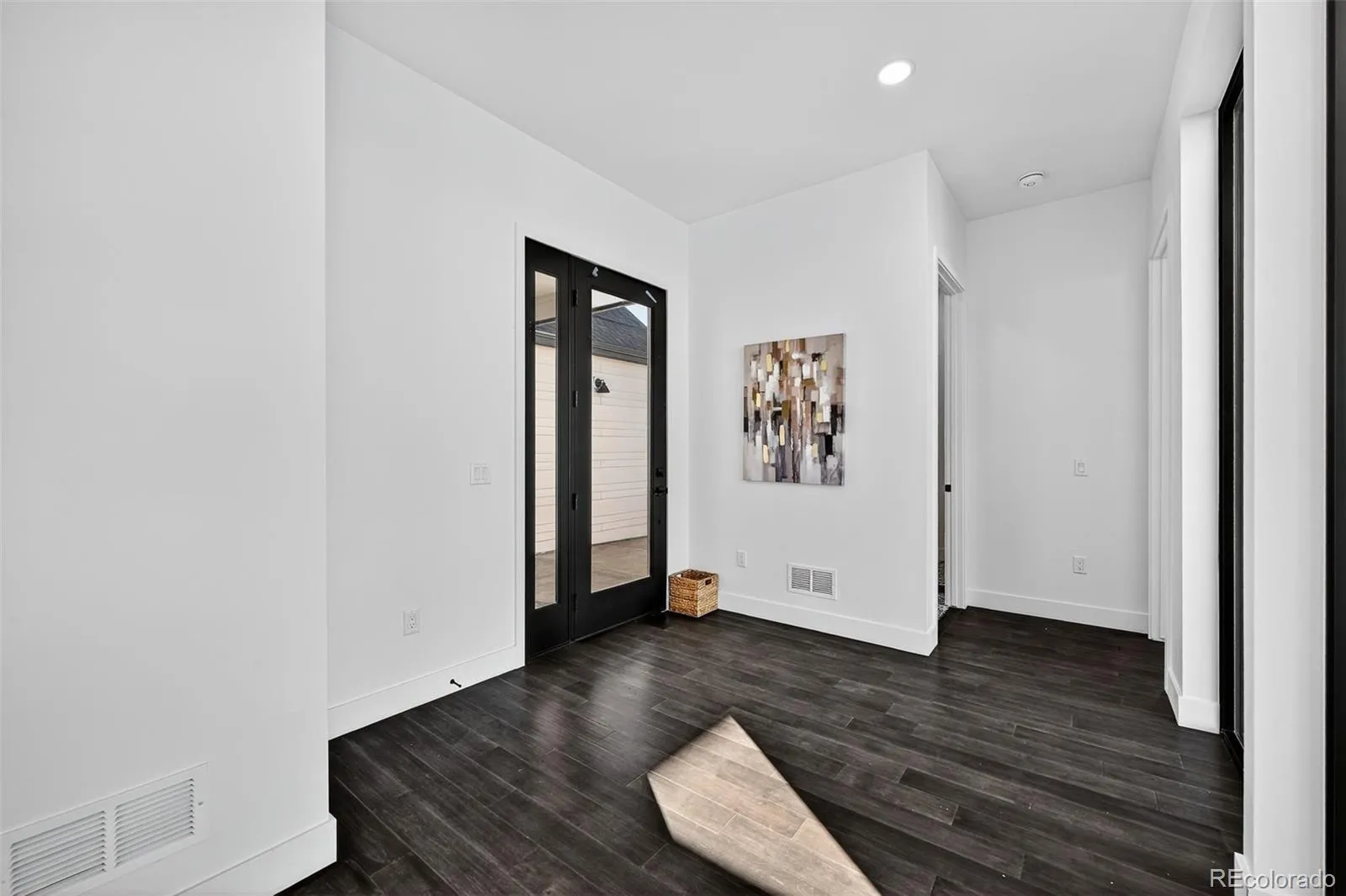 Gorgeous and unique modern farmhouse home with incredible views of the front range! With extra tall ceilings and floor to ceiling windows in almost every room. Private courtyard and a spacious lot make this home an oasis. Step into separate foyer with large windows that let in tons of natural light. A private office with floor to ceiling windows and built in shelves to frame the room in its entirety, next to an extra large powder bath for ease. The kitchen, great room and dining room share an open floor plan, flooded with sunlight from the windows and large multiple panel slider leading out to the covered deck. The kitchen features white cabinets and quartz countertops and an extended scullery kitchen/pantry to the side with all upgraded appliances. The great room stands tall with a floor to ceiling fireplace and views of the open space that wraps the lot. Out the slider is a large wrap-around deck that connects with a private door to the Primary Suite. The Primary Suite offers tall, boasting ceilings and a Master Bath with two vanities, two toilets and two closets, as well as a large zero-entry walk in shower and a spa like free standing tub. Next door to the Primary, the laundry room sits with its own sliding barn door, sink and folding station to make life a breeze. Each secondary bedroom in this home has its own en-suite bathroom with upgraded tiles and quartz countertops that give a modern feel. The lower level rec area is big enough for all activities, with engineered plank flooring and sliding door that leads out to the basement patio and exceptionally manicured side yard. The landscape of this 1.62 acre lot is inhabited by both native grasses and sod, with trees and foliage surrounding pathways and encapsulating the home to make it feel private without sacrificing views. You are going to love living here!