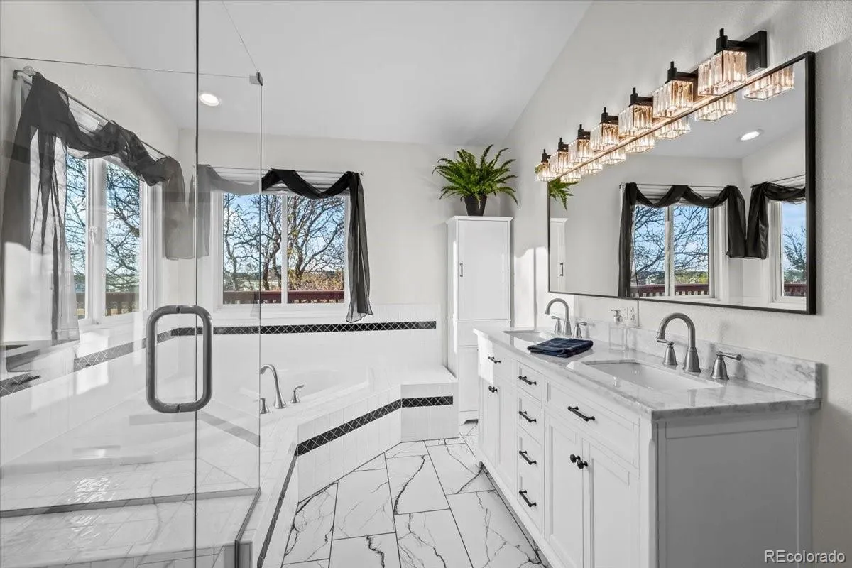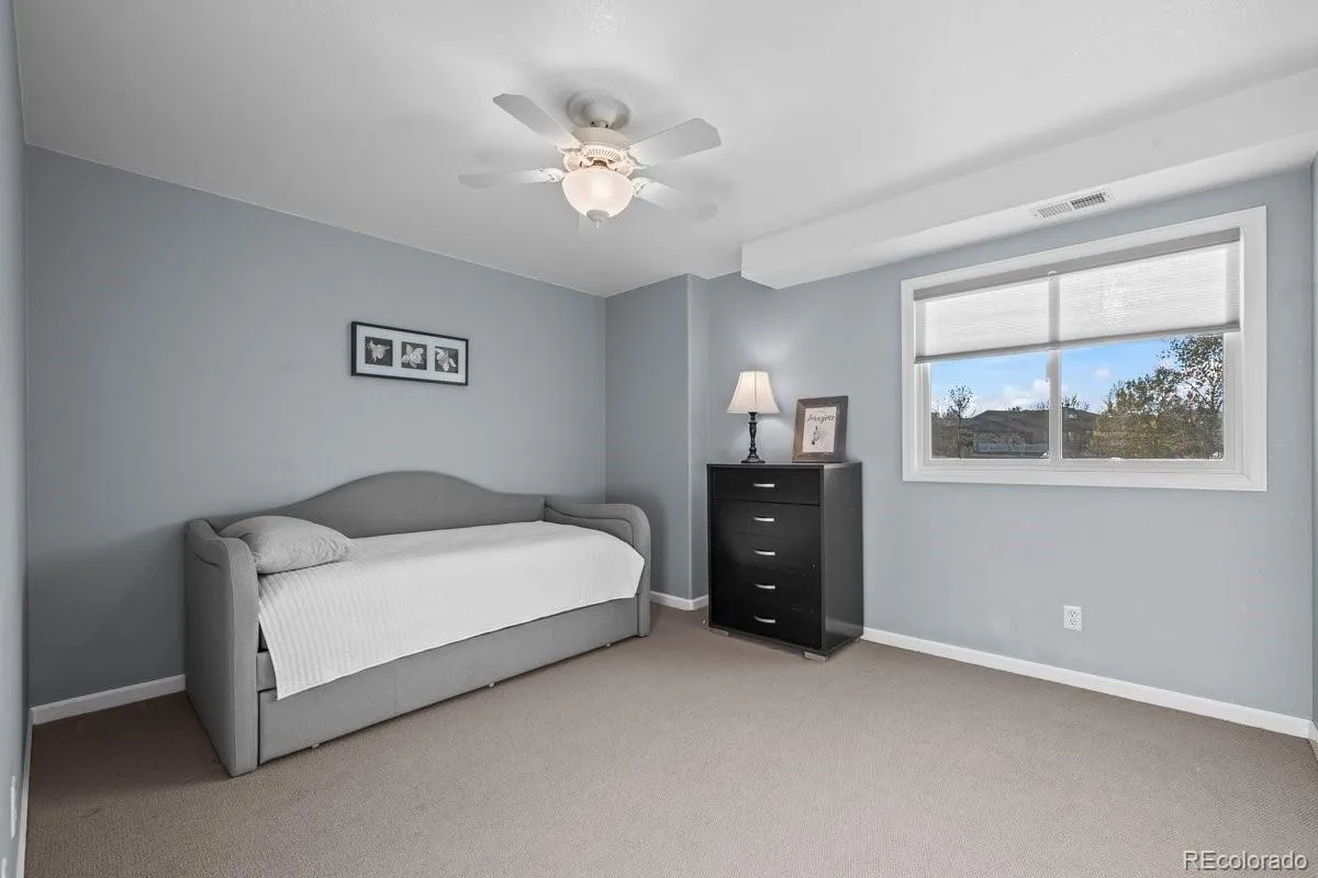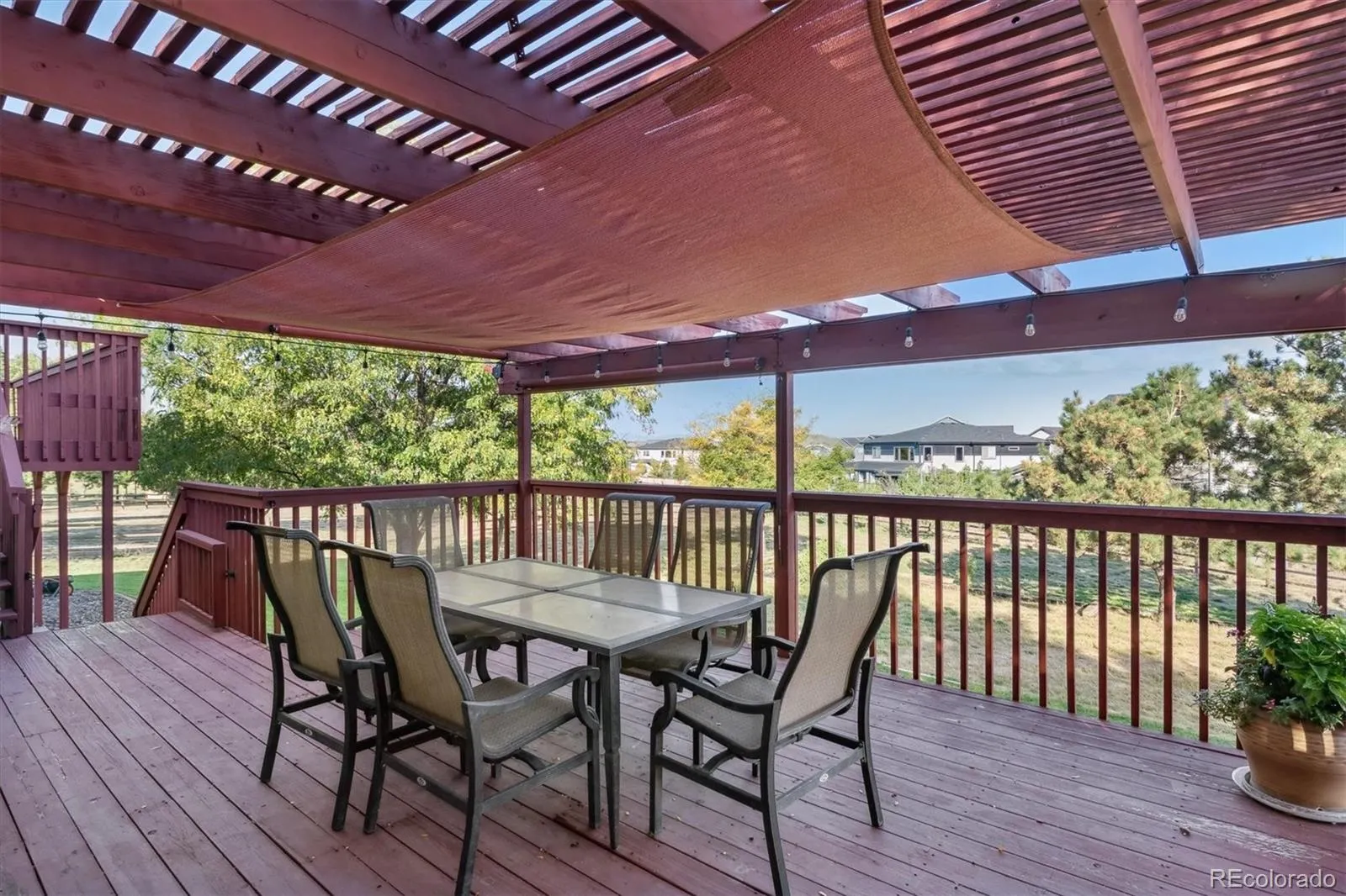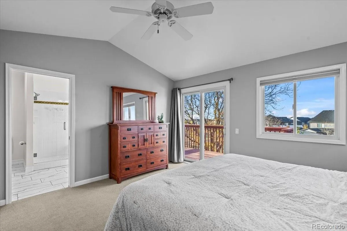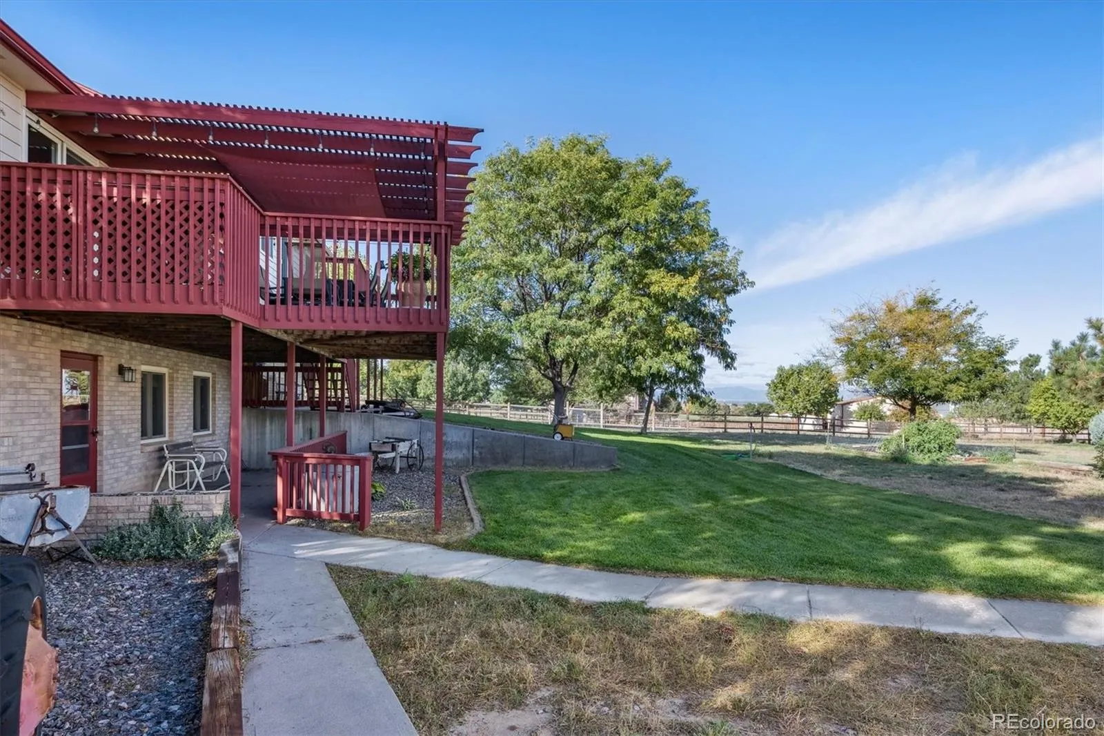 Versatile fenced estate with a 4-bedroom, 4-bath mult-level home, a guest house, outbuilding and 2 stall lean to on nearly 3 acres offers an exceptional opportunity for multigenerational living, as well as animals just minutes from shopping. This thoughtfully designed property combines space, separation & everyday convenience with stunning mountain views. The separate guest house is complete with a ¾ bath, large closet, cabinetry & countertop space—perfect for extended family, a live-in caretaker, home office, or private studio. A heated 1,530 sq ft outbuilding w/concrete floors, 220V power & access from a separate cul-de-sac is great for storage, hobbies, workshop use. Directly adjacent is the lean-to with power, water, a riding arena and 2 separate grazing pastures. Inside the main home, a spacious foyer opens to a main level w/hardwood floors & vaulted ceilings. The upgraded kitchen features a large island, stainless steel appliances, abundant cabinetry & generous counter space, which flows into the formal living room and dining area with expansive windows and plenty of space for entertaining & gatherings. Outdoor living is elevated w/direct access to an expansive multi-level deck ideal for relaxing or hosting while enjoying Colorado sunsets. The upper level includes a private primary suite w/an updated 5-piece bath, walk-in closet & deck access, plus an additional bedroom w/an ensuite bath & walk-in closet—perfect for privacy and separation. The lower level offers a comfortable family room with new carpet & a propane fireplace, a bedroom, ¾ bath & oversized laundry. An additional lower level includes a large media room, bedroom, office, and ¾ bath—creating an ideal layout for extended family or guests. A rare opportunity to own a property that offers privacy, flexibility & room to live together—yet independently—without sacrificing proximity to amenities.