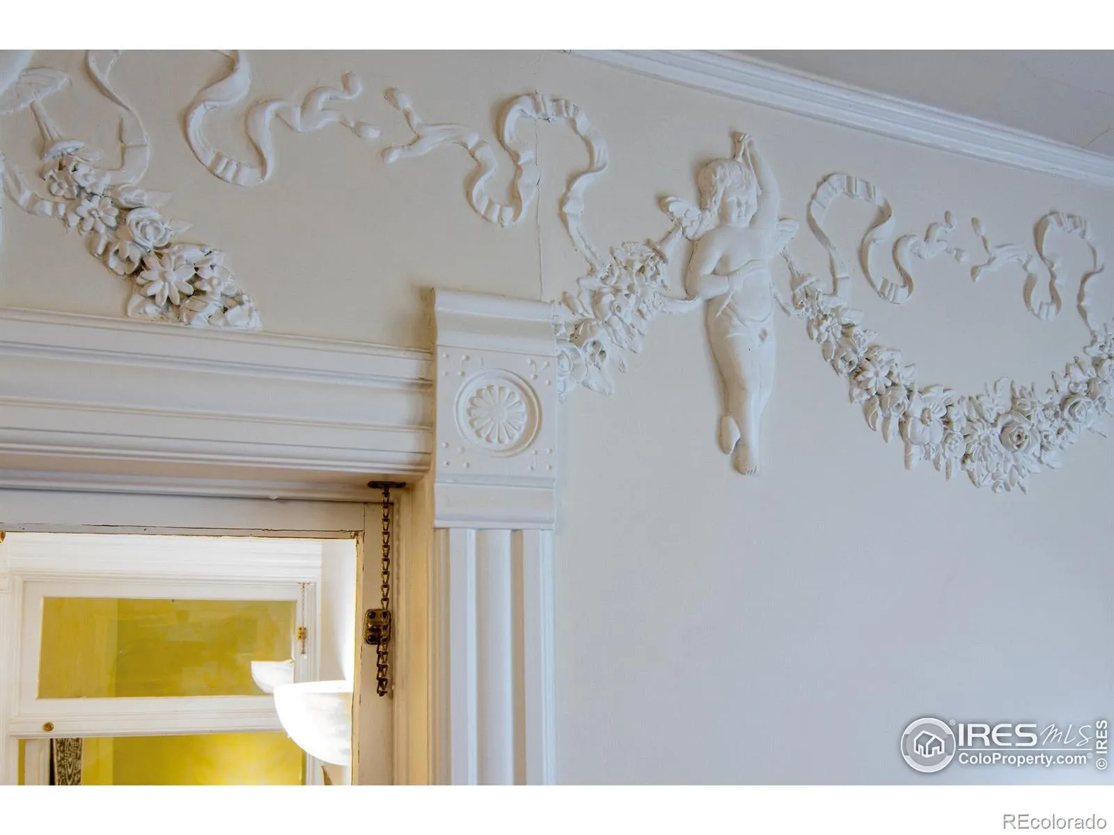 Come home to this jewel of a Victorian condominium on the main floor of the historic landmarked Whiteley-Hellems house. One of six condos on the property, and rarely available, this 2 bedroom 1 bath ground floor unit is stunning in it’s elegant details. Invite guests into the large cozy living room/dining room with its warm marble gas fireplace. A landmarked frieze of plaster cherubs circles the living room walls. The sun pours in the west-facing double hung windows, lighting up the beautifully-crafted interior, including paneled walls with chair rail and interior transom windows over doorways. Step into the sunny and spacious eat-in kitchen with in-floor heat and a generous mud room area. Enjoy easy access to the spacious patio from the kitchen for morning coffee and al fresco dining. The primary bedroom is artful and serene with stained glass windows, parquet wood flooring and a large walk-in closet. The 2nd bedroom has an exterior public entrance perfect for alternate use as a home office. Delight in gardening with your neighbors in the common area garden beds on this historic property. One parking space in a two car garage off the ally, conveniently adjacent to the back door of the condo for easy access. Perfectly located in the heart of central Boulder, with an easy stroll to Pearl Street, the Farmer’s Market and Ideal Market area. Trails and bike paths nearby. Come home to Boulder. Available for showings starting 11/7/25.