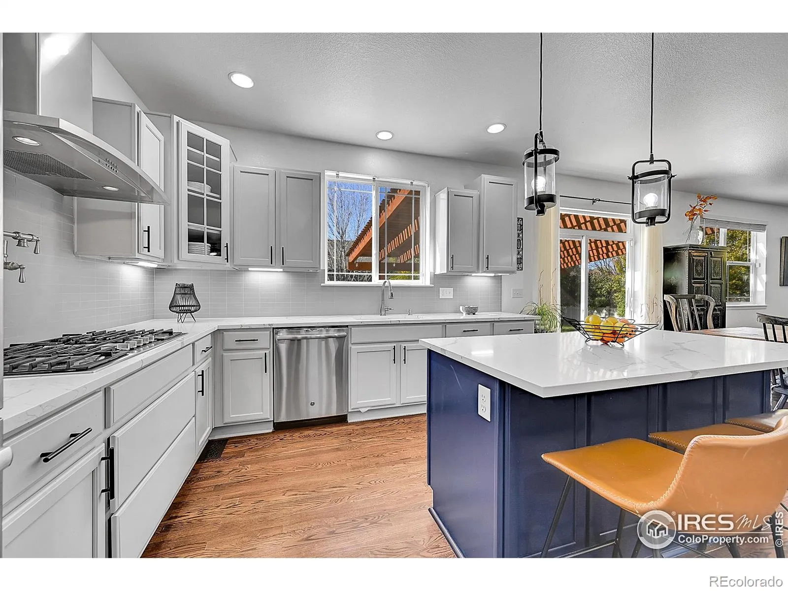 Welcome to the perfect blend of elegance and comfort. Located in the Moore Farm subdivision, just off the Bella Rosa Golf Course. This expansive home boasts 7 bedrooms, 5 bathrooms, and a spacious 3-car garage. Entertain in style in the open chef’s kitchen, complete with a generous island, abundant quartz counter space, a gas cooktop with pot filler, and a double oven. A formal dining room and red oak hardwood floors lend warmth and timeless appeal. Relax upstairs in the large primary suite featuring a dream bathroom and a spacious walk-in closet. Three additional upstairs bedrooms and two bathrooms provide comfortable accommodations for family and guests. A separate laundry room adds practicality to the upper-level living areas. The main-level bedroom has been converted into a convenient dog run with its own dog door and can be converted back to a conventional bedroom if desired. The finished lower level expands your living and entertaining footprint with a wide open recreation area, full wet bar, two additional bedrooms, bathroom, plus an unfinished room currently used as a home gym – easily finished to suit your needs (office, media room, or 8th bedroom). Outdoor living is an extension of the home: a large patio beneath a pergola creates a shaded gathering spot beside a built-in gas grilling area, while a kids’ playset, generous grassy yard, and mature tree foliage provide play space and seasonal privacy during spring and summer.