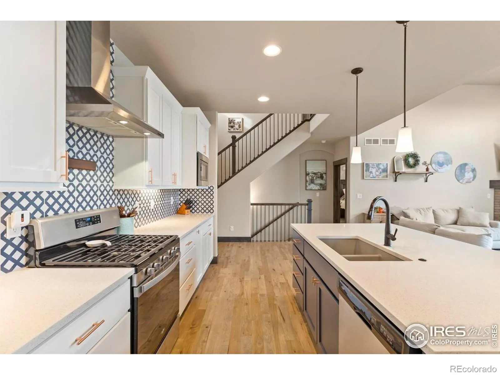 **Must See In Person** Semi-Custom Home by Bridgewater, Custom Tharp Cabinets, Solid Hickory wood flooring, Main level primary bedroom & bath, 2nd bedroom on the main level/office, Open floor plan w/vaulted ceilings, custom designed island, Gourmet Kitchen w/ 5-burner gas range, walk-in pantry, Fenced yard, professional landscaping, patio & pergola, Unfinished Garden Level Basement, Oversized 3-car garage w/ 9-ft door on one side, Close distance to parks & new school, neighborhood pool & golf course along w/winter sledding & skiing, multiple onsite restaurant, & orchards throughout the neighborhood.