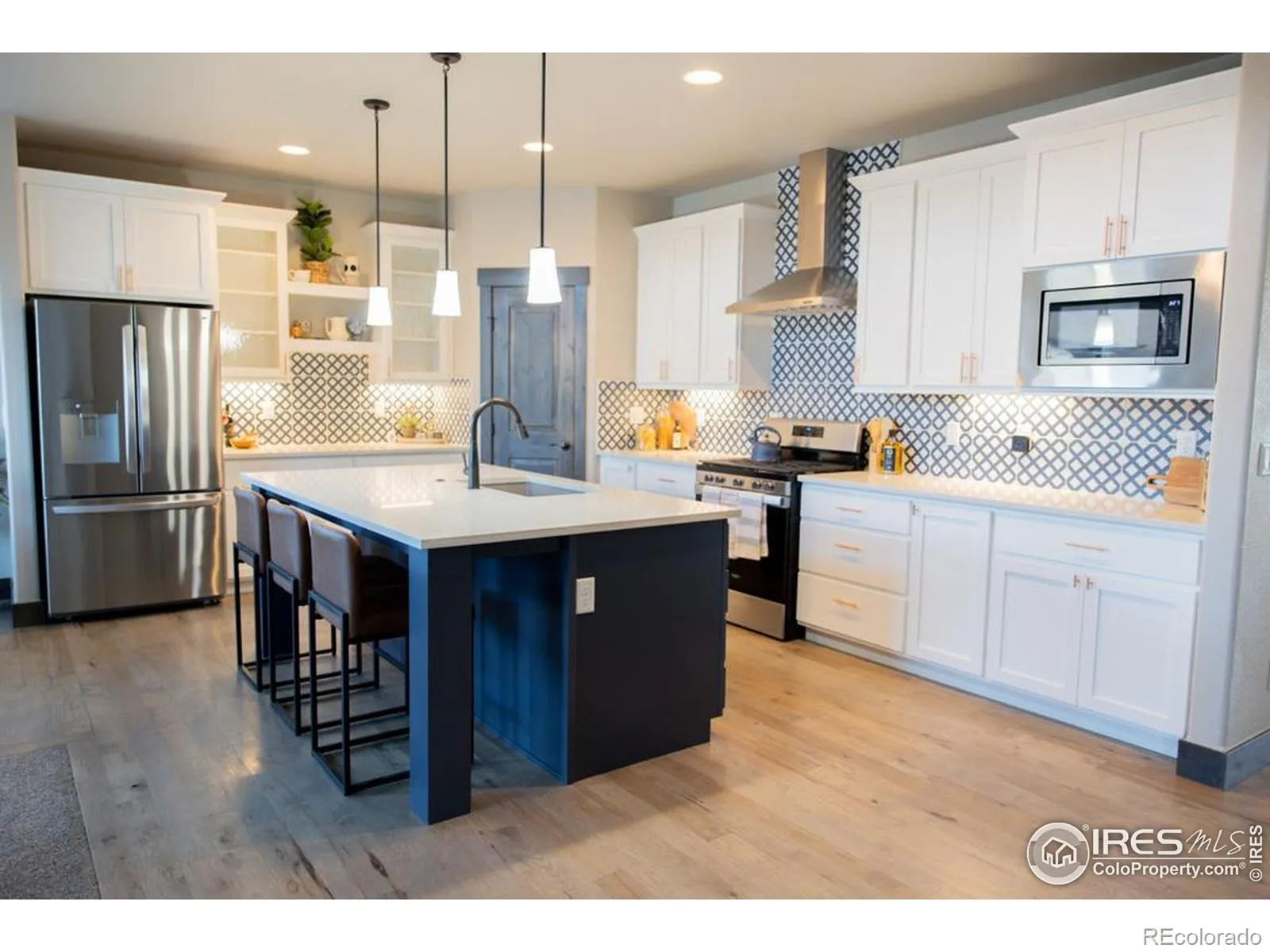 **Must See In Person** Semi-Custom Home by Bridgewater, Custom Tharp Cabinets, Solid Hickory wood flooring, Main level primary bedroom & bath, 2nd bedroom on the main level/office, Open floor plan w/vaulted ceilings, custom designed island, Gourmet Kitchen w/ 5-burner gas range, walk-in pantry, Fenced yard, professional landscaping, patio & pergola, Unfinished Garden Level Basement, Oversized 3-car garage w/ 9-ft door on one side, Close distance to parks & new school, neighborhood pool & golf course along w/winter sledding & skiing, multiple onsite restaurant, & orchards throughout the neighborhood.
