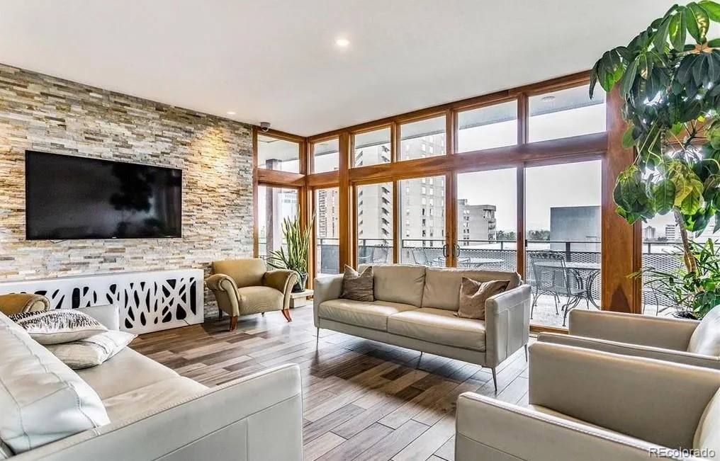 LOCATION & VIEWS! Experience elevated city living in this sophisticated Cheesman Park condo, perfectly perched on the 8th floor with breathtaking east-facing views toward Congress Park and the morning sunrise. This beautifully remodeled residence blends modern comfort with refined style—featuring 9-foot ceilings, ambient lighting, wide-plank vinyl flooring, tall doors, and tinted patio doors that open to your large private balcony which is accessed from both the living room and the bedroom. Offered as a true turnkey opportunity, all furnishings are negotiable—ideal for those who appreciate a thoughtfully designed and move-in-ready home. The open-concept living and dining areas exude warmth and comfort, providing the perfect setting for entertaining or relaxing after a day in the city. The updated kitchen boasts new appliances and ample space for a gourmet cooking experience. The bedroom has been reimagined for functionality and flow, with an expanded closet relocated to the hallway just outside the double-vanity bathroom—offering a more spacious and efficient layout. Central air and ceiling fans provide year-round comfort and cool summer breezes, while the included heat keeps things cozy on those chilly nights. Residents also enjoy access to the penthouse level, which features a beautiful year-round rooftop indoor heated pool, clubhouse, expansive decks, and panoramic views of the Denver skyline and beyond. Additional highlights include a reserved, gated parking space equipped with a personal Electric Vehicle charging station—perfect for today’s modern lifestyle. Step outside and find yourself within walking distance of the Denver Botanic Gardens, local restaurants, boutique shops, and of course, beautiful Cheesman Park itself. A rare opportunity to own a truly stylish city retreat in one of Denver’s most coveted neighborhoods—don’t miss this Cheesman Park gem.