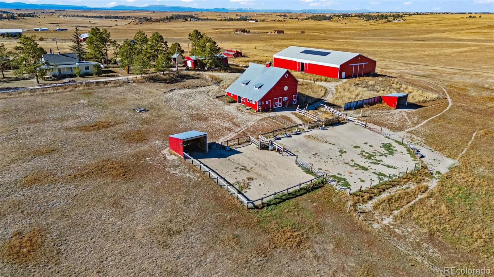 ***Property features: Indoor arena | 7-stall barn with hay loft | 160-bale hay field | Stunning views of Pikes Peak | Sauna, she-shed, spacious poultry house with yard, garage/tool shed | Solar panels | Mature garden | Link to property video in listing*** This property offers a seamless blend of equestrian excellence, intentional spaces and true Colorado living. Featuring an original farmhouse full of warmth and character, a historic two-story barn, and thoughtfully designed amenities across 40 acres, 4729 County Road 106 captures the essence of genuine Colorado living—functional, beautiful, and full of possibility. Designed for both practicality and comfort, the property includes a charming farmhouse that anchors the land with history and heart, complemented by a two-story barn featured in Historic Barns of Elbert County. Outbuildings include an art studio or she-shed, a sauna and hot tub for relaxation, a spacious poultry house with yard and a quonset hut for storage and projects. Equestrian features include a 60×120 indoor arena with premium footing, a dressage-standard outdoor arena, an oversized round pen and a barn with up to seven stalls. The acreage is divided into five solar-powered cross fenced pastures and two dry lots (one with a foal pen), creating safe, flexible spaces for horses and livestock. A 20-acre hay pasture yields approximately 160 bales per year, offering valuable agricultural potential. Modern comforts include solar panels, reverse-osmosis water purification, and multiple fenced areas for rotational grazing. Whether you embrace the original farmhouse or build a new home atop the hill to capture panoramic mountain views, this property delivers a rare combination of charm, utility, and open-sky tranquility—an extraordinary opportunity to live, create, and thrive in the best of Colorado’s countryside. Link to property video in listing.