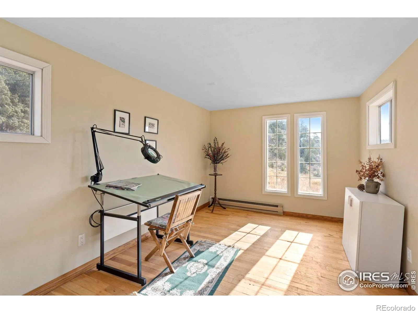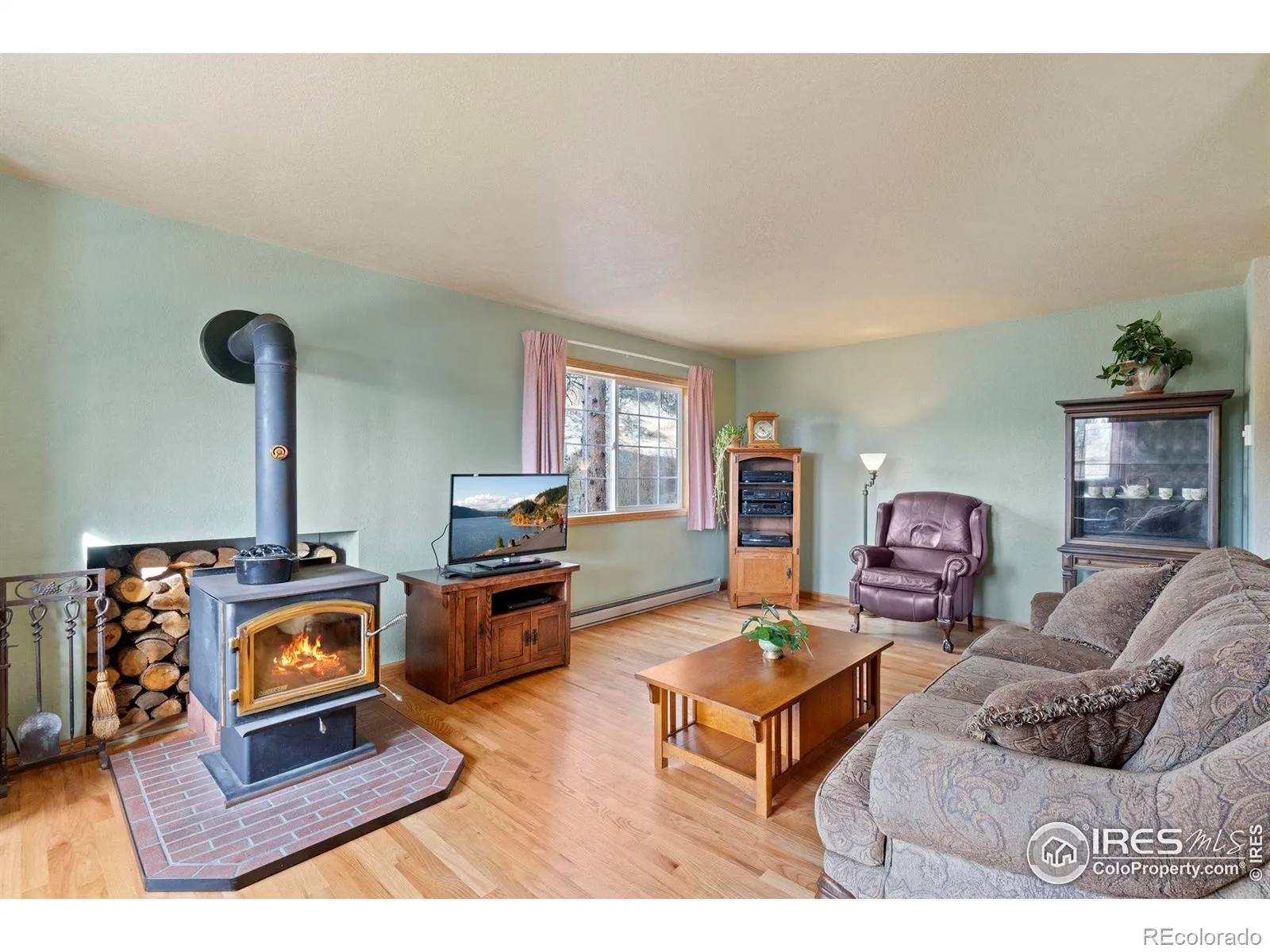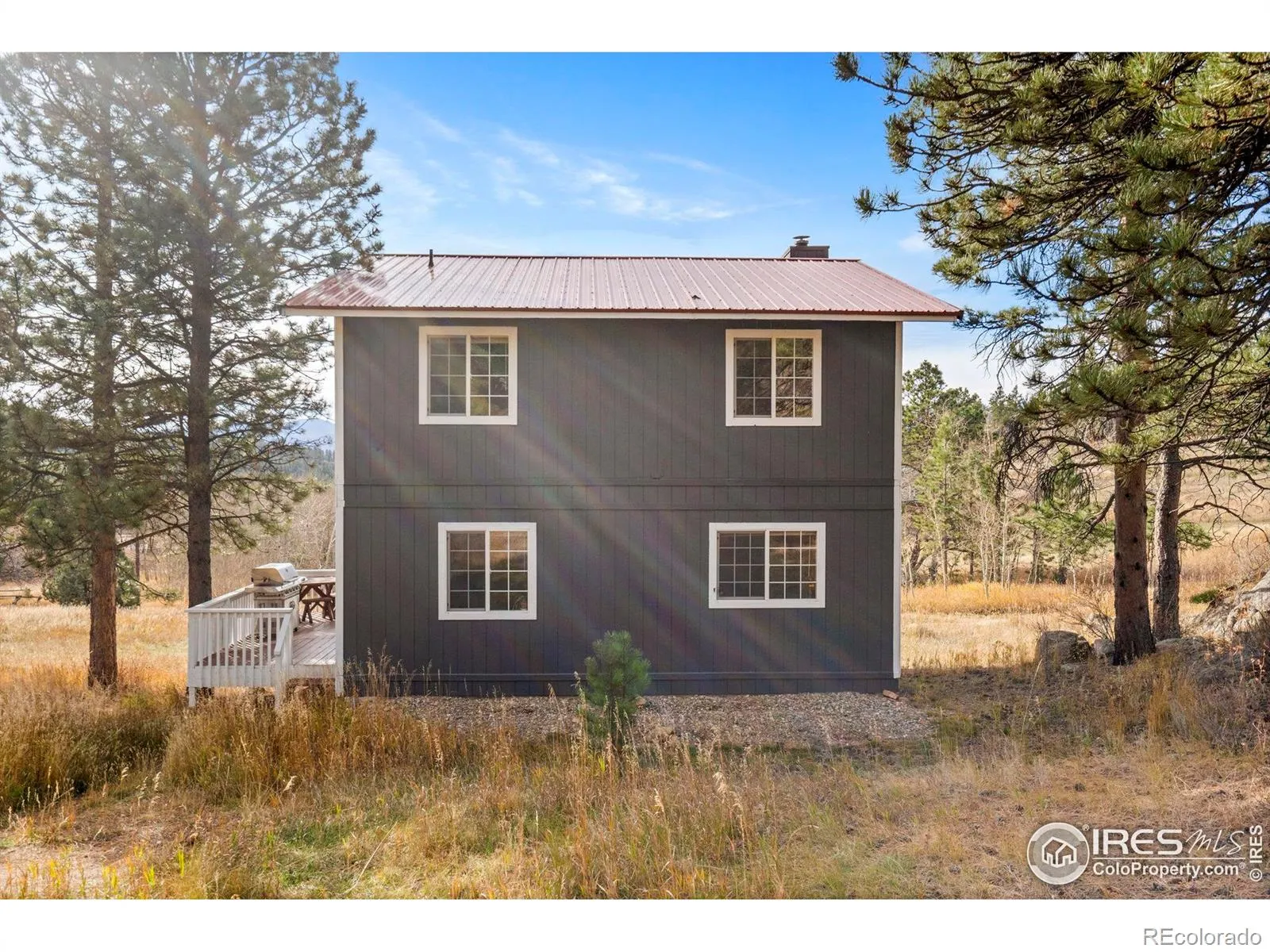 Colorado Freedom House – 1776. That’s right, 1776 sq ft of pure Colorado freedom! Your front door opens to 45 acres of National Forest – hike wild, unmarked Manhead Mountain with zero trespassing. Friendly neighbors just over the fence, yet you’ll feel a world away. Built California-earthquake strong with 2X6 walls, this south-facing retreat drinks sunlight through vinyl double-pane windows and 8-ft ceilings. Hardwood floors everywhere, brand-new floors in kitchen, guest bath, and laundry. Kitchen glows with oak cabinets, breakfast bar, and a huge window over the sink so you never miss the forest while rinsing dishes. Heat? A legendary Quadra-Fire wood stove (83 % efficient) plus baseboard electric averaging $100/month throughout the year. 700-ft well – no cistern, no hauling water. Seasonal stream, wild peppermint, 3 apple trees, chokecherry tree, and a tiny hot spring keep the wildlife parade coming year-round. Upstairs: – Primary suite – walk-in closet, big windows, mountain views – 2nd & 3rd bedrooms – pine views, deep closets – 4 piece bath upstairs with Clawfoot tub + main-floor 1/2 bath. Two porches: one off the kitchen for BBQ flow, one out front for coffee, watching the aspen grove explode gold every September. Detached and oversized 2-car garage (663 sf) with heated wood-stove workshop + shelving. Separate 160 sq ft electric Patriot office/studio (electric done professionally, and permitted). 7-ft ceilings for the heated crawlspace, metal roof, fresh paint, 50-gal water heater, wood-nook right behind the Quadra-Fire. Rock outcroppings shield you from the world; big meadows beg for stargazing during warm summer nights. Glacier View Meadows throws potlucks and holiday fun – friendly when you want, invisible when you don’t. Fort Collins – 35 min. Internet strong through Starlink. Bring hiking boots, telescope, and apple-pie recipe. Leave the city chaos behind. (Heated living area = 1,776 sf (1,616 sf main + 160 sf permitted studio; docs in MLS).