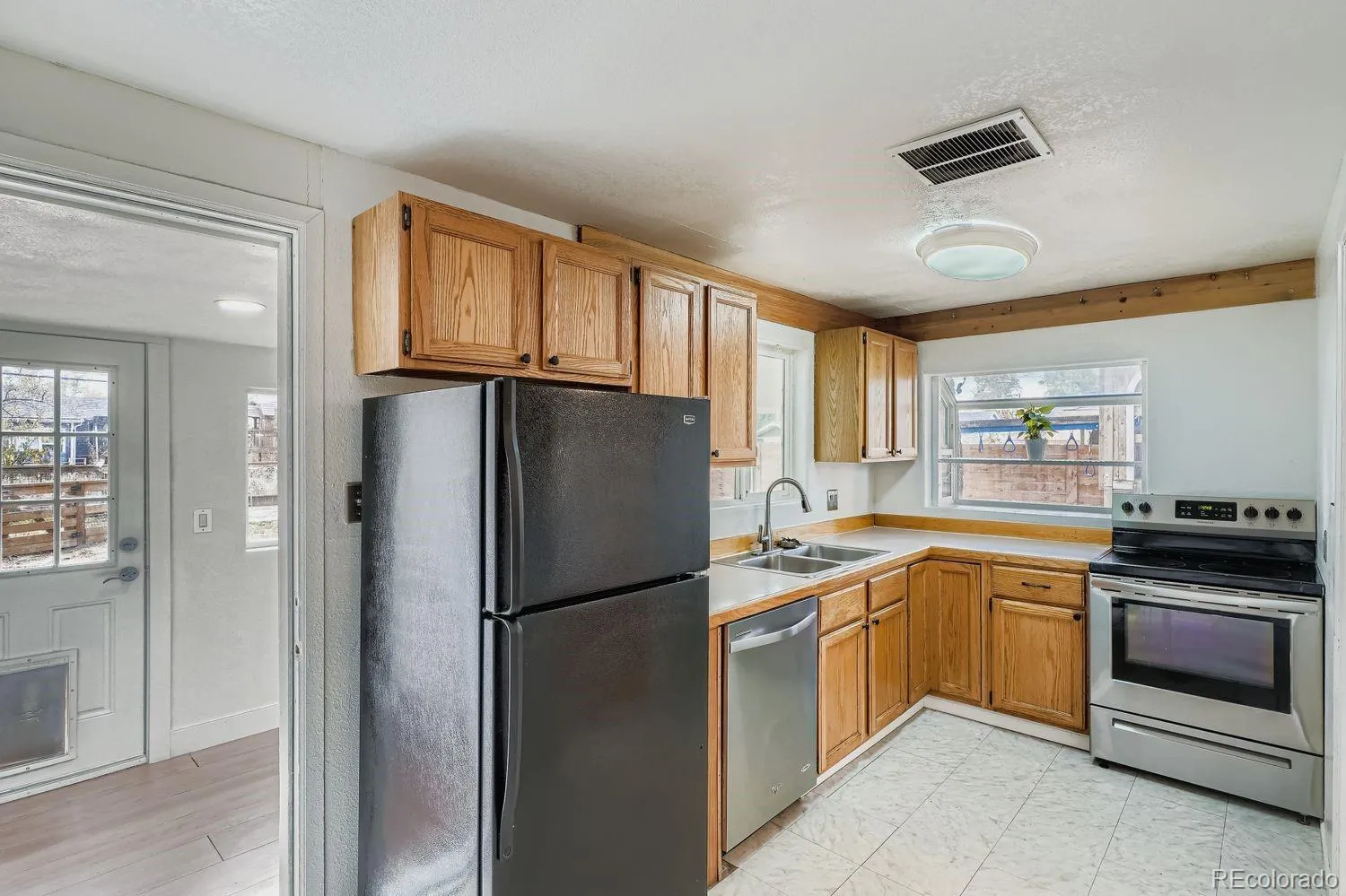 Welcome home to this charming single story 3-bedroom, 2-bath ranch nestled in a quiet Wheat Ridge neighborhood, just a short walk to restaurants and shopping and just minutes from TENNYSON STREET and the Historic Oriental Theater! Inside, you’ll find beautiful HARDWOOD FLOORS, New Carpet in the primary bedroom, and FRESH INTERIOR PAINT. The spacious primary suite features French doors leading to a private patio and a CLAWFOOT TUB for relaxing at the end of the day. The large, fenced yard is perfect for outdoor living, with plenty of room for gardening or your homesteading dreams with a ready-to-go CHICKEN COOP! There is a Separate Fenced Area for the furry menagerie of your choosing. The bonus South Facing SUNROOM that doubles as a laundry room, is perfect for your seed starting hobby or house plant haven, or just to enjoy the Colorado sunshine year round. The 2-car Oversized Detached Garage provides ample parking and storage, and the **SOLAR SYSTEM WILL BE PAID OFF AT CLOSING** providing ENERGY EFFICIENCY SAVINGS! This lovely SINGLE STORY ranch home home is a perfect fit for first-time home buyers, those looking to downsize, or anyone seeking an inviting home in a fantastic location! Call for your private showing today!