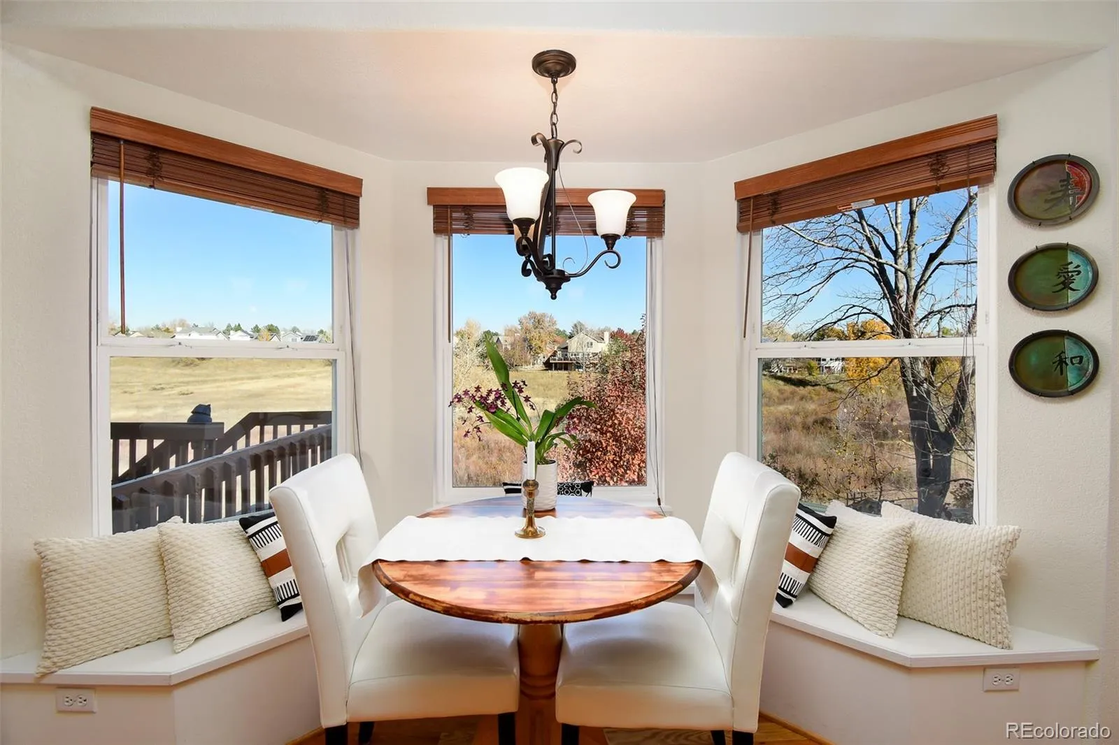 Welcome home to this spacious 5-bedroom, 4-bathroom gem of a home with a walkout basement that backs to open space! The main level welcomes you with a bright, vaulted living room that flows seamlessly into the dining room, both filled with natural light from large newer windows. The kitchen features granite countertops, ample cabinet space, and a cozy eat-in nook with a built-in bench in the bay window. Enjoy easy entertaining with the open layout connecting the kitchen to the family room, complete with natural gas fireplace and newer door leading to the expansive deck overlooking open space. Real wood floors throughout the main level! A guest bathroom and laundry room complete the main level. Head upstairs where the primary suite offers vaulted ceilings, a walk-in closet, and a spa-like ensuite bathroom with dual sinks, a large soaking tub, an oversized shower, a private water closet. Upstairs on the other side of the landing is a full bathroom and two additional bedrooms both overlooking the open space. The walkout basement features two additional bedrooms, a full bathroom, a spacious open area for recreation or media use, and two large storage rooms—one with potential to be converted into an additional bedroom and bathroom. Step outside onto the patio that is covered by the upper deck and enjoy your spacious yard. This home is move in ready with newer water heater, furnace, and air conditioner! Conveniently located near top-rated schools, multiple highways, grocery stores, and dining options. This is a must see!