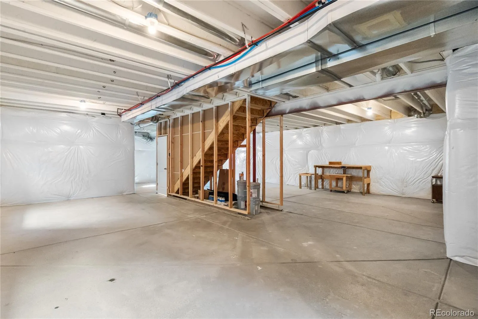 Unfinished basement with electrical, plumbing, and insulation completed