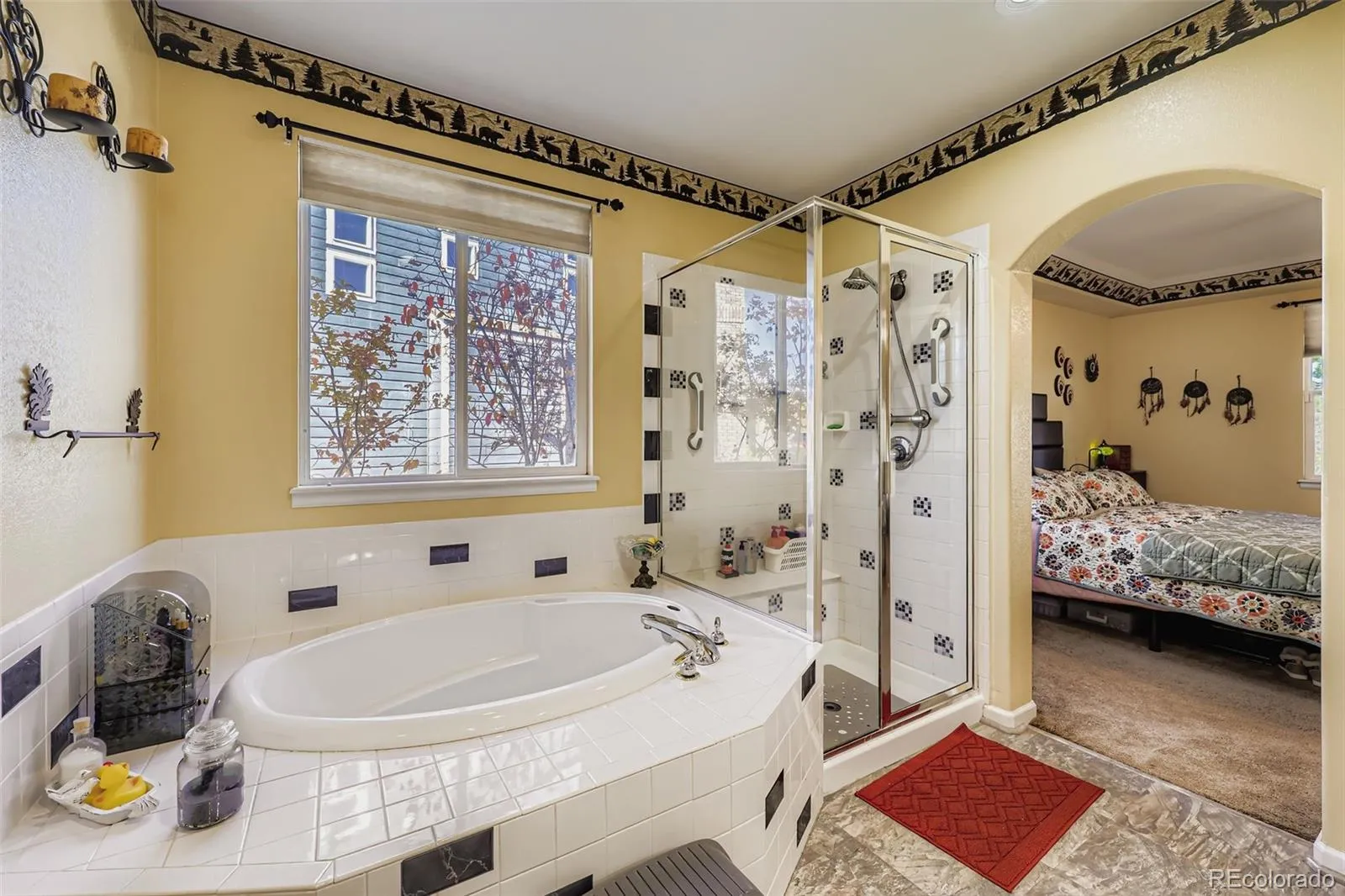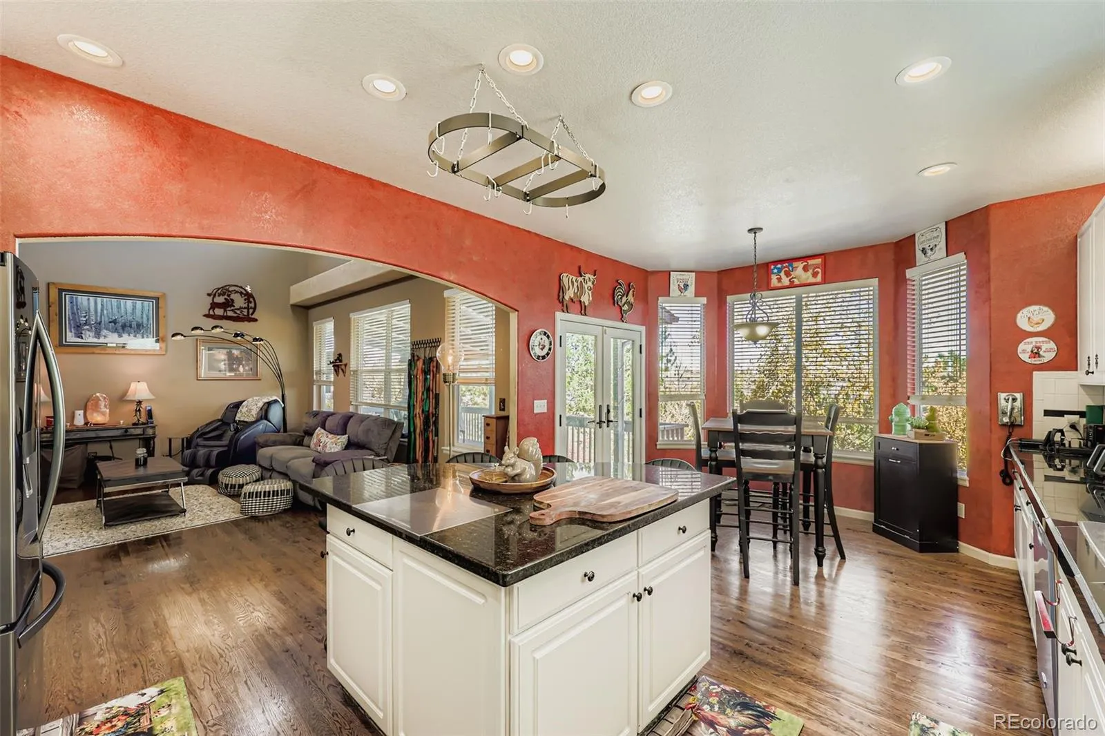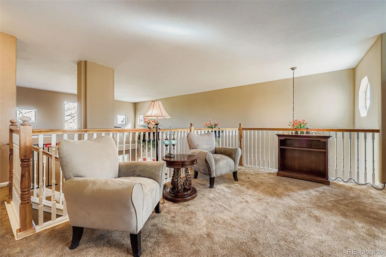 Do you like the rolling hills of the gamble oak forest in Castle Pines? Check out this roomy home on 0.29 acres a quiet cul de sac in Castle Pines North. There’s room inside for everyone and all your treasures on three sunny levels. Consider the space outside to lounge, play, garden and party in the yard, on the double east decks and the sunny west porch. This home features main floor living with the primary bedroom and laundry on the main level. The formal living room and dining room wood floors gleam next to the stately vaulted foyer. The 2-story family room has a grand gas fireplace to display your favorite art. For holidays, there’s a place in the kitchen for all to gather: at the granite island, in the eating nook or working away at the many counters with the stainless steel appliances. On the upper level is a sunny loft/office, with two bedrooms and a full bath. For game day or movie night, meet in the basement media room with its sink, fridge, bar and big screen. Spread out to the adjacent to the lower deck and yard. The walk-out basement has natural light and full windows, a 3/4 bath with a steam shower and two more bedrooms! Appreciate the roof is 5 yr old w transferable 30 year warranty; water heater 7 yr old; newer 5-burner gas cooktop; new Anderson slider to the top deck; furnace serviced and ready for winter; new east and north fences; commercial vinyl floors in three of the baths; new pendant lights and chandelier in the foyer and dining room; smart irrigation system to save water, and more.