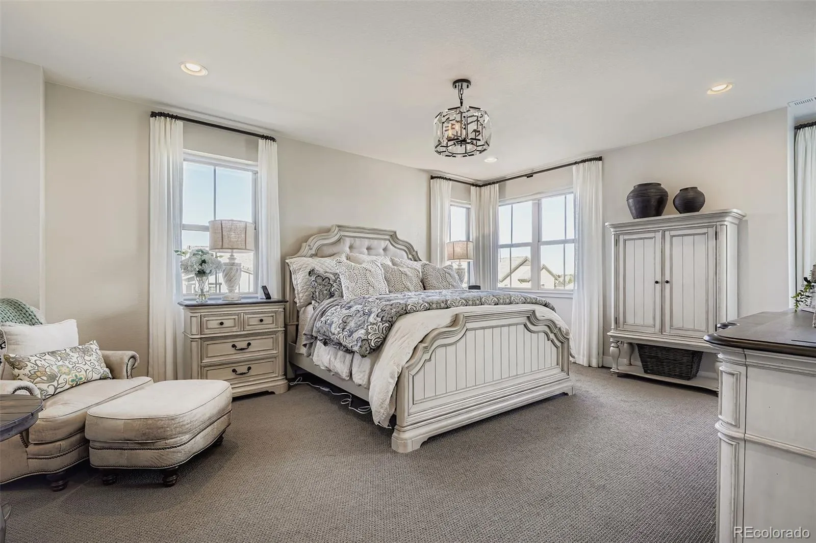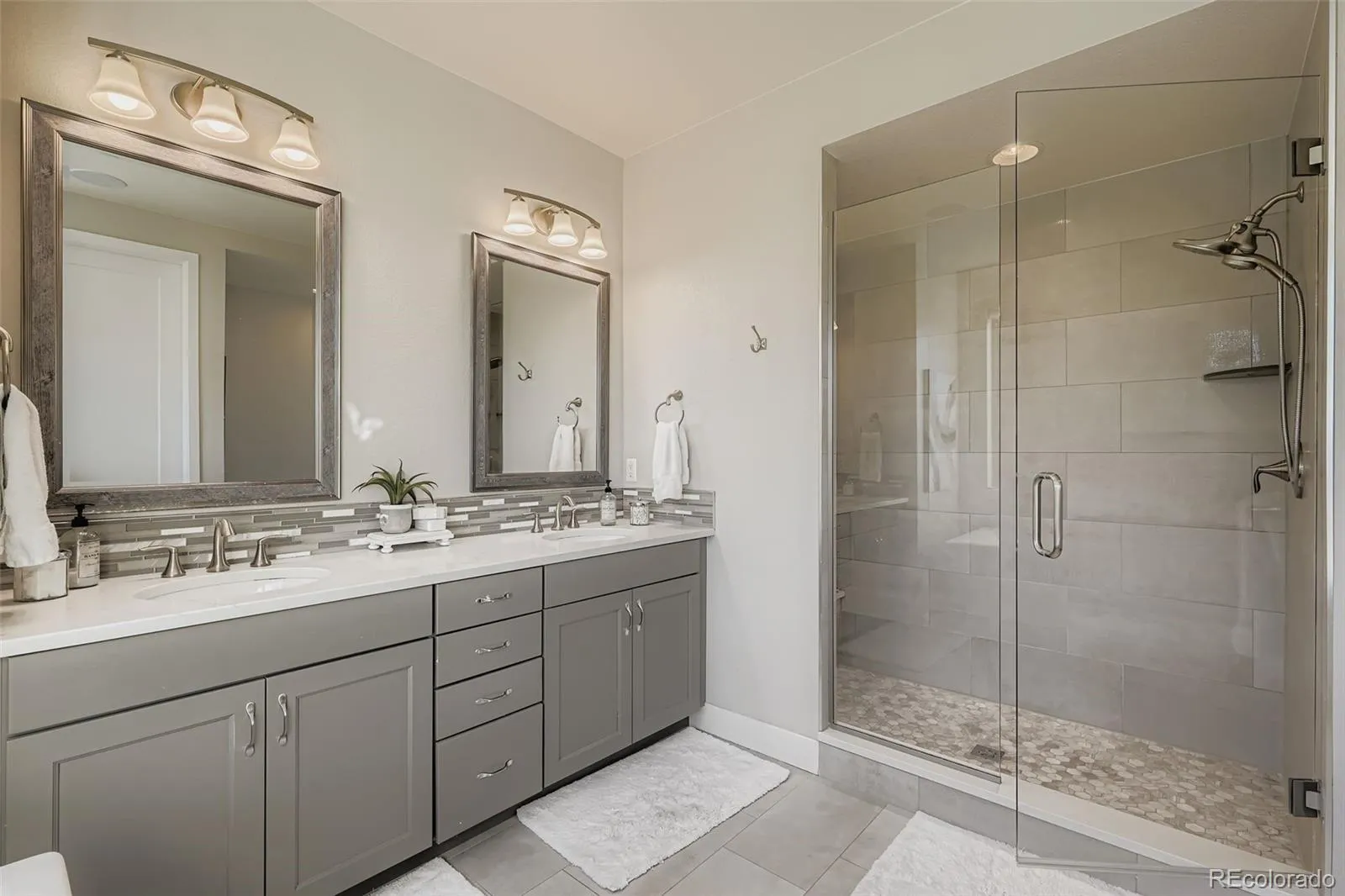 Discover luxurious living in this meticulously maintained 4-bedroom, 4-bathroom Highlands Ranch home in the gated Backcountry neighborhood. This 3,770 sq. ft. residence boasts a gourmet kitchen with quartzite counters, a gas stove-top, and walk-in pantry. The eat-in kitchen is surrounded by over-sized windows that flood the space with natural light. The open floor plan has tall ceilings, and seamless indoor-outdoor living through large sliding doors leading to a covered outdoor space, where you can relax and enjoy the low maintenance landscaping. A main level office, with glass french doors and windows galore, is the perfect place to spend your work day. Retreat upstairs to the expansive primary suite with a spa-like 5-piece ensuite and large walk-in closet. Enjoy mountain views from two secondary bedrooms, and the conveniently located upstairs laundry. An extra-wide, grand staircase leads down to the finished basement which offers a second large gathering area, wet bar, guestroom with private bath, and ample storage. The whole house has automatic Somfy shades, and a 4 zone sound system wired for Sonos. The insulated garage with epoxy floors features a west-facing driveway that quickly melts the snow away. Exclusive access to the hub of the neighborhood – the Sundial House – provides a restaurant, lounge, pool, and health/wellness facilities. Backcountry residents also get access to private trails for all-season activities like hiking, biking and snowshoeing, and the opportunity to see all the wildlife that Colorado has to offer. Experience a luxury home with resort-like amenities at every turn. Schedule your showing today!