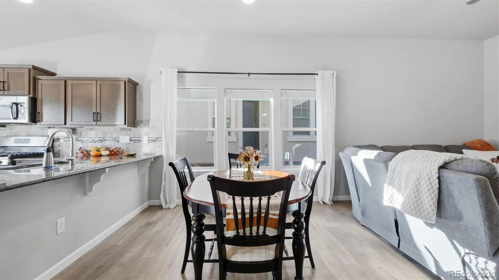 Low maintenance, main level living at its best! Spectacular 3BR, 3BA, patio home nestled in the serene Colorado Springs community of Enclaves at Mountain Vista Ranch. This thoughtfully designed home with stunning Rocky Mountain views & 2160 square feet of living space combines modern elegance with effortless living. Covered front porch to enjoy the Colorado sunshine. Step inside & experience an open-concept main level that feels bright & inviting, thanks to high ceilings & abundant natural light. Central air, heat, & lighted ceiling fans offer year round comfort. The spacious living room & dining area, anchored by a cozy fireplace with stone surround, creates the perfect setting for relaxing evenings & entertaining friends. The chef-inspired walk-out kitchen features a breakfast bar & dark wood cabinets with granite countertops & tile backsplash that adds a touch of personality. A walk-in pantry ensures everything has its place. Stainless steel appliances incl a gas range oven, microwave, dishwasher, & French door refrigerator. Walk out to a backyard patio to enjoy outdoor dining & relaxation. The main-level primary suite is a true sanctuary, complete with a spa-like bathroom offering a double sink vanity, oversized shower, & custom-organized walk-in closet. The main level laundry room has convenient garage access. Downstairs, the finished basement expands your living space with a large family room accented by decorative wainscoting, two addtl BRs, a full bath, & plenty of storage. 2-car attached garage. Enjoy the peace & privacy of a neighborhood that feels like a resort, while staying close to everything Colorado offers. Ideal location close to schools, shopping, & restaurants. Peterson Space Force Base, Schriever Air Force Base, & the US Air Force Academy are an easy commute for military personnel. This home is ideal for those seeking convenience without compromise. Low-maintenance & move-in ready, this delightful home is waiting for you to make it your new home!