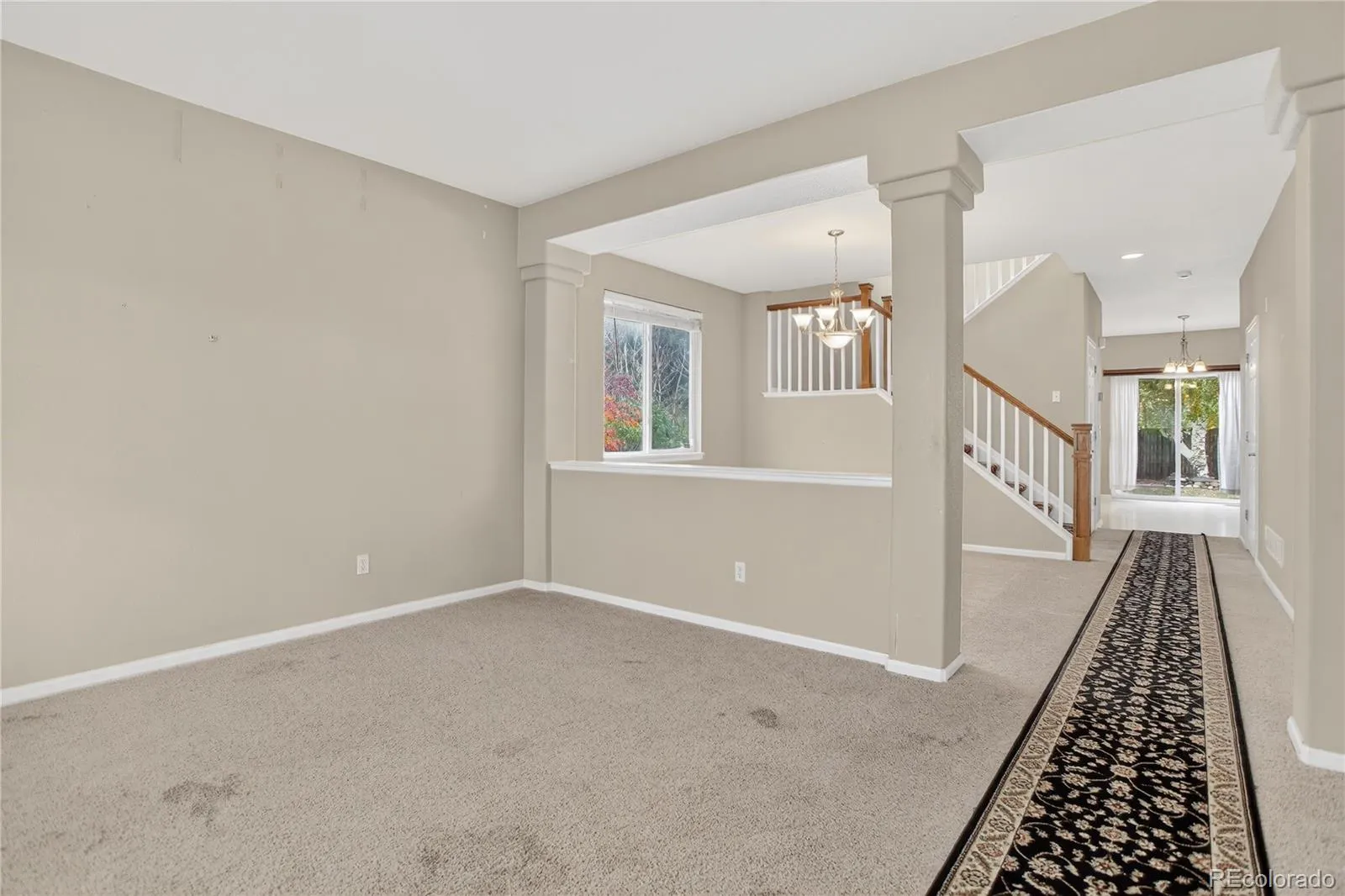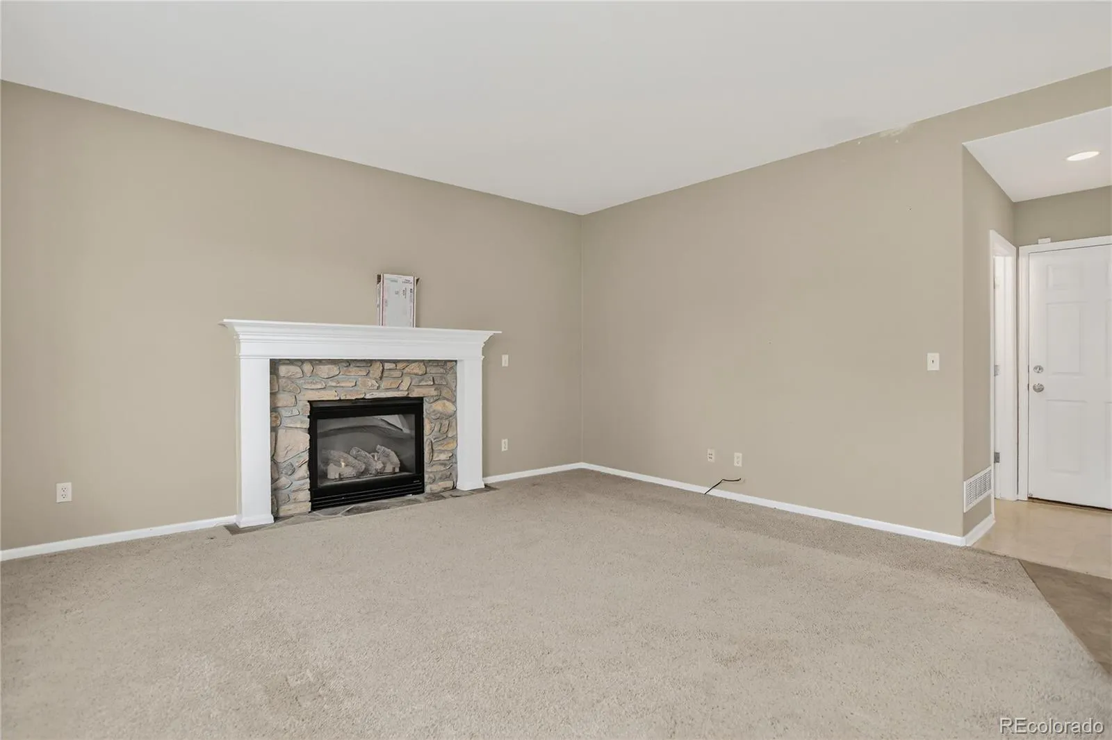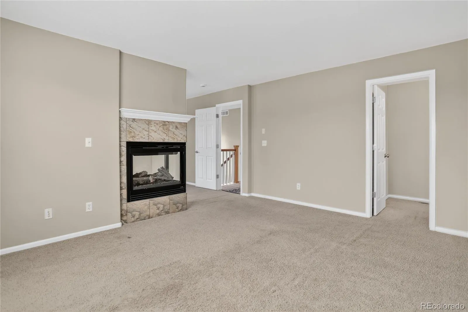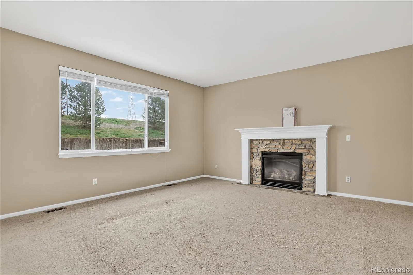 Charming Reunion Home with Dual Fireplaces & Open-Space Views! Don’t miss this 3-bedroom, 2.5-bath home backing to open space in the desirable Reunion neighborhood. The covered front porch opens to a bright, spacious floor plan ideal for everyday living and entertaining. The kitchen features 48” natural cherry wood cabinets with soft-close doors, pull-outs, trash stow-away, stainless steel appliances, center island, pantry, and a breakfast nook with patio access. The family room includes a cozy fireplace. Upstairs, the primary suite offers a dual-sided fireplace, sitting area, and a 5-piece bath with oversized garden tub. Two additional bedrooms and a full bath complete the upper level. The unfinished 744-sq-ft basement provides future expansion potential. Enjoy a fully landscaped, irrigated backyard with mature trees and perennials. Conveniently located near the Reunion Coffee House, recreation center, pools, ponds, walking trails, airport, and major highways.
