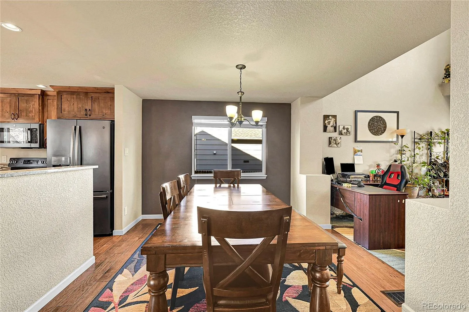 The kitchen flows seamlessly into the dining and living spaces, making it easy to stay connected with family or guests. Step outside to your private backyard that backs to a peaceful greenbelt—ideal for enjoying quiet mornings, evening gatherings, or Colorado sunsets.