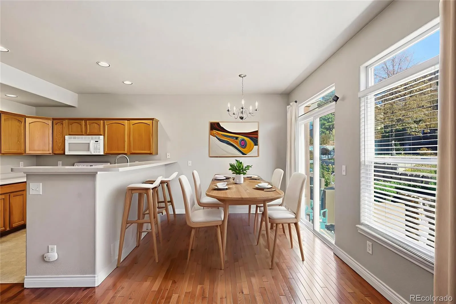 Welcome to this move-in ready home in the highly sought-after Harvest Ridge Community. This light-filled, open-concept residence offers a thoughtfully designed layout that perfectly blends comfort and style. The spacious living room features warm wood flooring and a modern gas fireplace, providing an inviting space to relax and entertain. The patio, accessible from the living area, offers a peaceful retreat, ideal for enjoying Colorado’s beautiful seasons. The kitchen boasts tall cabinetry, ample counter space, and bar seating, creating a functional and stylish space for cooking and entertaining. Two primary suites are located upstairs, each offering attached bathrooms, perfect for added privacy. The finished lower level offers incredible versatility. Whether you need a third bedroom, family room, home theater, or home gym, this space can accommodate your needs. The kitchenette with built-in cabinetry, wet bar and mini fridge provides additional storage and workspace, ideal for hobbies or crafts. The lower level also includes a full bath with a soaking tub for ultimate relaxation. This home’s prime location provides convenient access to schools, parks, trails, shopping, military bases, and hospitals. Offering a low-maintenance lifestyle, this townhome provides the perfect balance of value, comfort, and convenience in one of Colorado Springs’ most accessible neighborhoods.