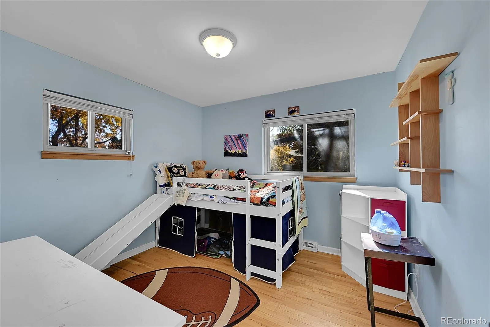 Updated Green Mountain Village all Brick Ranch, great curb appeal, beautiful trees! Hardwood floors welcome you in with updated paint colors and features. Spacious dining room with built-ins, classic Hutchinson, for charm and storage. The kitchen is a must see, brand new vinyl tile flooring that is stunning, upgraded cabinets, gorgeous granite and backsplash, stainless appliances including custom hood. Access to the back patio from the kitchen makes entertaining a snap. 3 bedrooms all on the mail level, the primary that is good sized, featuring a walk-in closet and a new three-quarter bath, you will love it! The other main level full bath has also been updated, nicely done. The other two bedrooms are good size, south facing and could make a nice office space. Or, perhaps an office in one of the two bedrooms in the fully finished basement would suit your needs. Fun family room, ready for entertaining and bonus space. A three-quarter bath in the basement is handy for guests. Large, finished laundry room provides ample storage, complete with shelving. Fully privacy fenced back yard with a patio and a shed. The two-car attached garage, with newer garage door, provides access directly into the house and has attic storage and workspace. Additional off-street parking next to the garage is sure to catch your eye. Other updates include newer sewer line, radon system, newer windows, newer HVAC and the roof is approximately 7 years old. Fantastic value, location is key. Walking distance to parks, schools and trails. Easy access for shopping and commuting. Straight shot on Jewell Ave. to C-470 for mountain access.