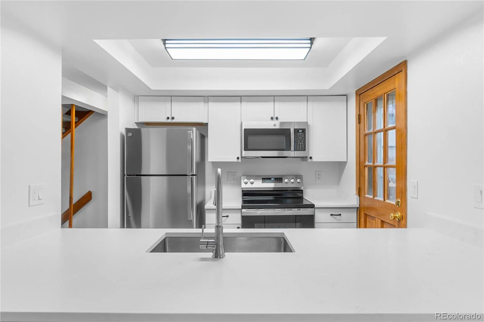Discover this beautifully remodeled three-bedroom townhome that perfectly balances comfort and convenience. The heart of the home features a stunning kitchen with white cabinetry, gleaming quartz countertops, brand-new stainless steel appliances, and a well-organized pantry perfect for cooking enthusiasts. Cozy wood-burning fireplace perfect for those chilly Colorado evenings. Luxury vinyl flooring flows throughout the main level, while fresh carpet and paint create a move-in-ready atmosphere on the upper level where all three bedrooms await.
