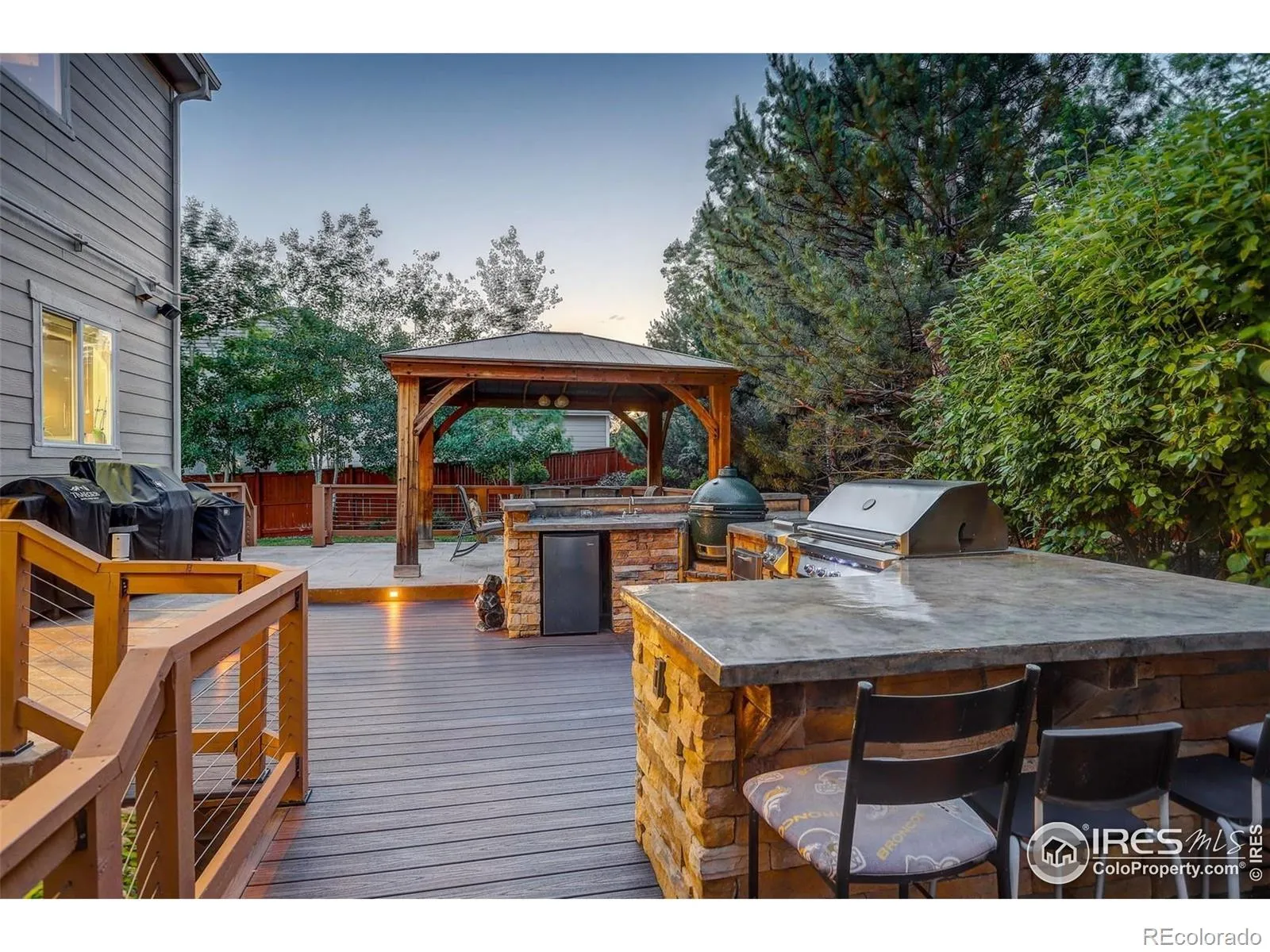 An entertainer’s dream! This backyard oasis will make you feel like you are in your own slice of paradise! The main floor boasts a beautiful kitchen with open flow to the great room with soaring ceilings and large windows, an office plus a bedroom and bathroom (perfect for guests that can’t climb stairs). Upstairs you will find convenient laundry and 4 more bedrooms including an enormous primary suite complete with 2 custom walk-in closets. The finished basement features a large living space with a kitchenette, a bedroom and a huge spa-like bathroom with a freestanding tub and walk-in shower. Perfect for guests or multi generation living. The backyard is where you will want to be, it’s incredible! With a huge outdoor kitchen, dining bar, pergola, gazebo, firepit and mature trees and landscaping providing privacy. Oversized 3 car garage, concrete roof and an ideal location close to trails and parks with easy access to shopping and dining.