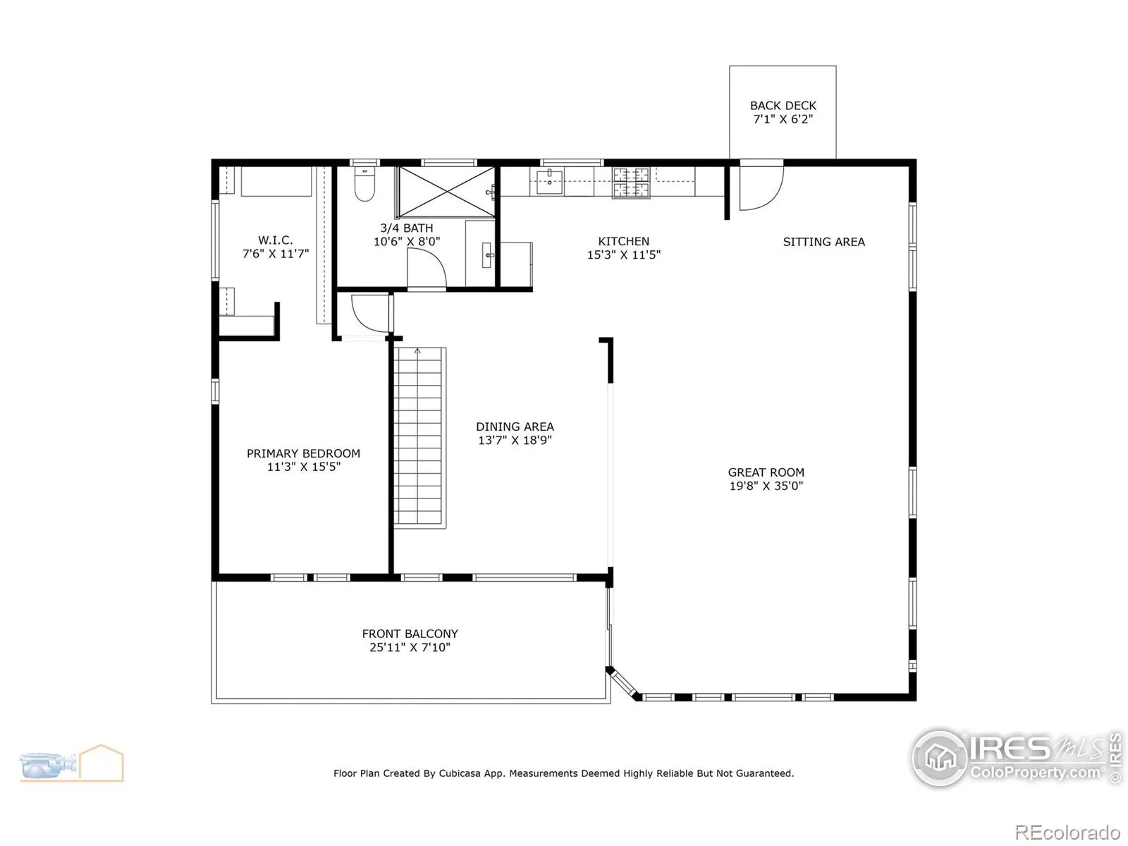 3/4 Bathrooms : 1