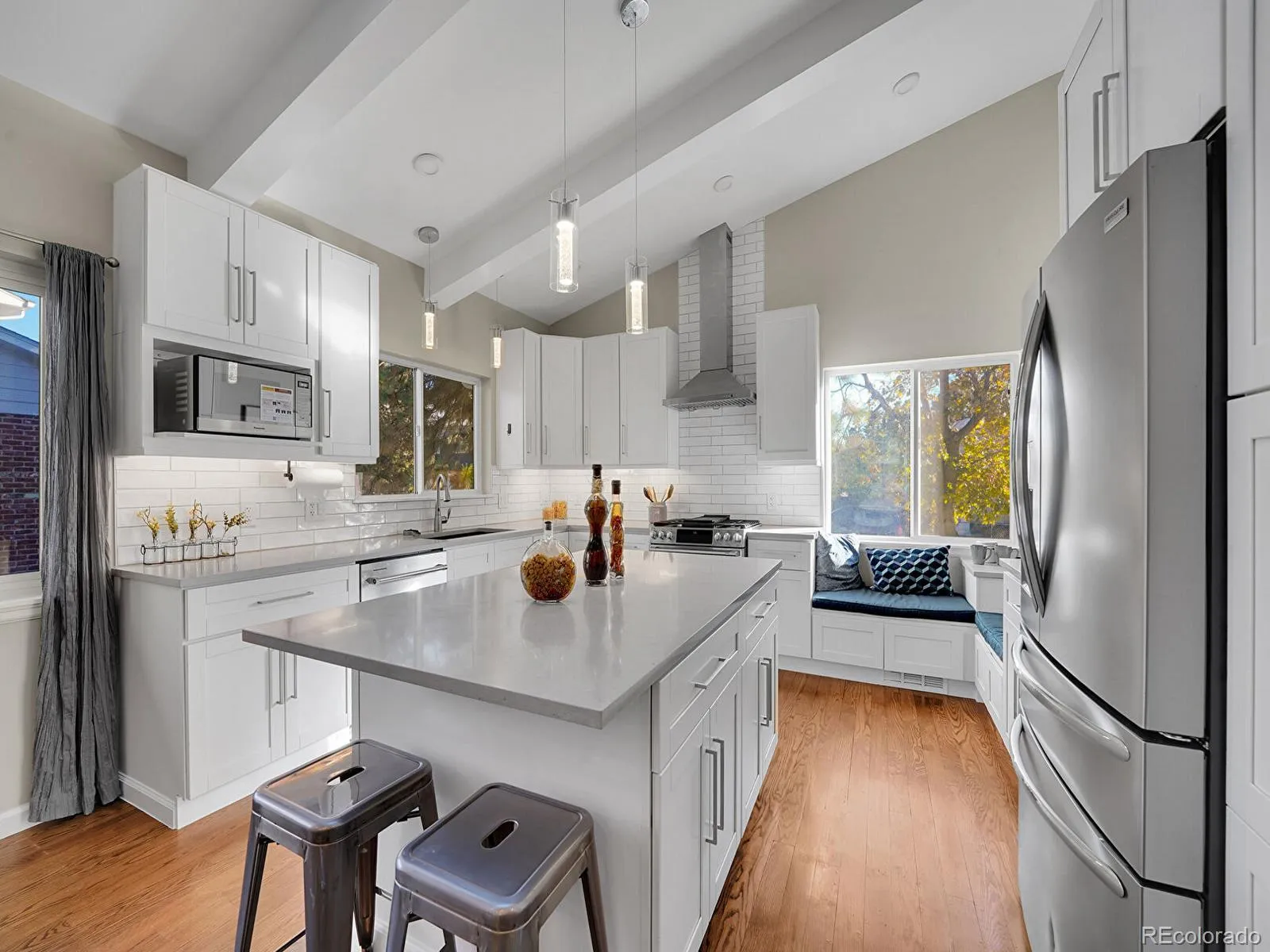 *Open House Saturday, 11/8 1-3* Immerse yourself in elevated living in this beautifully reimagined 5-bed, 3-bath brick gem, blending timeless design with modern appeal! Set on nearly a quarter-acre in beloved Cherry Knolls, classic curb appeal and a Colonial-style porch welcome you into an airy main level where light, texture, and craftsmanship accentuate mid-century charm. Vaulted ceilings, skylights, and rich hardwood floors create space for serene living, while a statement wood-burning fireplace anchors the living room with warmth and character. At the heart of the home, the chef’s kitchen features an oversized island, sleek quartz counters, double ovens, and stainless-steel appliances, all cloaked in stunning natural light. A built-in coffee bar, custom bench seating, and easy flow between the dining and living areas make hosting seamless, set against a backdrop of thoughtful design. On the lower level, a spacious family room invites relaxation with a cozy gas fireplace, casual dining space, and direct access to the backyard, complemented by a convenient bath nearby. Upstairs, the bright primary suite offers a boutique feel with a stylish en suite bath and generous storage. Two additional bedrooms and a full bath complete the upper level, while the finished basement expands the home’s versatility with two bedrooms featuring walk-in closets, perfect for guests, hobbies, or a home gym. A finished laundry room and organized storage area keep essentials tucked away. Outdoors, a covered patio with built-in lighting invites effortless entertaining, while garden areas and mature trees frame a backyard designed for year-round enjoyment, from summer barbecues to quiet evenings under the stars. With thoughtful renovations, and a prime location near The Streets at SouthGlenn, Cherry Knolls Park, and Big Dry Creek Trail, this home captures the essence of refined suburban living—timeless, social, and distinctly Colorado.