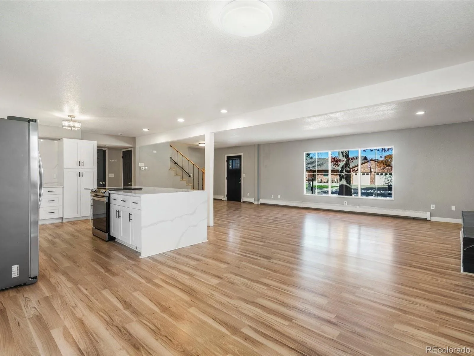 Charming 5-bedroom, 4-bathroom two-story home in Westwind Village featuring fresh exterior paint, wonderful curb appeal, and mature trees. Inside, enjoy a welcoming living room and an updated kitchen with white quartz countertops, white cabinetry, a waterfall island edge, stainless steel appliances, laminate flooring, and a cozy fireplace, along with a nearby dining space, half bathroom, and access to the oversized backyard from the main level, plus an attached two-car garage. The home sits on a generous exterior lot with a refreshed white brick façade, a spacious covered patio, a large yard, and a detached two-car garage with ample gated parking. Upstairs offers the primary suite with a walk-in closet and private bathroom, three additional bedrooms, and a full bathroom—all with laminate flooring and abundant natural light. The fully finished basement provides additional living space with a bedroom, bathroom, recreation room, and laundry room. With no HOA, no metro district, Weld County’s low taxes, and a mature, established neighborhood near Hart Park, the Carbon Valley Regional Library, Saddleback Golf Course, restaurants, shopping, and just minutes from the Town of Firestone, this home offers comfort, space, and an ideal location.