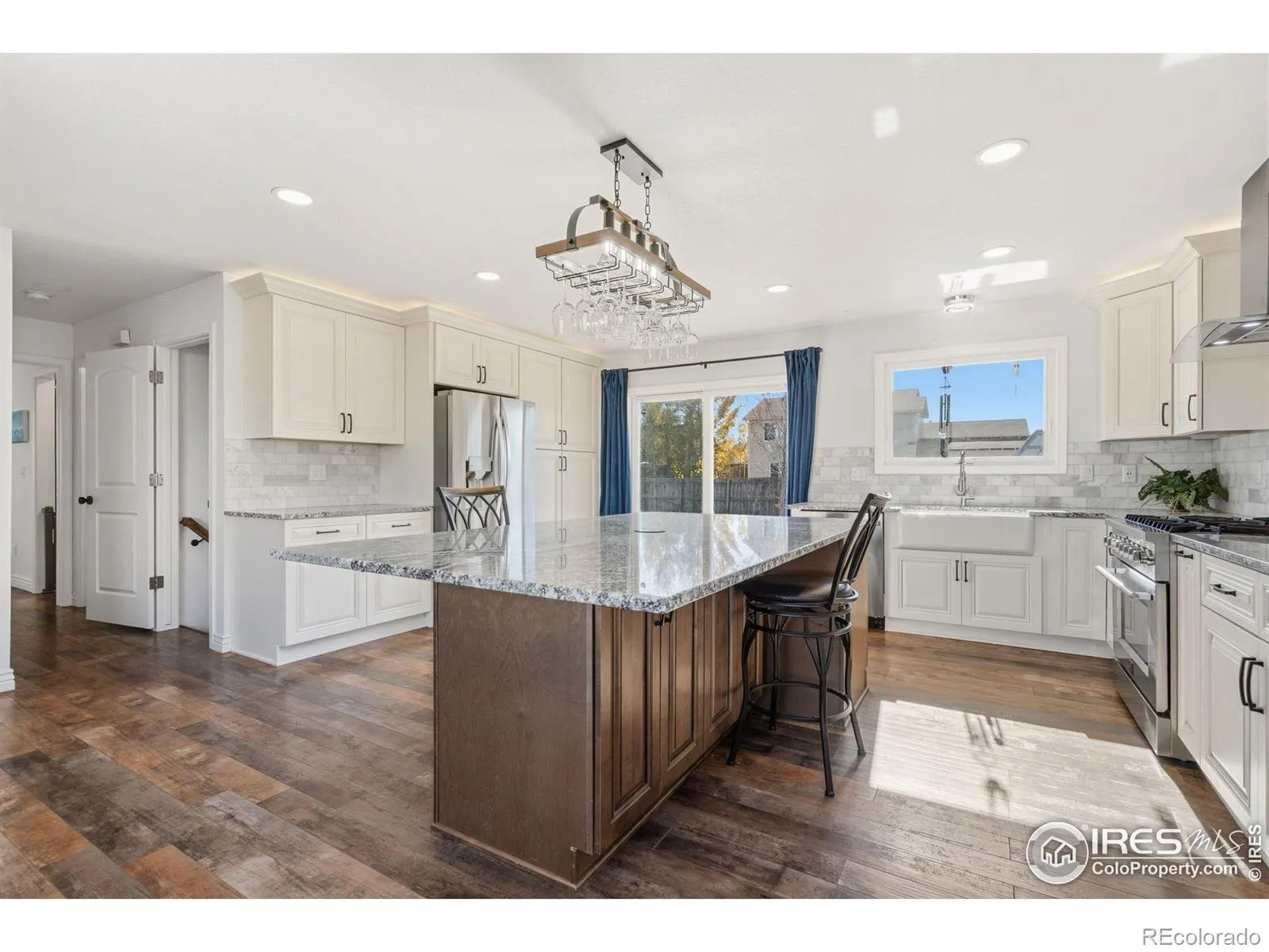 Over $200K in upgrades! This fully remodeled home has been reimagined with love from its owners, offering a move-in-ready retreat that is worth every penny. The main living area is bathed in natural light, and features LVP flooring, Andersen windows, and a seamless flow that connects the living and kitchen areas with ease, perfect for everyday living. Year-round comfort is covered with a brand-new HVAC system, furnace w/ humidifier/purifier, and central air conditioning. The kitchen is pure culinary luxury, featuring elegant Italian marble countertops and backsplash, high-end stainless-steel appliances including a Forno gas range, and a large center island w/ seating. Soft-close cabinets and pullouts maximize storage and keep everything within easy reach. The primary suite is complete with a spa-inspired 5-piece ensuite bath featuring a freestanding soaking tub, dual sinks w/ fog-free heated mirrors, and a large walk-in closet with a convenient stackable washer/dryer. The 2nd main floor bedroom adds flexibility and could also serve as a home office. Downstairs, the finished basement expands your possibilities. The finished basement offers multi-functional living, with a family room and an adjacent open-concept bedroom next to the bathroom that can be used together or separately. An extra bedroom and second laundry area complete the space, providing endless options for entertaining, working from home, or hosting guests. Outside, the massive, fenced yard features a concrete patio for gatherings, complemented by Japanese Maple and Crabapple trees that add character to the landscape, plus a greenhouse w/ electricity stands ready for your green thumb. The 2-car garage provides ample space for your vehicles and toys. Just across from Mountain View Park and minutes from the historic downtown area, you’ll enjoy easy access to local favorites, the Johnstown YMCA, Windsor, and Greeley. The owners spared no expense in creating their dream home, and now it’s ready for you!