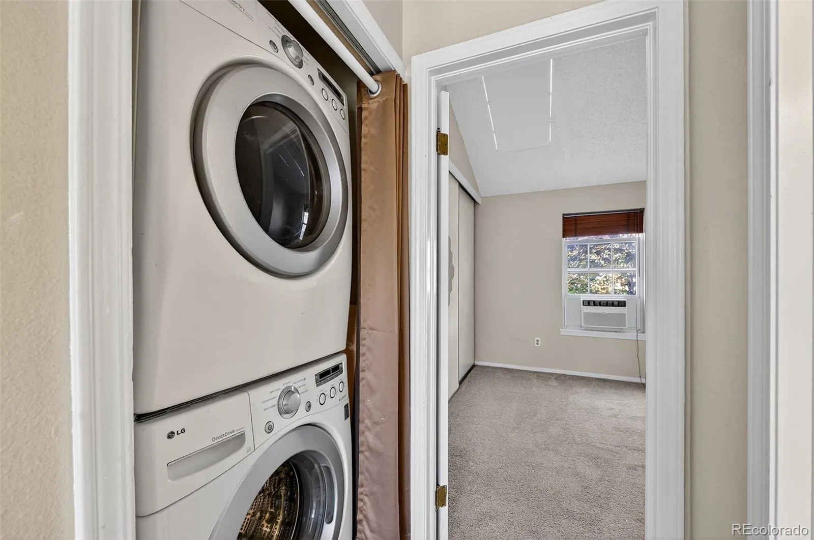 Quiet location backing to green space and Patterson Elem School. This two story townhouse is ready for move in. New carpet throughout, neutral paint. The kitchen has stainless appliances and solid surface counters, an atrium window, pantry, newer lighting and laminate floors. There is a breakfast bar between the dining room and kitchen. Living area includes a fireplace ready for cozy days. There is a half bath on the main level for guests. From the kitchen there is access to the back patio and fenced yard plus a storage shed for seasonal items. The upper level has 2 large bedrooms with vaulted ceilings, skylights, and large closets. A stackable standard size washer and dryer are on the upper level for your convenience. The primary bath has been remodeled and is conveniently located between the two bedrooms. Near by Adenbrooke and Kendrick Lake Parks , Jefferson County schools, and retail all add to the value for this townhouse. Whether purchasing as a primary home or an investment , this property is most desirable.