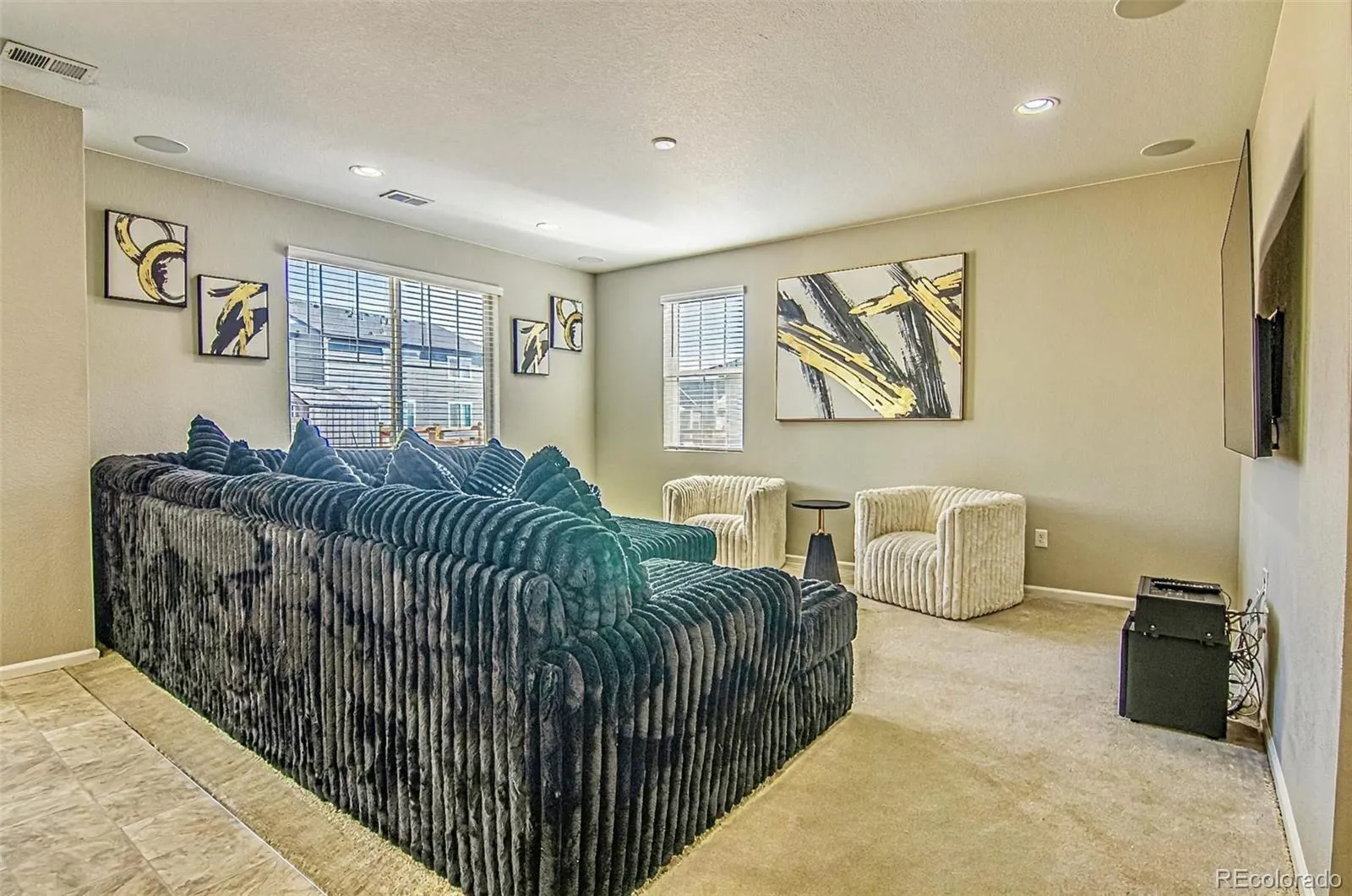Beautiful two-story home in the highly sought-after Aurora Highlands community! This modern home features an open floor plan with a bright front room perfect for an office or sitting area, a spacious great room with a sleek fireplace, and a stunning kitchen with a quartz island, walk-in pantry, and stainless steel appliances. Upstairs offers three large bedrooms with walk-in closets, a shared bath, a versatile loft, and a private owner’s suite with an elegant en-suite bath. Enjoy outdoor living on the covered patio and take advantage of the park right across the street! Conveniently located near major highways and just 15 minutes from the airport, offering easy access for commuters and travelers alike.