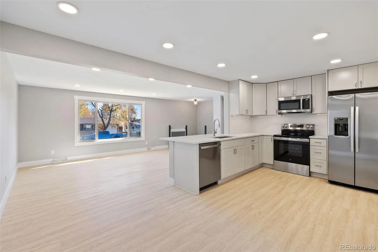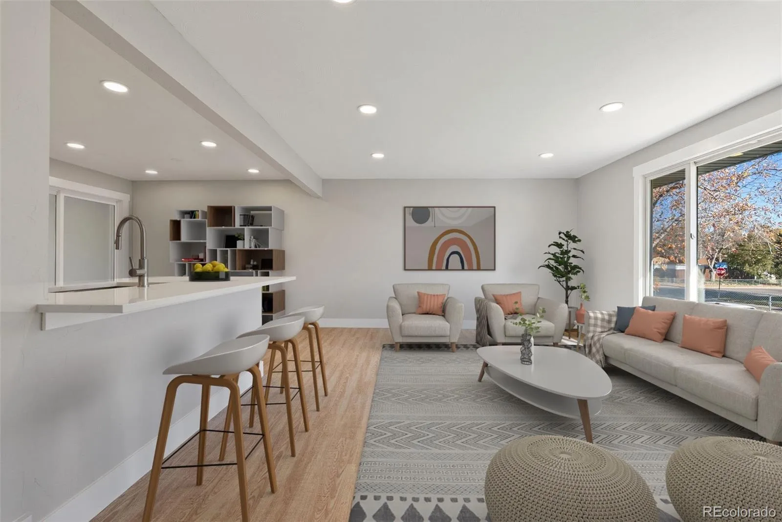 Welcome to this beautifully refreshed home in the highly sought-after Far Horizons community of Arvada. Every detail has been thoughtfully updated from top to bottom, creating a perfect blend of modern comfort and timeless style. Step inside to find hand-textured walls, soft-close cabinetry, quartz countertops, and new stainless steel appliances that make the kitchen both functional and elegant. Dimmer lighting allows you to set the perfect ambiance, while the inviting three-season porch offers extra space to relax or entertain.