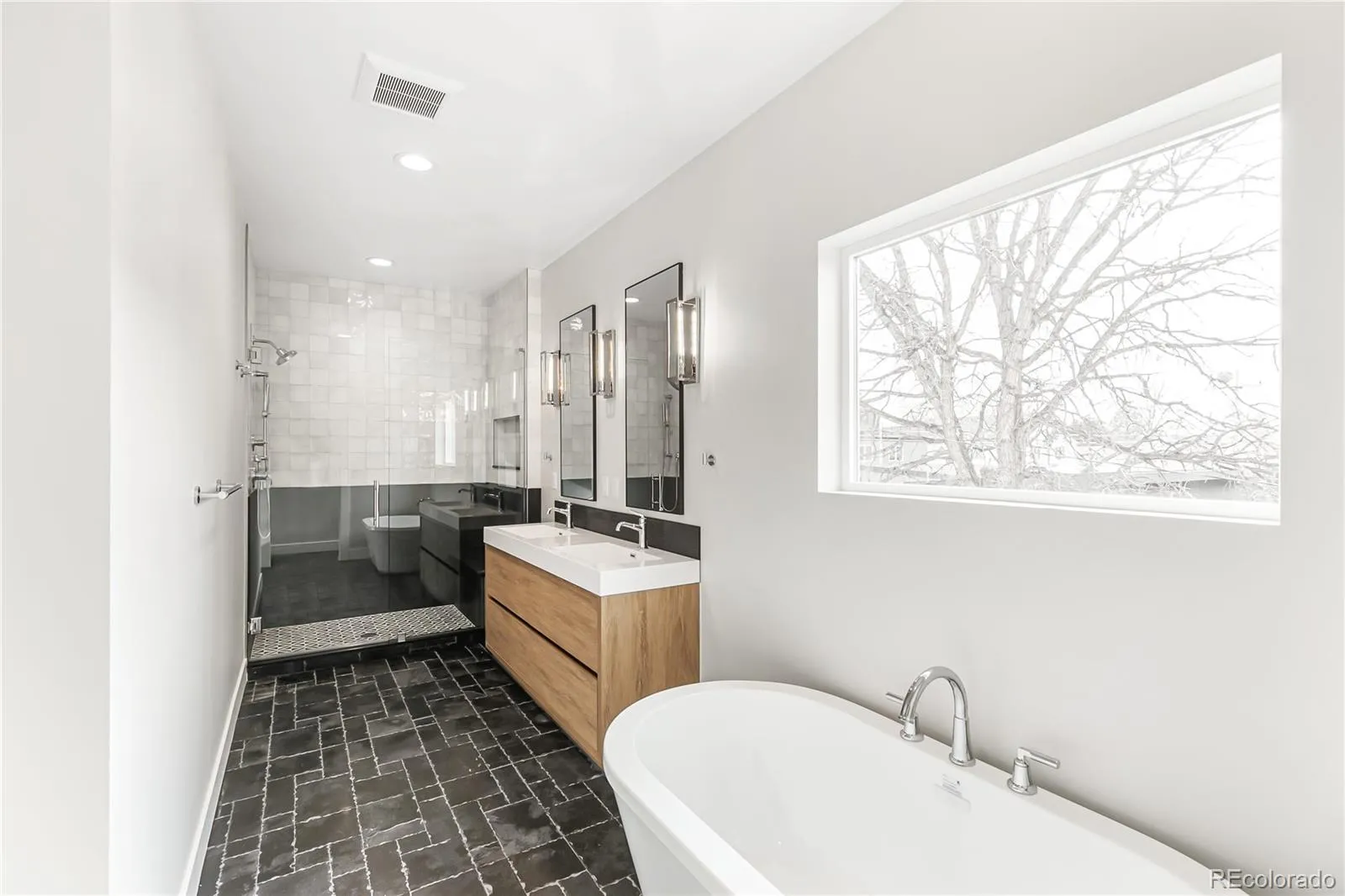 Discover the epitome of contemporary living in this newly constructed duplex nestled in the coveted SoBo neighborhood. This stunning property seamlessly combines style and functionality, ensuring a lifestyle of comfort and sophistication. As you step inside, the open-concept main floor captivates with its seamless flow and abundance of natural light. The modern eat-in island is a focal point, complemented by a cozy gas fireplace and high-end GE appliances. Hardwood floors grace the entire space, showcasing the meticulous craftsmanship that defines every corner of this residence. Upstairs, three spacious bedrooms await, each adorned with vaulted ceilings. The primary suite is a true retreat, featuring a luxurious 5-piece bath with a soaking tub for ultimate relaxation and an expansive walk-in closet. The finished basement extends the living space with two additional bedrooms and a full bath. With 9′ high ceilings, a well-appointed wet bar, and a media room bathed in natural light, this area is perfect for both entertaining and everyday living. Step outside to the fully landscaped and fenced yard, where covered patios provide the perfect setting for dining and entertaining. Mature trees offer shade and privacy, creating a serene oasis. An irrigation system ensures easy maintenance, while the 2-car detached garage, pre-wired for car charging, adds convenience and modernity to your daily life. This prime location places you within walking distance of parks, restaurants, and the light rail, providing a lifestyle of convenience and connectivity. Enjoy quick access to downtown or DTC, making commuting a breeze. Don’t miss out on the opportunity to make this exceptional property your new home. Schedule a showing today and step into a world of contemporary luxury! Fenced in yard on the front of the house to give the buyer even more privacy and hang out space!