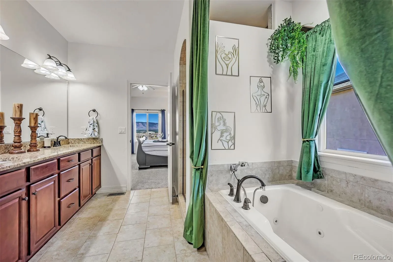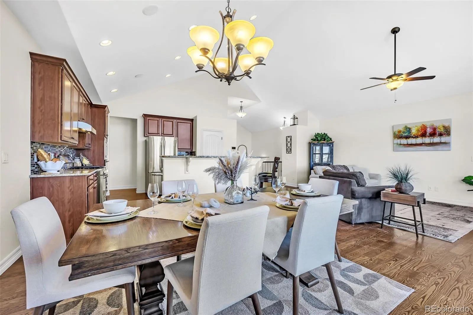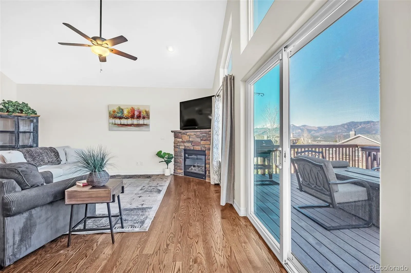 THE VIEWS!!! Nestled in prestigious Flying Horse, this stunning home backs to the Air Force Academy & offers unbelievable views. Boasting 6 bedrooms, 4 bathrooms, and a fully finished 3-car garage with an EV wall adapter, situated on a spacious lot with breathtaking panoramic mountain views. Numerous upgrades throughout, including hardwood floors, new carpet, granite countertops in kitchen, wet bar & bathrooms, this home is the epitome of comfort and style. Main level features an open-concept design, a gourmet kitchen with granite countertops, a walk-in pantry, a counter bar, 42” cabinets, upgraded appliances, a gas stove, and a dual oven—all seamlessly connected to the attached dining area and living room with a wall of windows looking out to the mountain range. The living room includes a cozy gas fireplace and large windows that open to a deck, perfect for enjoying those incredible views. The primary suite on the main level showcases vaulted ceilings, scenic mountain views, and a luxurious en-suite 5-piece bath with a jetted tub, double vanity, and convenient access to the walk-in closet and laundry room. Three additional bedrooms, including two with a Jack-and-Jill bath, and a half bath complete the main level. Perfect for entertaining, the expansive finished walkout basement offers a large wet bar and ample space for pool and/or ping pong tables, card games, or gatherings to watch your favorite sporting event. There are 2 additional bedrooms, a full bathroom with a double vanity and plenty of storage space. The larger junior master bedroom suite in the basement has a walk in closet w/ their own separate access to the full bath. Backing to the mountain range, this home offers unbeatable outdoor living—relax on the patio, enjoy views of Pikes Peak and the Air Force Academy, or unwind by the fire pit. Located in District 20 Schools and convenient to shopping and I-25, this move-in-ready home combines style, convenience, and unparalleled scenery. Don’t miss it!