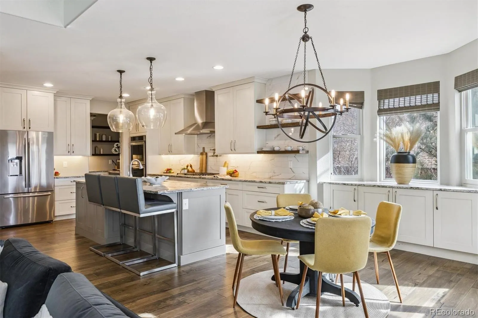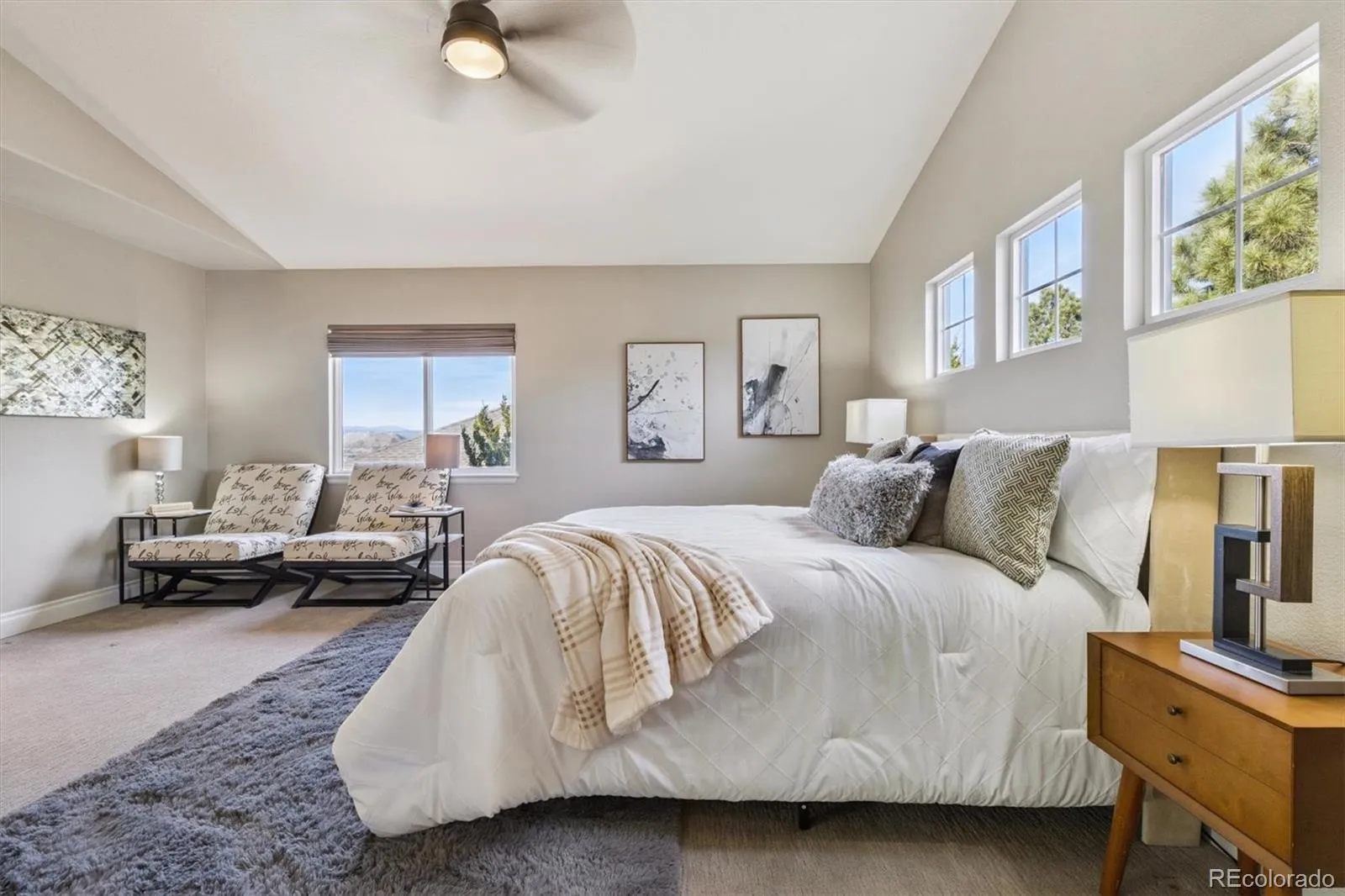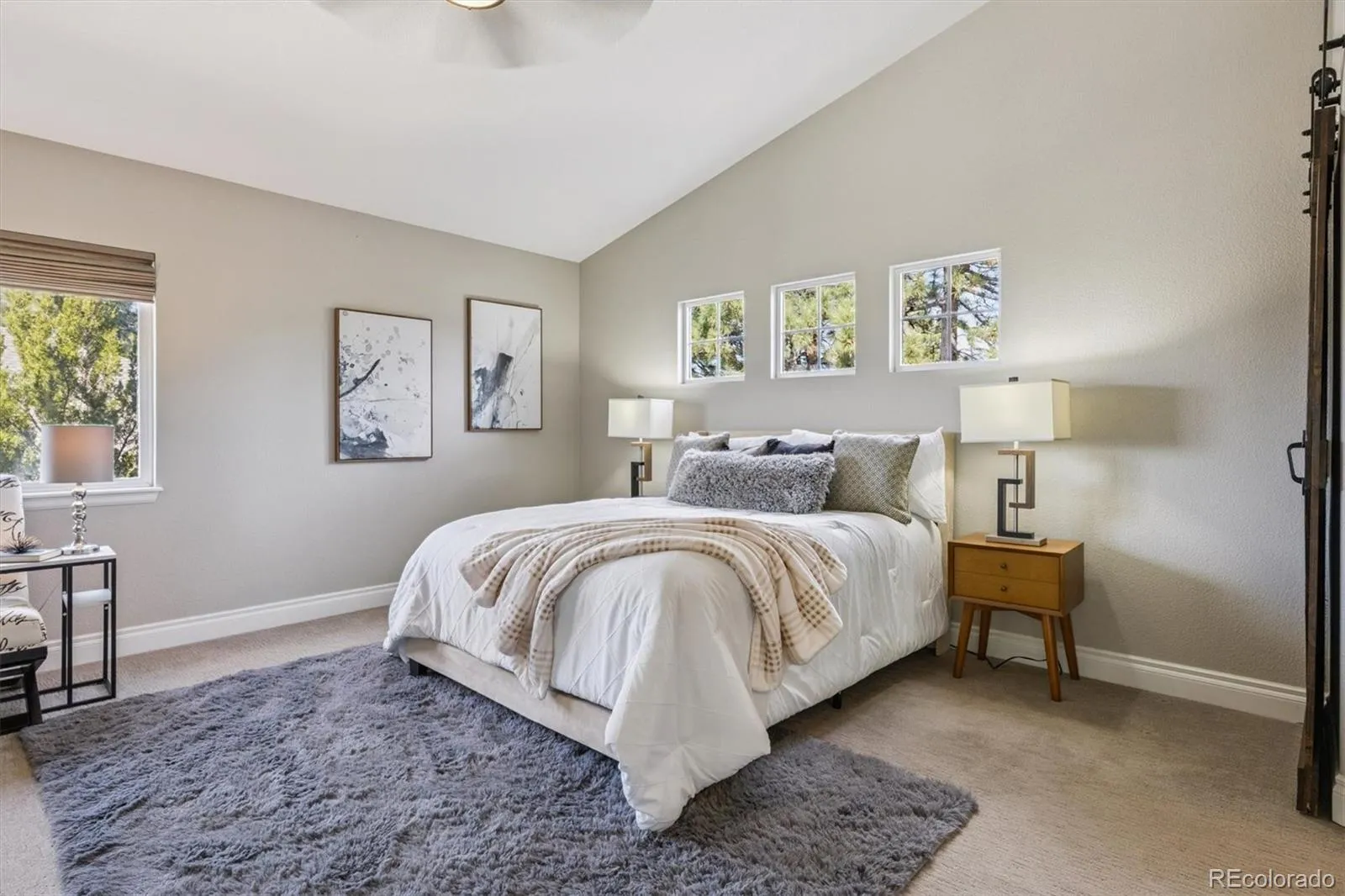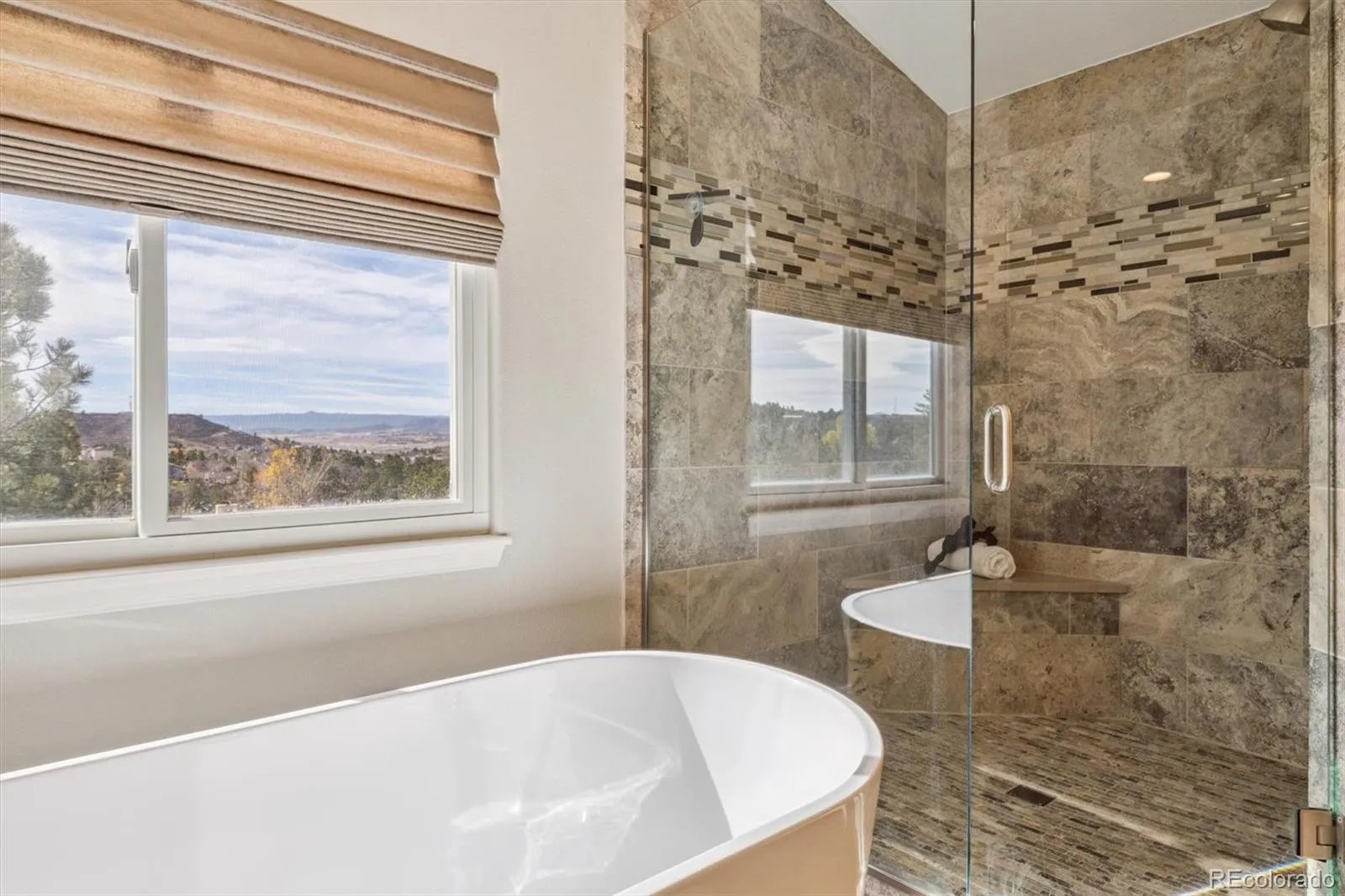 Tucked away on a quiet cul-de-sac in the highly sought-after Coyote Ridge enclave of The Woodlands, this beautifully remodeled two-story home blends modern design, thoughtful upgrades, and everyday Colorado comfort. Ideally situated near downtown Castle Rock, the Rec Center, and miles of scenic trail systems, the location captures the best of Douglas County living. A professionally designed $280,000 main- and upper-level remodel by Elements Interior Design brings a fresh, cohesive style throughout, while a stunning $50,000 pergola and covered deck extend the living space outdoors. Step inside to cathedral ceilings, Andersen windows, and Hunter Douglas window coverings, all anchored by an open, inviting floorplan. The gourmet kitchen is a true centerpiece, featuring custom cabinetry by Kitchen Showcase, bespoke granite counters, stainless Jenn-Air appliances, double ovens, a gas cooktop with pot filler, butler’s pantry, and a stylish bar area with wine refrigerator. The spacious primary suite pairs warmth with luxury, complete with barn doors, a spa-inspired bath, and a custom closet. The walk-out lower level offers a bedroom and bath, plus newer carpet and paint for a fresh, comfortable feel. Outdoors, relax or entertain on a deck that spans the width of the home, overlooking a private backyard situated on a greenbelt. Recent 2025 improvements include a new roof, new garage doors, and fresh exterior paint. Additional features: 3-car attached garage, welcoming front porch, extra patio seating, and a quiet cul-de-sac setting. A rare blend of design, craftsmanship, and location — this is Castle Rock living at its finest.