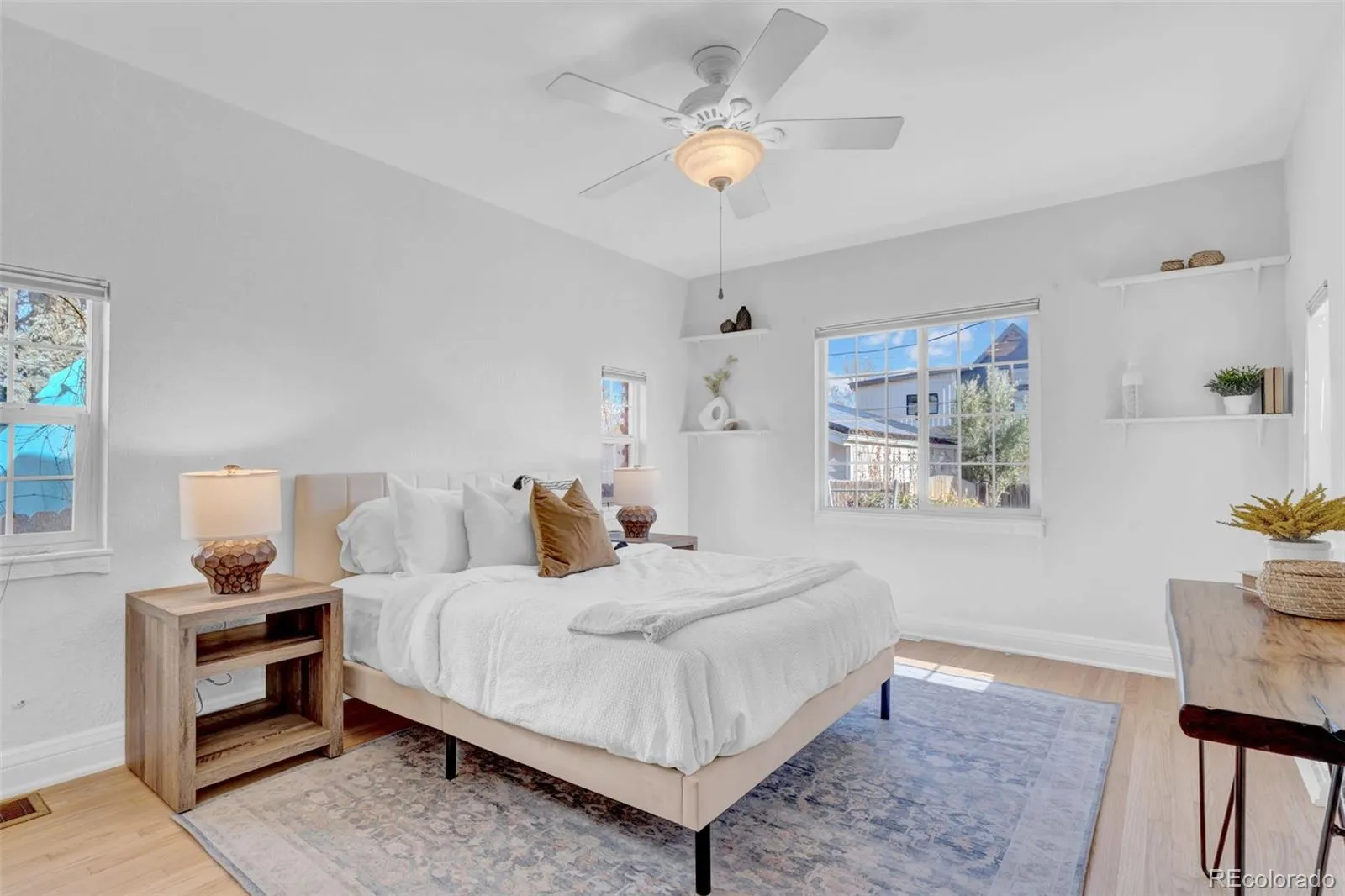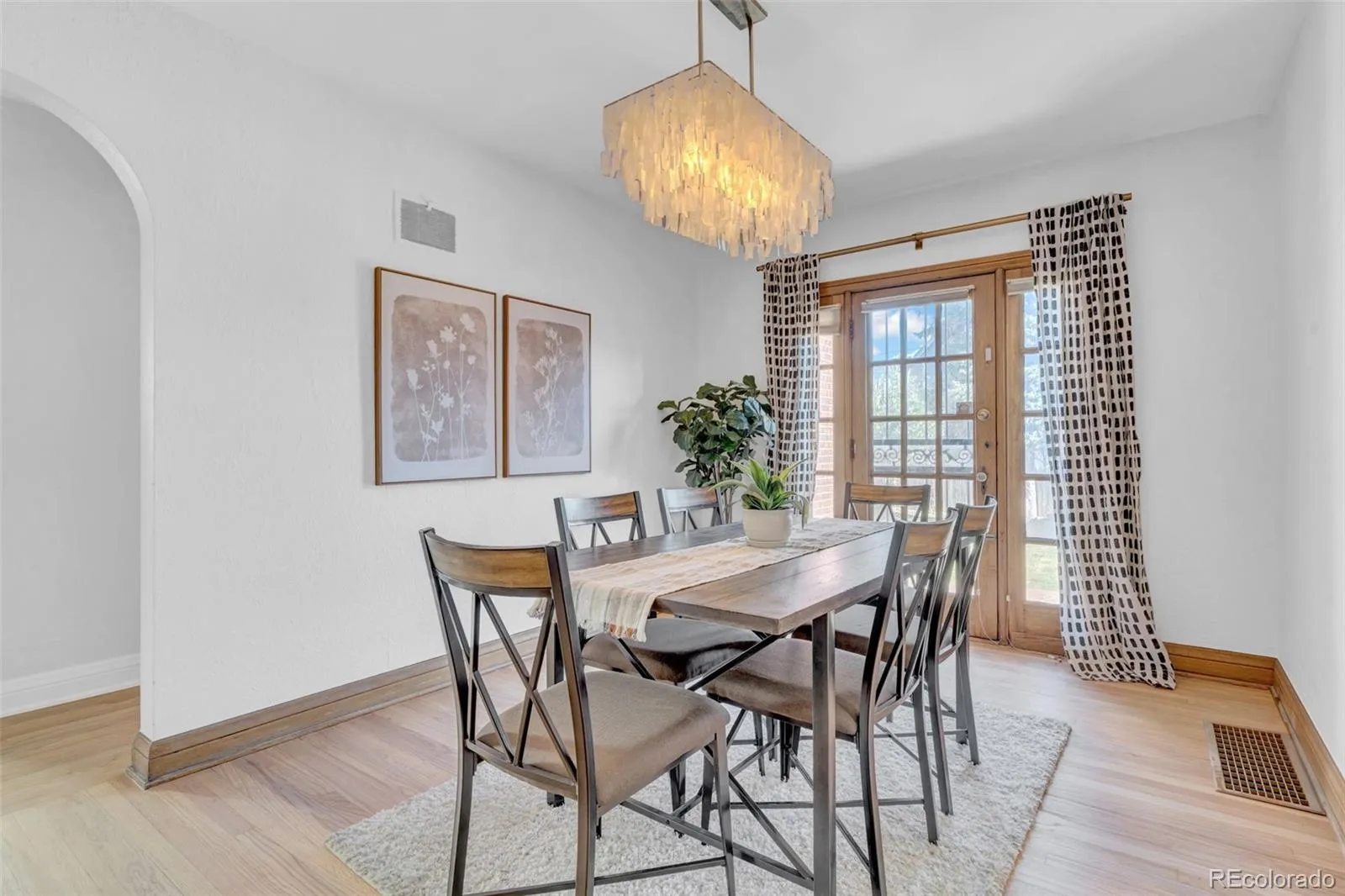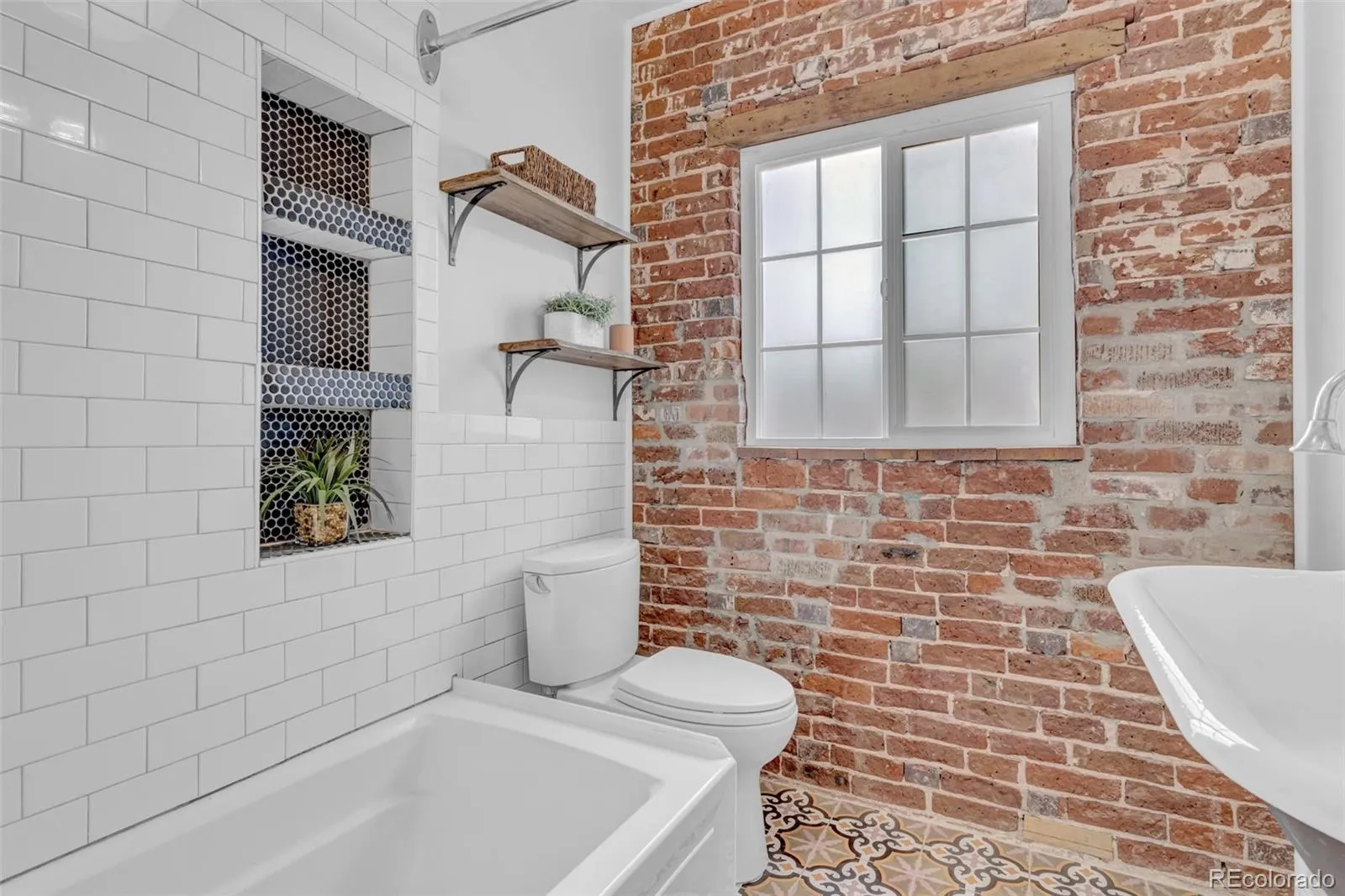 Step into a storybook setting with this beautiful Tudor-style home, where historic charm meets thoughtful updates. From its classic brick façade and steep gabled roof to the newly refinished hardwood floors and arched doorways inside, the details reflect the craftsmanship of a bygone era. The inviting living room features a cozy fireplace framed by original tile, while the dining room offers an elegant space for gatherings. A sun-filled kitchen blends vintage charm with modern convenience, featuring high-end appliances, custom kitchen cabinets, ample storage, pendant lighting and butcher block countertops. On the main floor, you’ll find two spacious bedrooms with period details and plenty of natural light. The bathroom has been tastefully updated with mosaic tile flooring, a double faucet basin sink and a Kohler soaking tub, all while maintaining the home’s traditional character with the exposed brick. The finished basement features a spacious living area with endless possibilities, a lovely brick fireplace, a large bedroom with an egress window, a three-quarter bathroom, tons of additional storage space and sizeable laundry room with a newer washer and dryer. Never worry about parking space with the detached 2-Car garage, long driveway and plenty of street parking for guests when you entertain. The home also comes equipped with an EV Charging Station, a newer roof, newer windows, newer furnace and a fresh coat of paint throughout the entire interior. Ideally located within walking distance to schools, restaurants and parks and less than two miles to The Denver Museum of Nature & Science, The City Park Golf Course and The Denver Zoo, while many more of Denver’s most iconic attractions are just a few miles away. Come fall in love with this enchanting Tudor treasure—where history, warmth, and comfort come together.