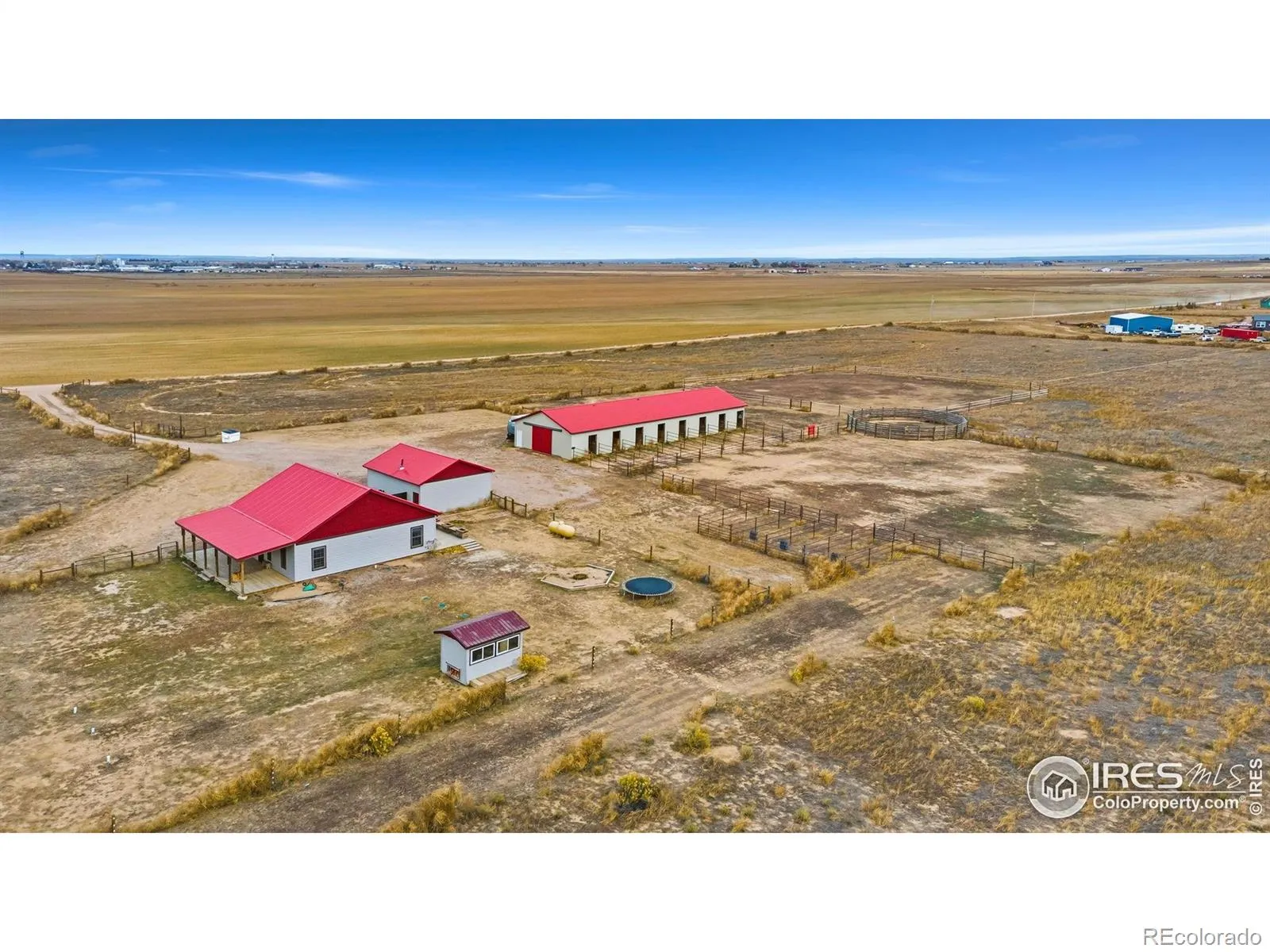 If you are looking for country living, look no farther! This stunning 44-acre property is designed for the refined horse lover! Equipeted with a 95×40 center aisle horse barn with 12 horse stalls and a tack/feed room. Large hay door, horse runs, and large round pen. The stunning ranch style home offers an open concept style with 3 bedrooms and 2 bathrooms and over the top finishes! Beautiful tile floor with radiant in floor heating throughout the home. The Kitchen includes costume cabinets, concrete poured counter tops, and stainless-steel appliances including a gas range stove top. The primary bedroom has a large walk-in closet and plenty of space. The primary bathroom includes a clawfoot bathtub and a walk-in shower. The home is equipped with Fiber Optic internet, so no need to worry about missing any zoom calls! Step out onto the deck to watch many sunsets. Don’t forget to bring your ATV’s and dirt bikes! There is plenty of room to cruise around on! 600 ft deep well and Poudre Valley RE power.