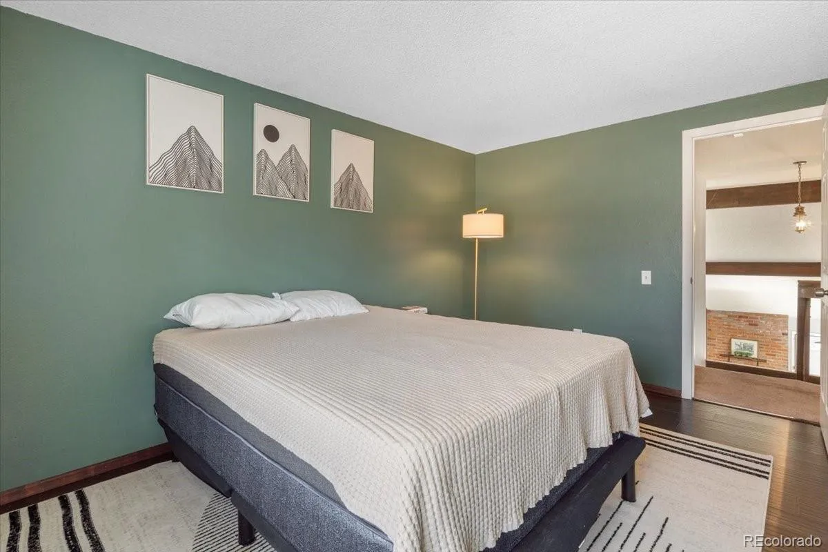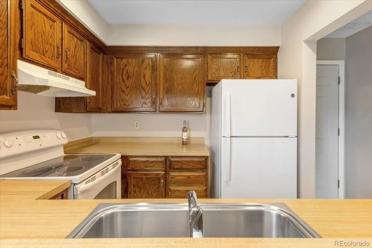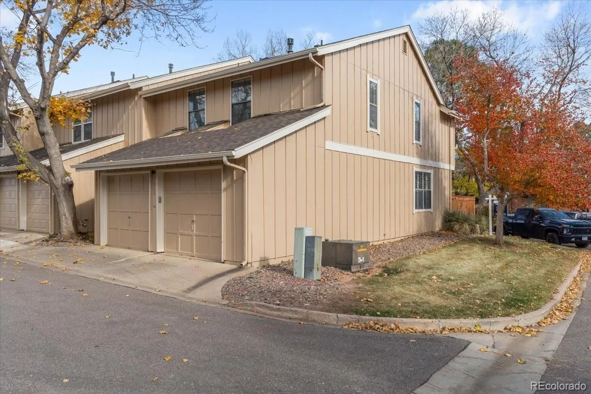Ken Caryl Ranch quiet and private END UNIT! No maintenance townhome with finished basement. Enjoy your beautiful front yard open space greenery in all seasons, including trail access right from your front door. Oversized 2 car garage offers lots of room for storage. As you enter the front door, enjoy gorgeous vaulted ceilings with wood beams, hardwood flooring, plantation shutters, open floor plan. Lots of natural light, gorgeous brick feature wall with electric fireplace. Private and secluded front porch with brick fencing adds the Colorado indoor/outdoor living to enjoy a morning coffee or evening fire pit! Upstairs, you will find a spacious primary suite with en suite bathroom. Two secondary bedrooms and a hallway full bathroom. The finished basement includes a full bathroom and space to use for a 4th bedroom, with additional space for entertaining/home theater/home gym, or more storage!