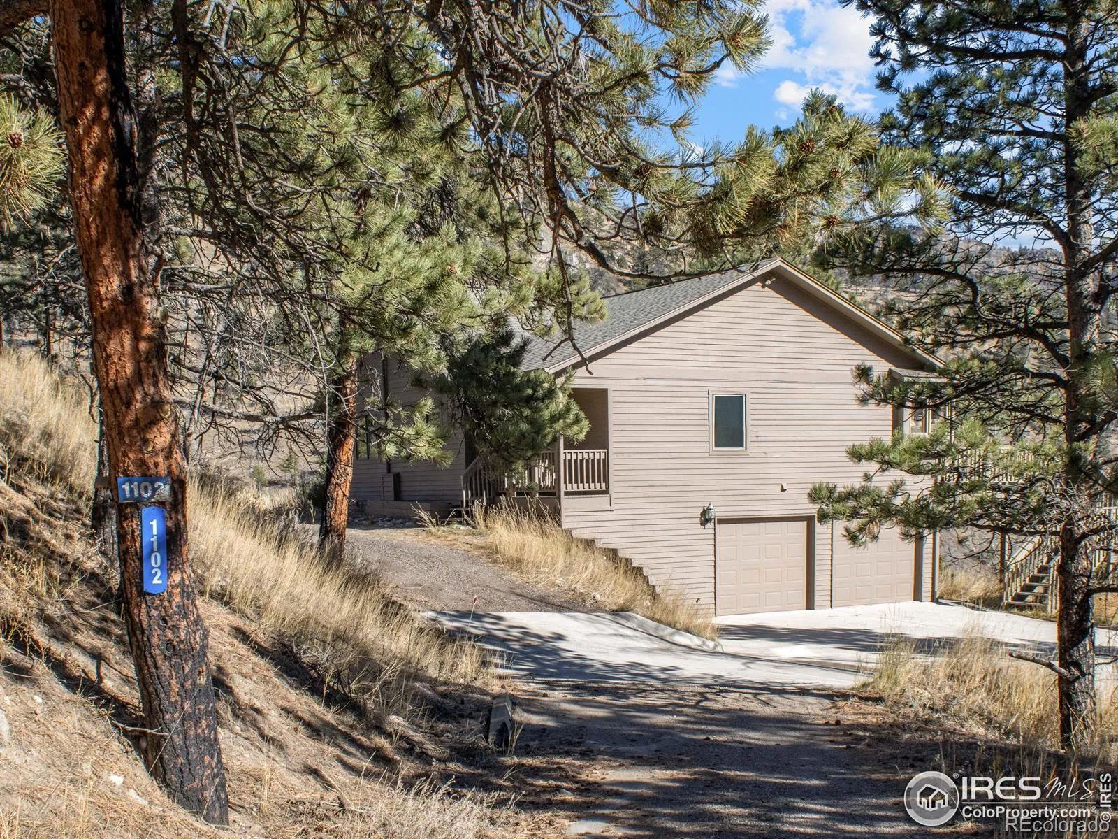 Wide open views, easy access and privacy are waiting for you in the Retreat. Whether you are looking for a primary residence or a get-away do not overlook this mountain sanctuary in the desirable Retreat neighborhood. Enjoy the tranquility of mountain living on this 3.61 acre lot while being just a short drive to Estes Park or an easy commute to the Front Range. Step inside to an open floor plan filled with natural light and tile floors throughout the main living spaces, creating a warm and welcoming atmosphere. This home has been lovingly owned by the same family for 30 years. You’ll love cooking in the kitchen, featuring ample cabinet space, and abundant natural light. Enjoy casual meals at the breakfast bar or gather in the separate dining area just off the kitchen. Great room boasts vaulted ceilings, dramatic wood beams, and an east-facing wall of windows with views toward Crosier Mountain. Curl up with a good book beside the gas fireplace or step out to the wraparound deck to soak in the sounds of the mountains. Running the entire length of the home, this deck is a natural extension of the living space-perfect for entertaining or savoring your morning coffee. The home offers three comfortable bedrooms and two bathrooms. The primary suite features a well-appointed 4-piece bath and a generous closet with built-in storage. Two additional bedrooms are conveniently located on the main level and share a full bath. Downstairs, you’ll find a non-conforming bedroom/office/flex space highlighted by pine beetle-kill wood paneling and wood floors. Generous storage and an unfinished area that could easily be a game room, home gym, or workshop. Oversized two-car garage, provides secure storage for vehicles, equipment, and hobbies. Recent updates include fresh exterior paint and new roof and gutters. With Roosevelt National Forest right outside your back door, you’re just minutes from hiking trails and fishing spots-surrounded by abundant wildlife and fresh mountain air.